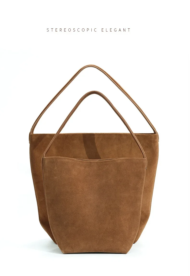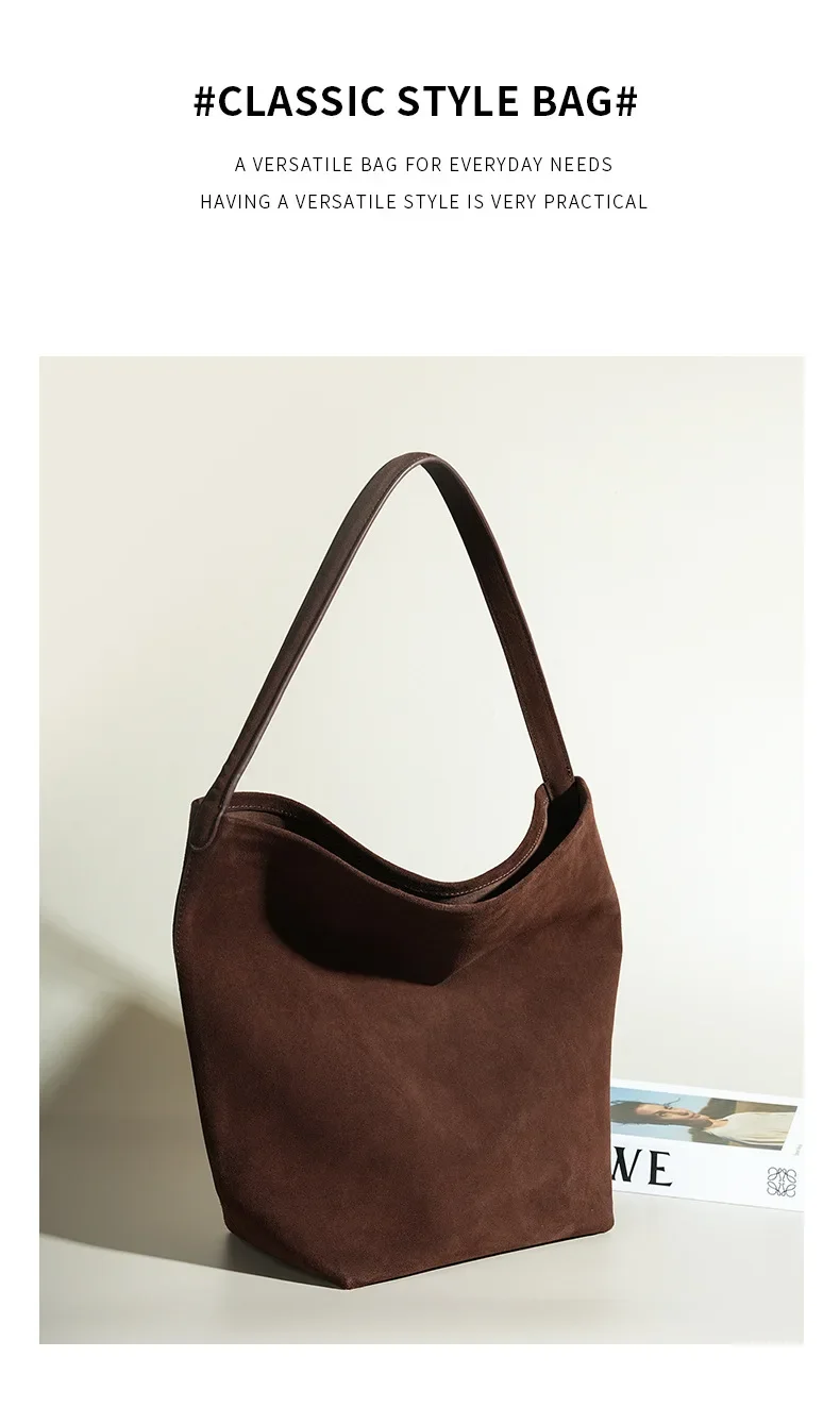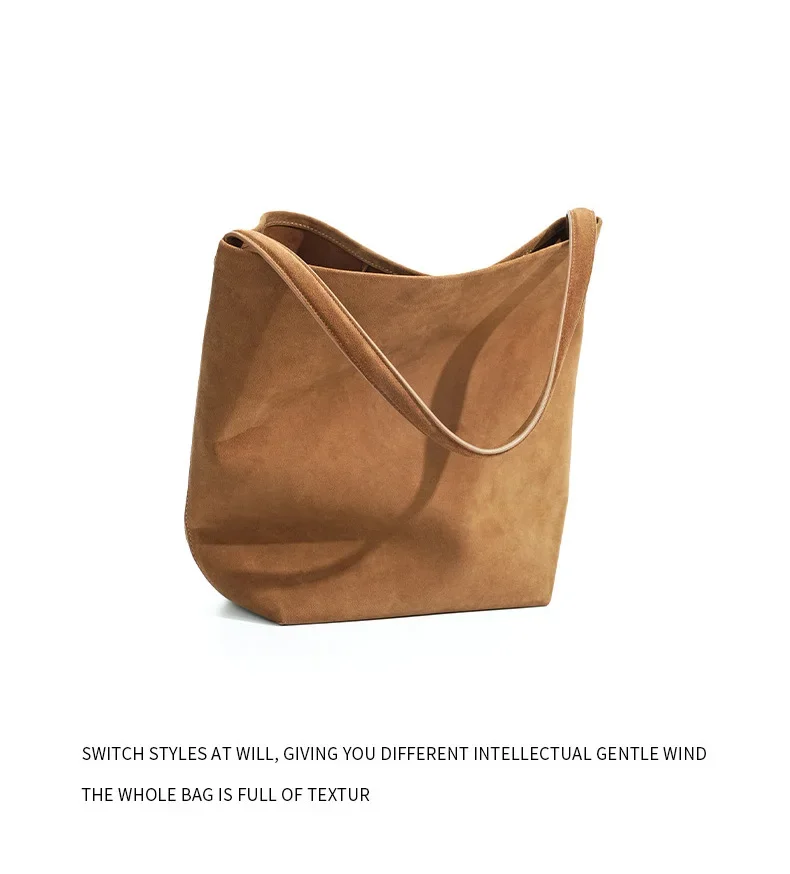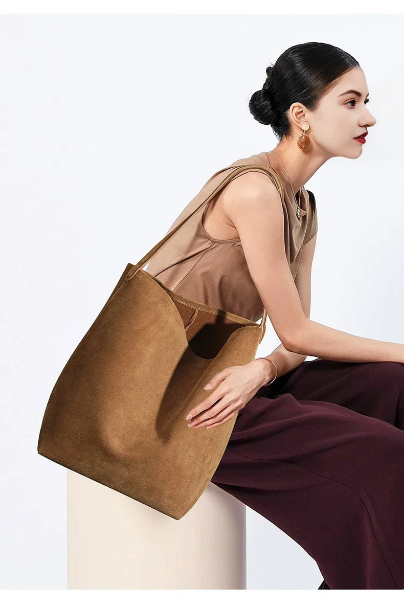 Motingsome Minimalism Bucket Bag Suede Leather Large capacity Matte Handbag Luxury Spilt Leather Shoulder Causal Tote 2024 New