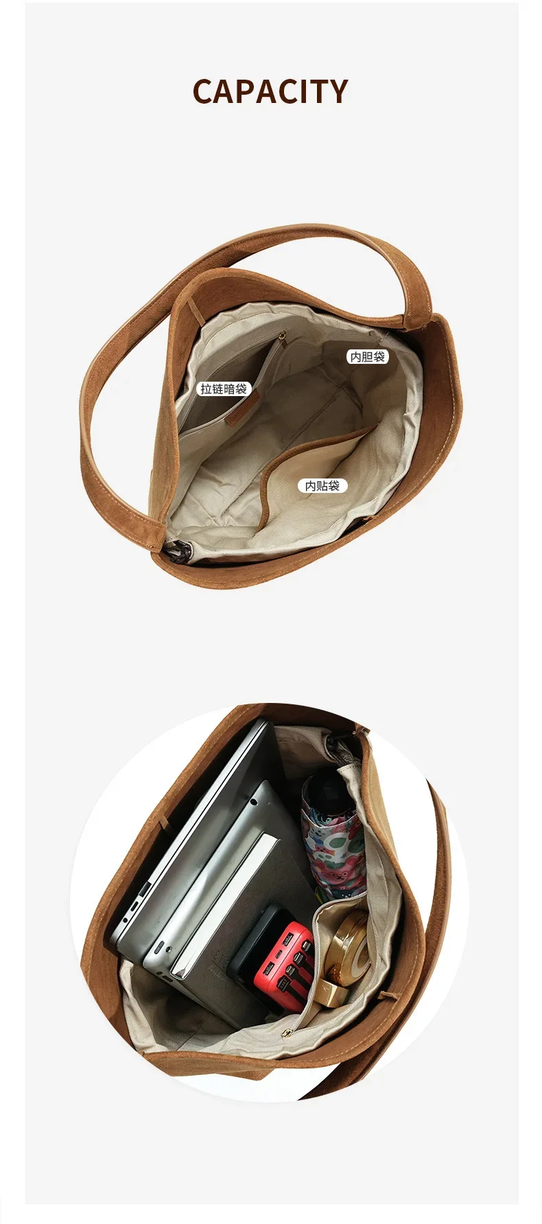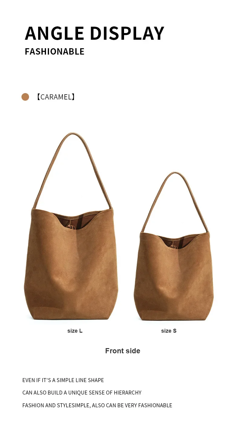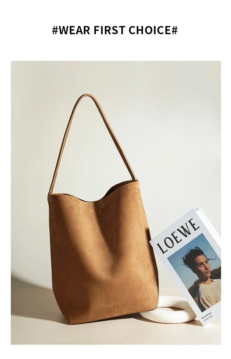 Motingsome Minimalism Bucket Bag Suede Leather Large capacity Matte Handbag Luxury Spilt Leather Shoulder Causal Tote 2024 New