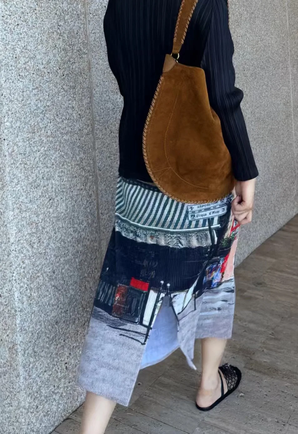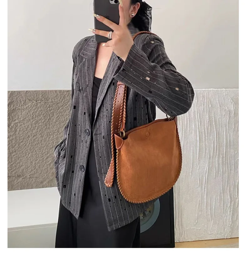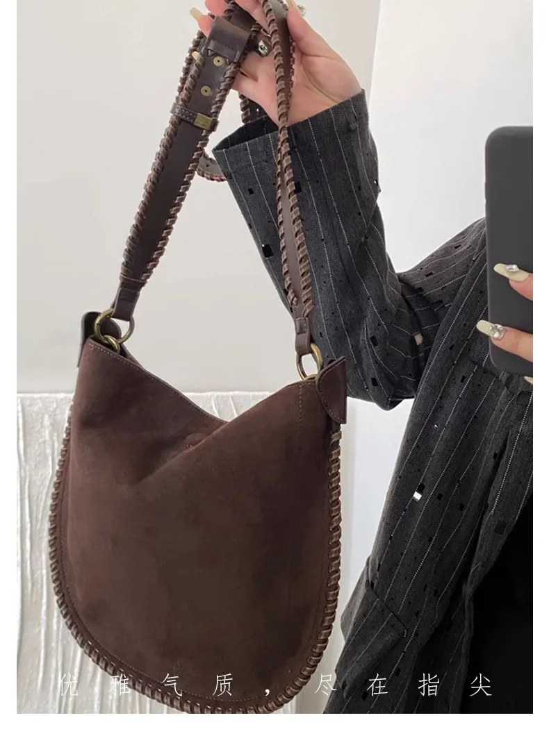 Motingsome Saddle Bag Women Shoulder Tote Luxury 100% Suede Leather Messenger Bag Wide Strap Large Capacity Commuting Purse 2024