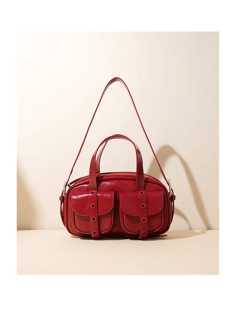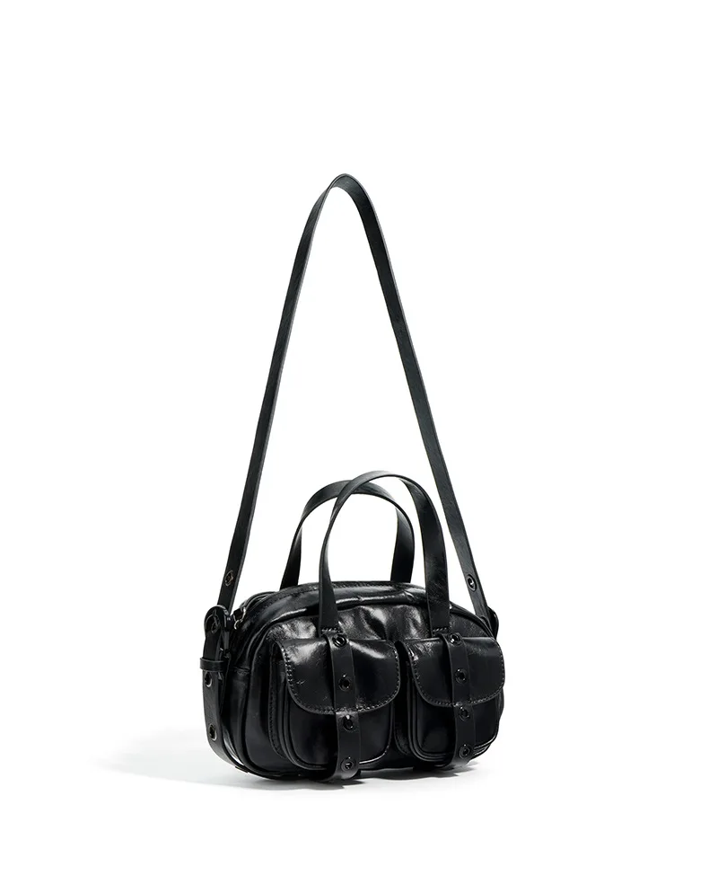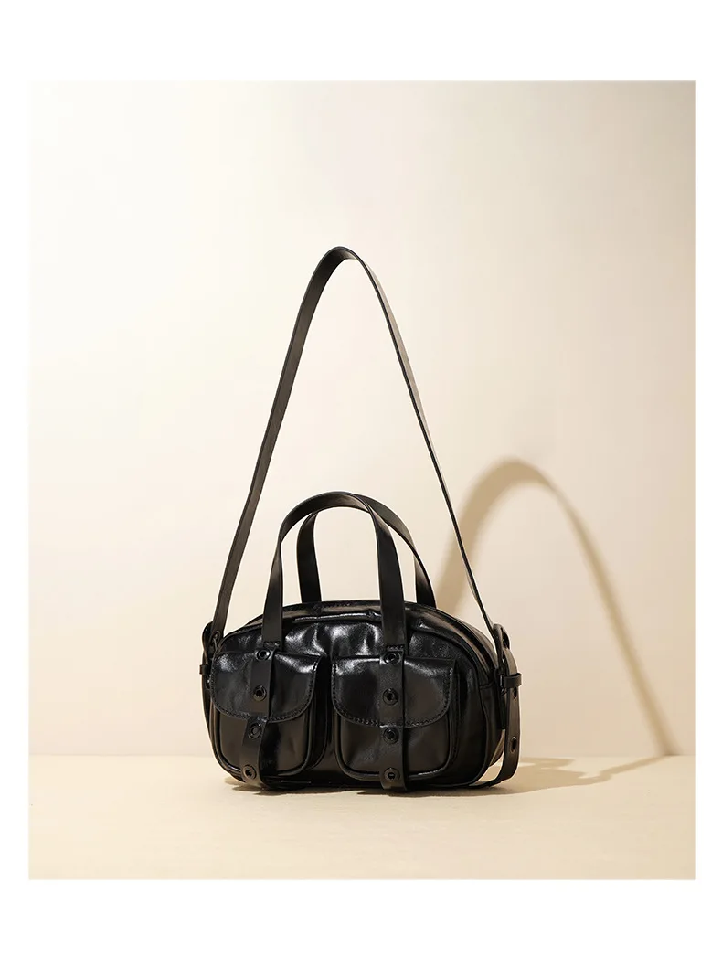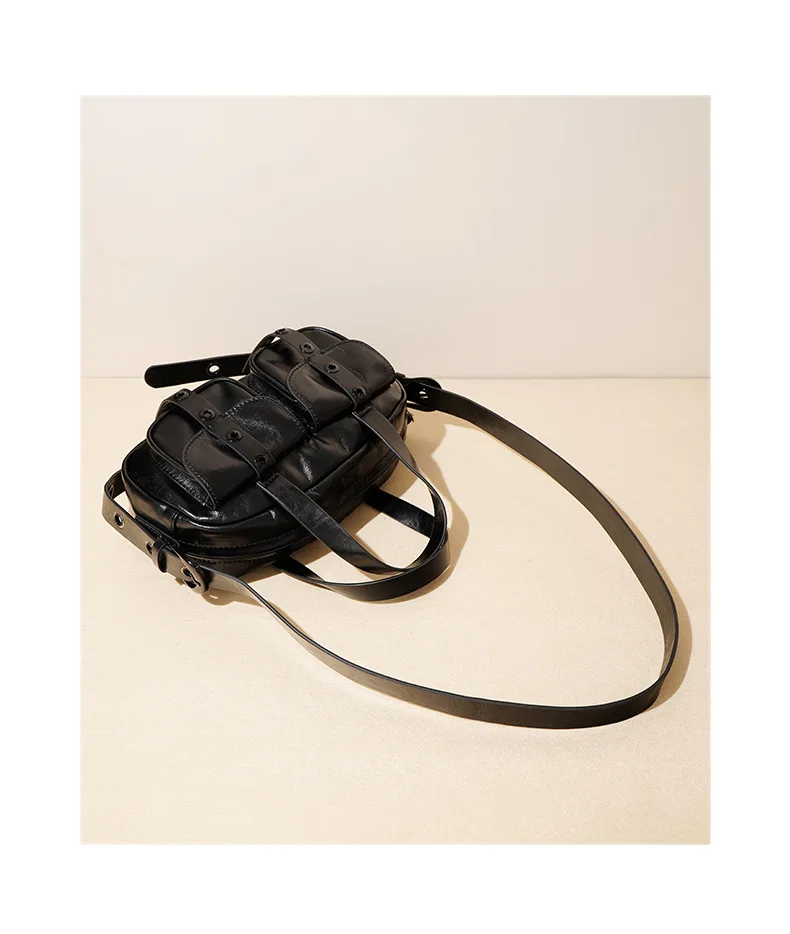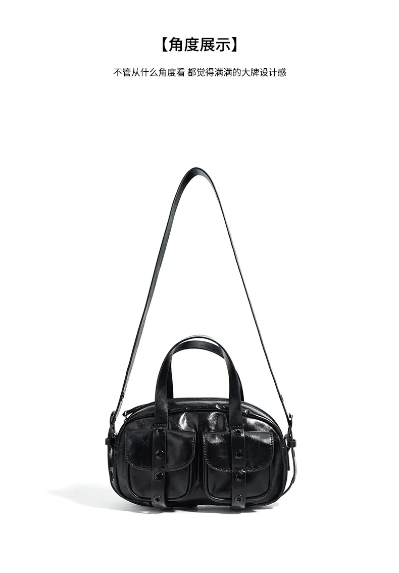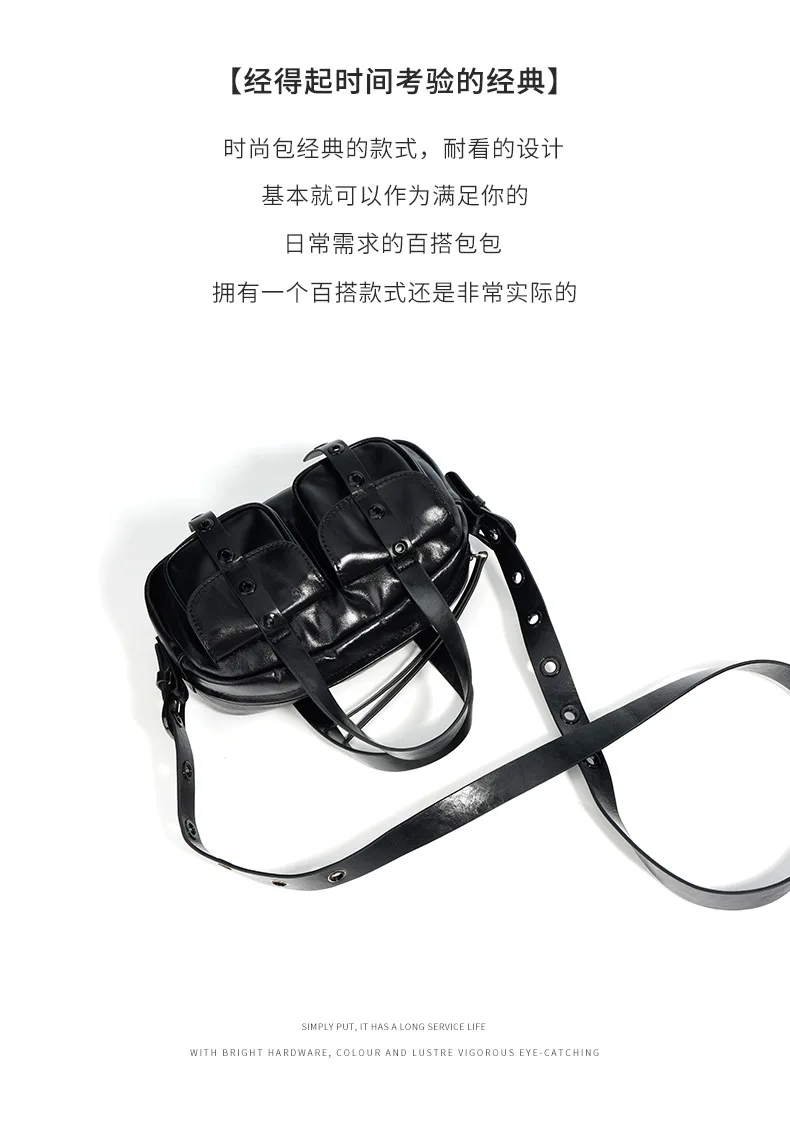 Motingsome Small Satchel Bags for Women Motorcycle Bag Luxury Underarm Pouch Bags Shoulder Purses Fashion Handbag Black 2024 New