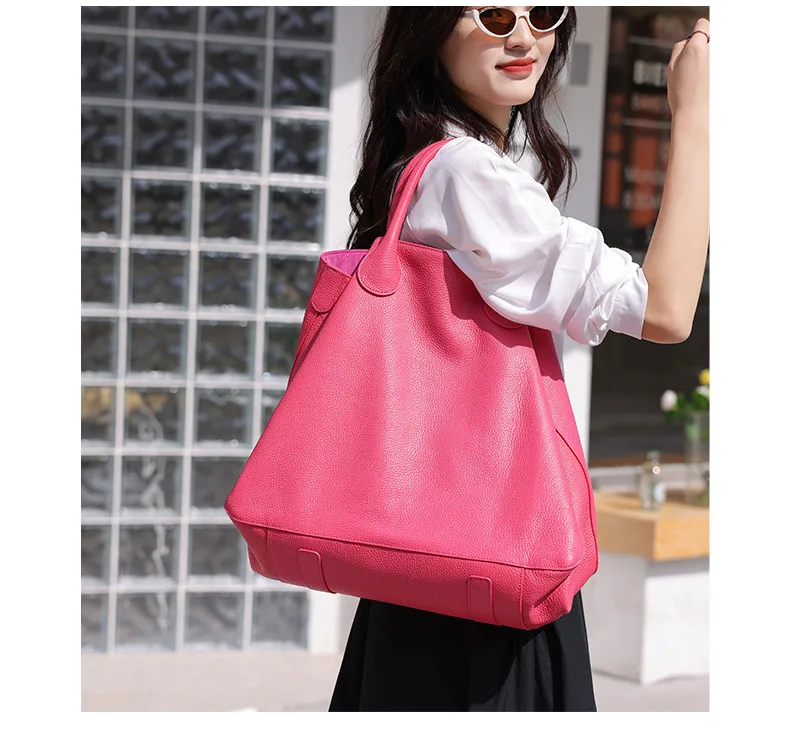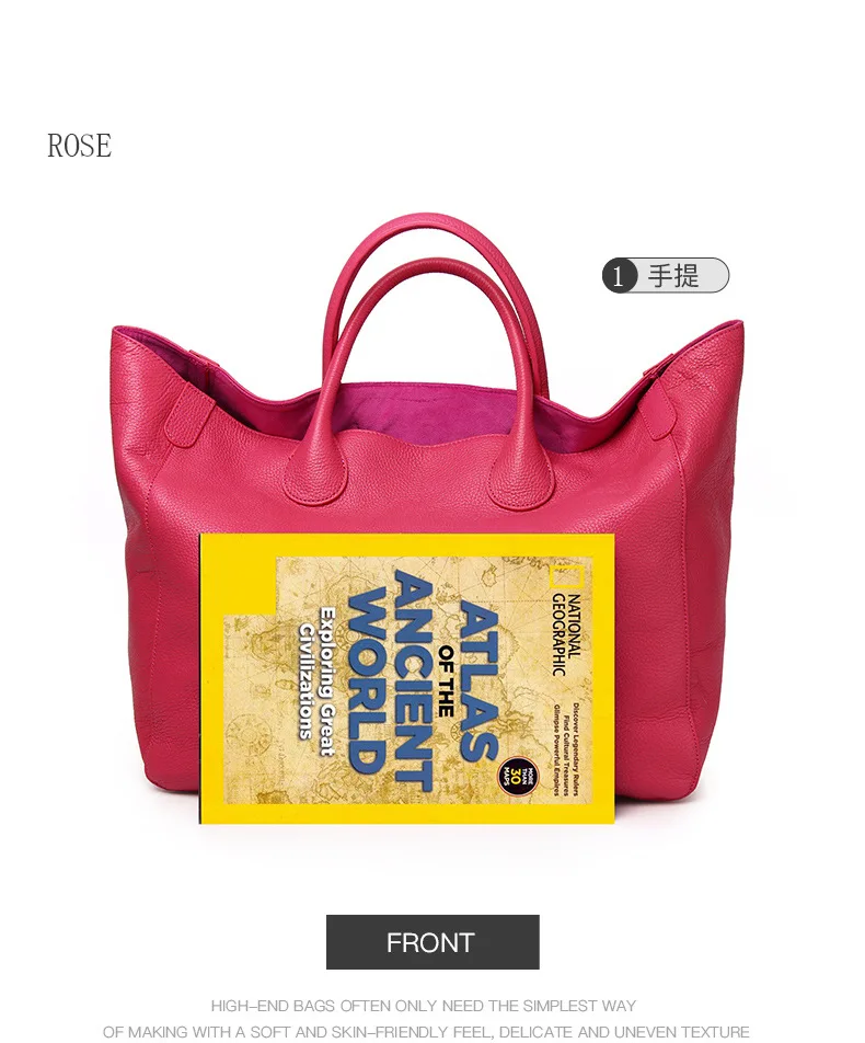 MS New Big Tote Leather Woman Bags 100% Natural Cow Skin Lady Handbag Roomy Travel Shoulder Bags Luxury Oversize Purses 2023 New