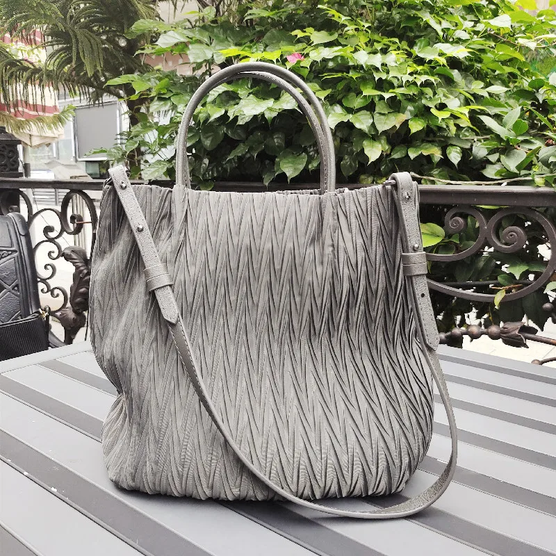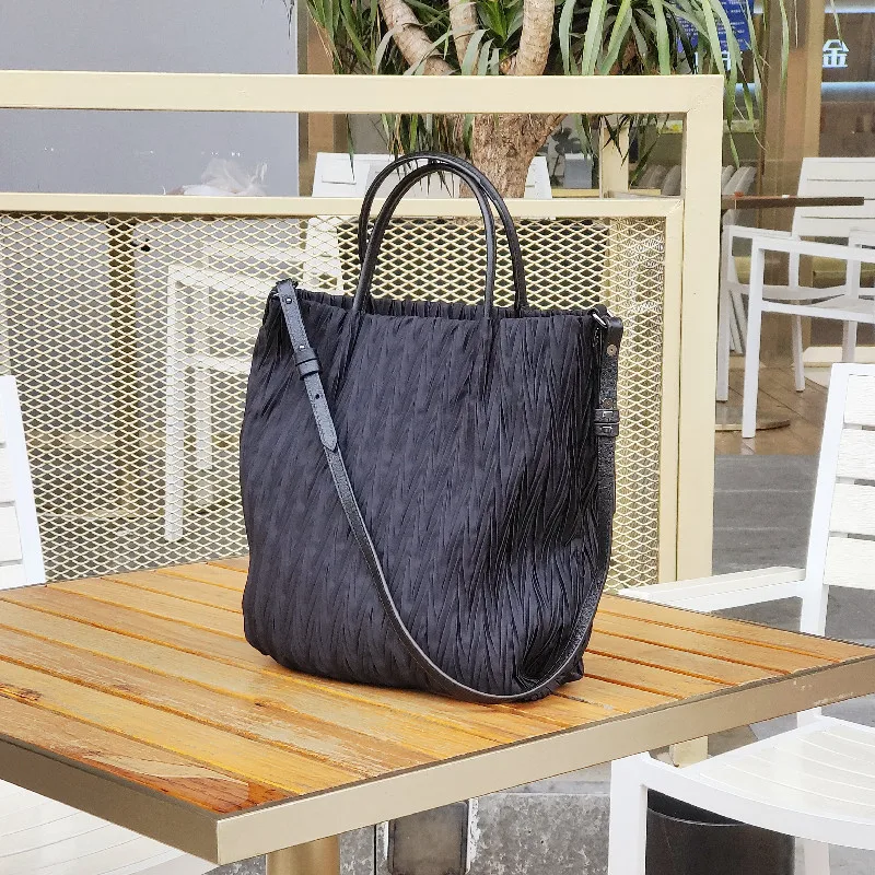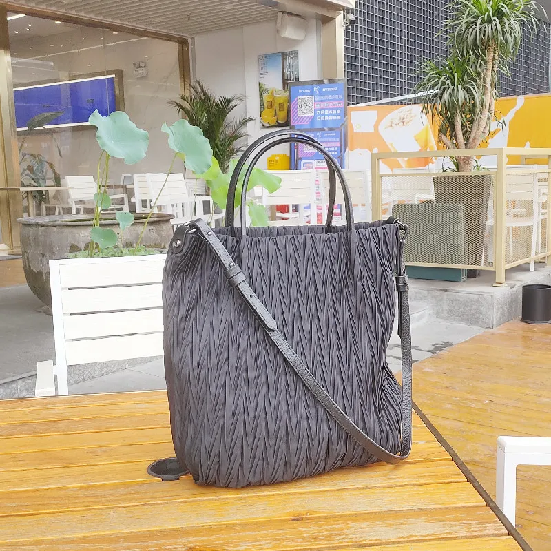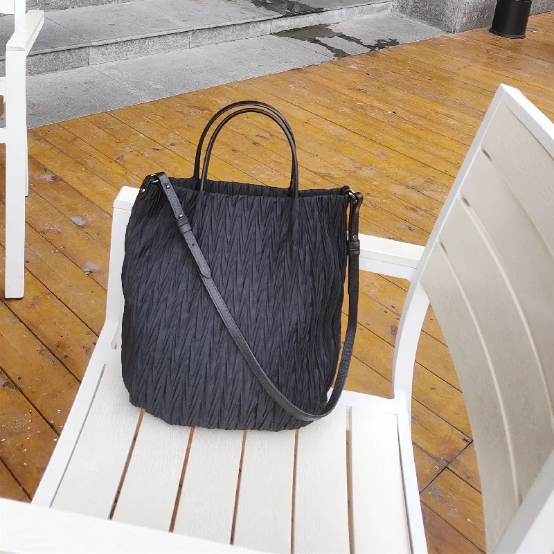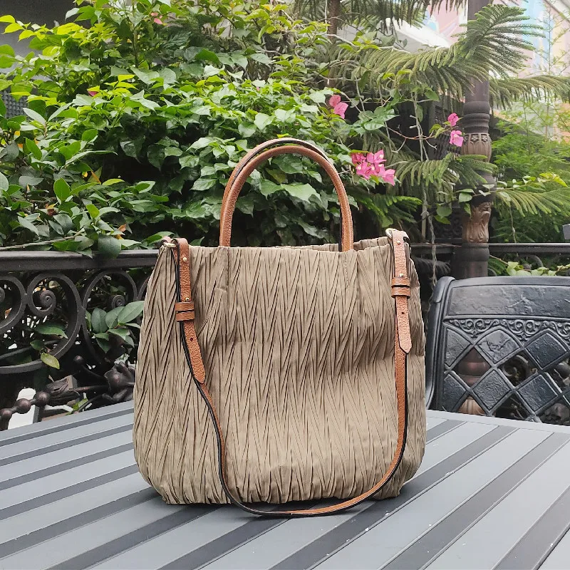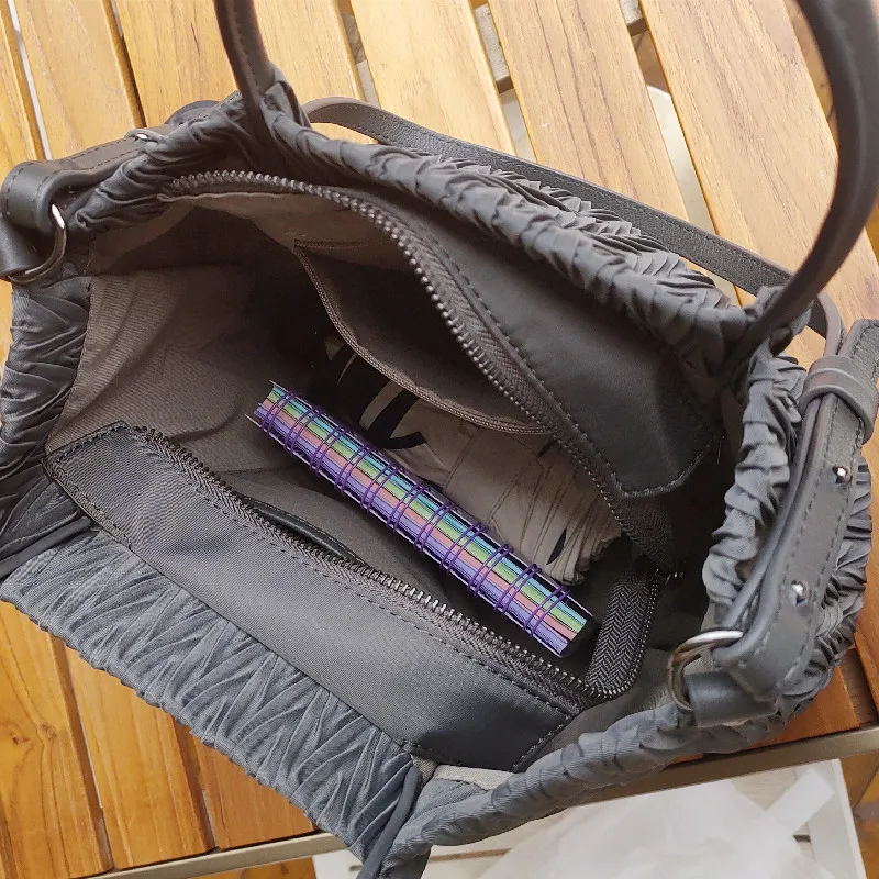 MS Retro Women Bucket Bag Luxury Pleated Parachute Fabric Waterproof Handbag Breathable Lady Nylon Tote Spring New In 2023