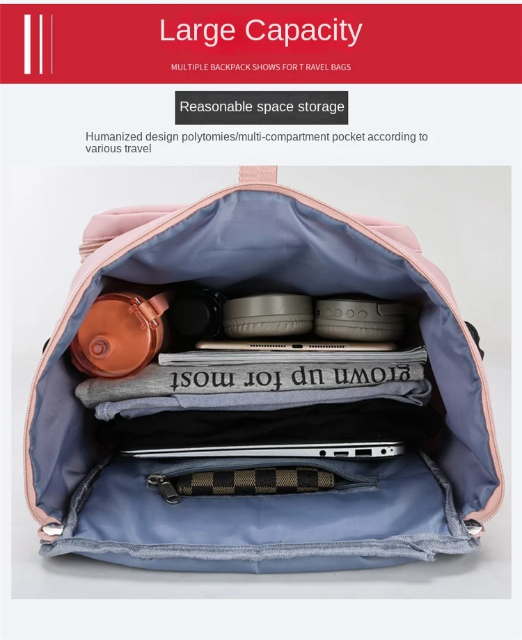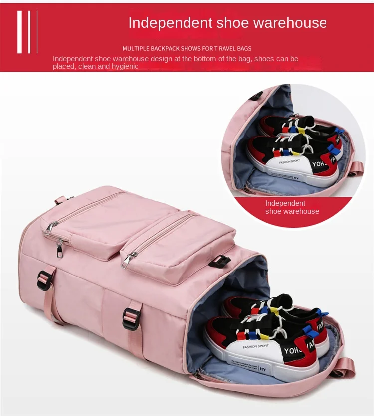 Multifunctional Fitness Travel Bag Lagre Shoulder Bags for Women with Independent Shoe Pocket Gym Girl Student School Backpack
