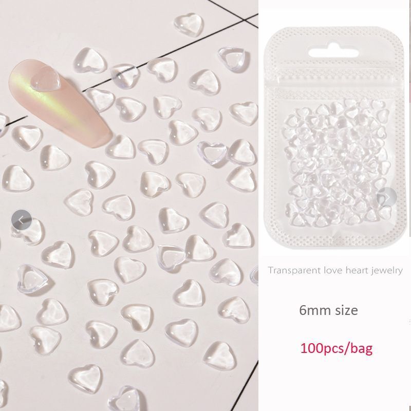 Nail Art Decals 20-100Pcs 3D Heart Charms Clear Acrylic DIY Manicure Accessories