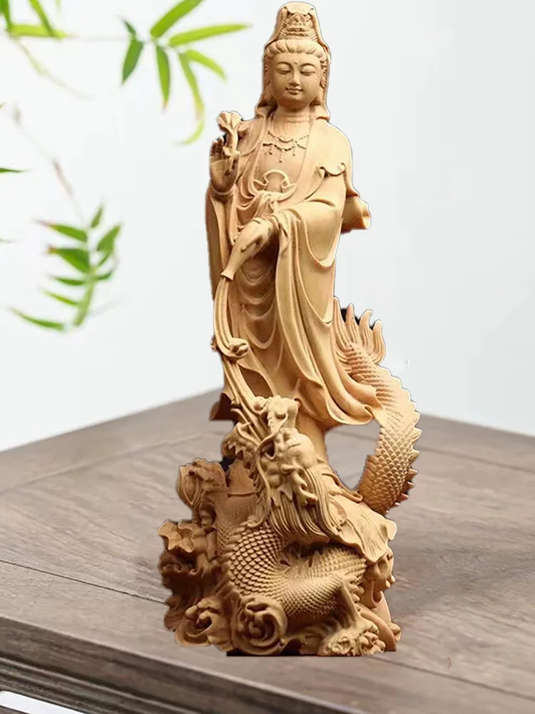 【Most Beautiful Guan Yin】Our Guan Yin statue is made from wooden Mexican Boxwood. Mexican Boxwood carvings have formed an independent art style, and they are loved by people for their vivid shapes and characters. Mexican Boxwood Cypress carving works are the dream of the collection industry.