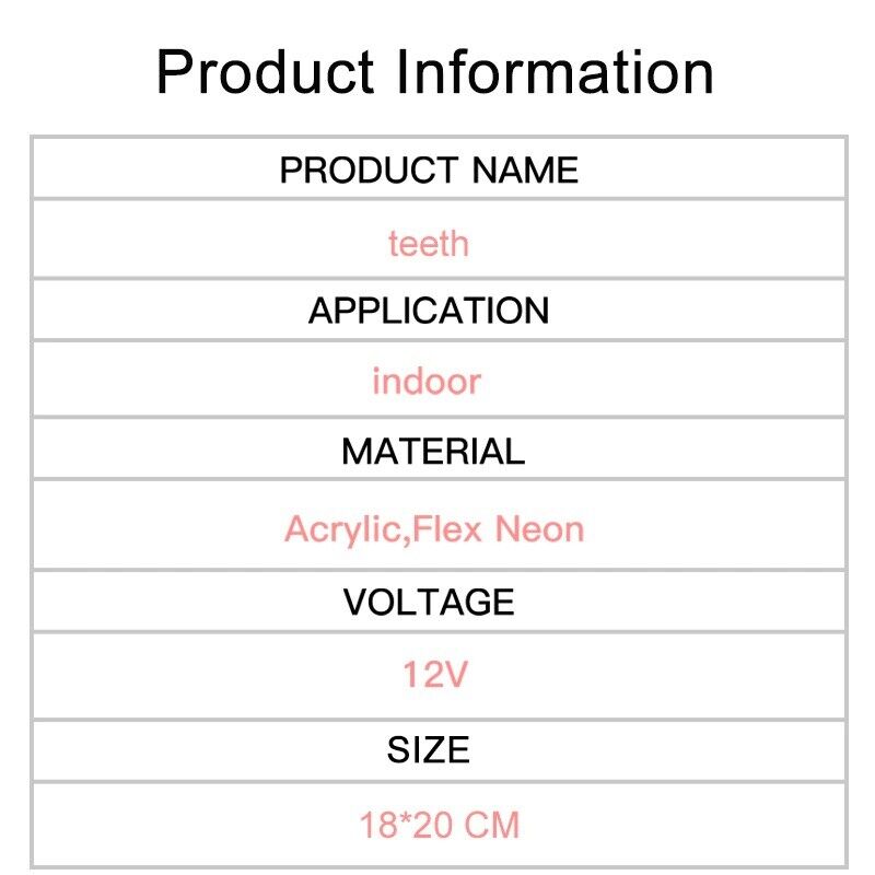 Neon Lights Tooth Signs LED Party Table Lamps Shop Window Art Room Decor 10x18cm