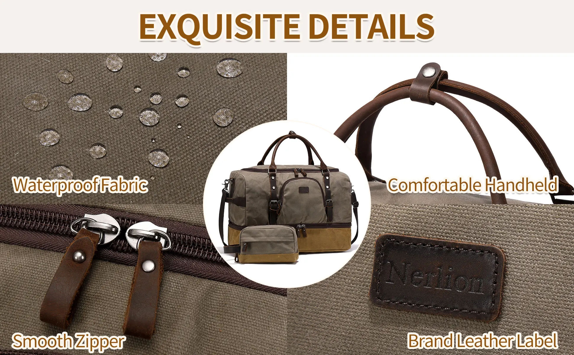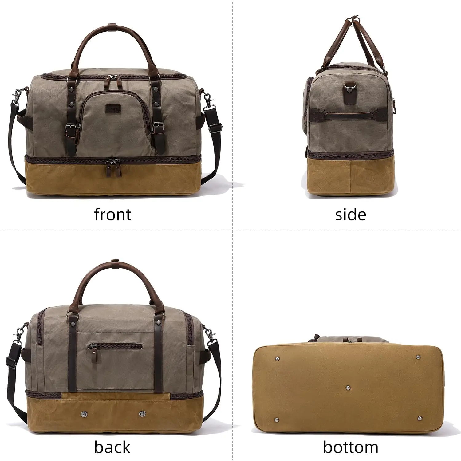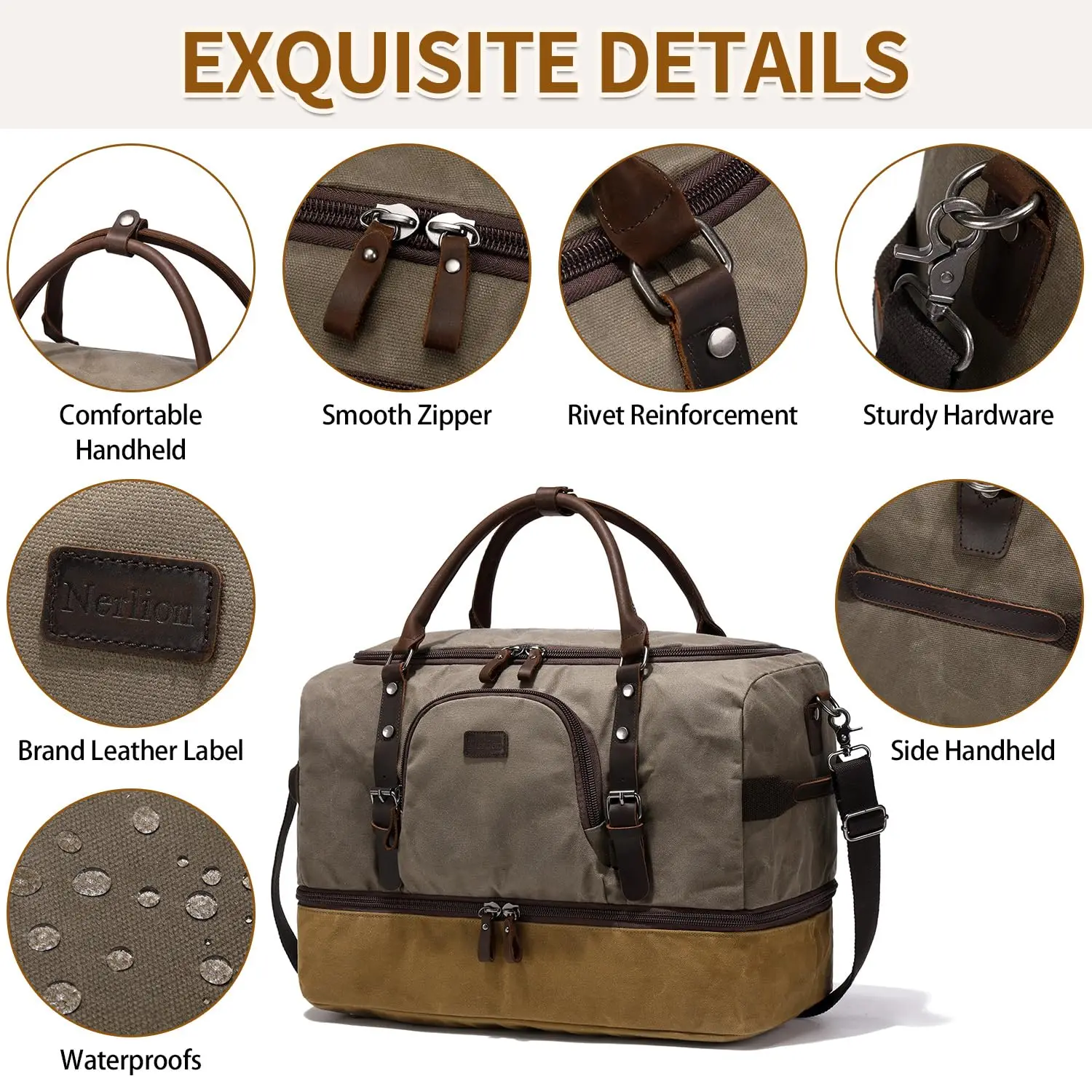 Quality Material: This weekender bag is made of waterproof durable waxed canvas and quality genuine leather, it is durable in use and rich in looks, handcrafted by skilled craftsmen. 100% quality inspected before they are delivered to you