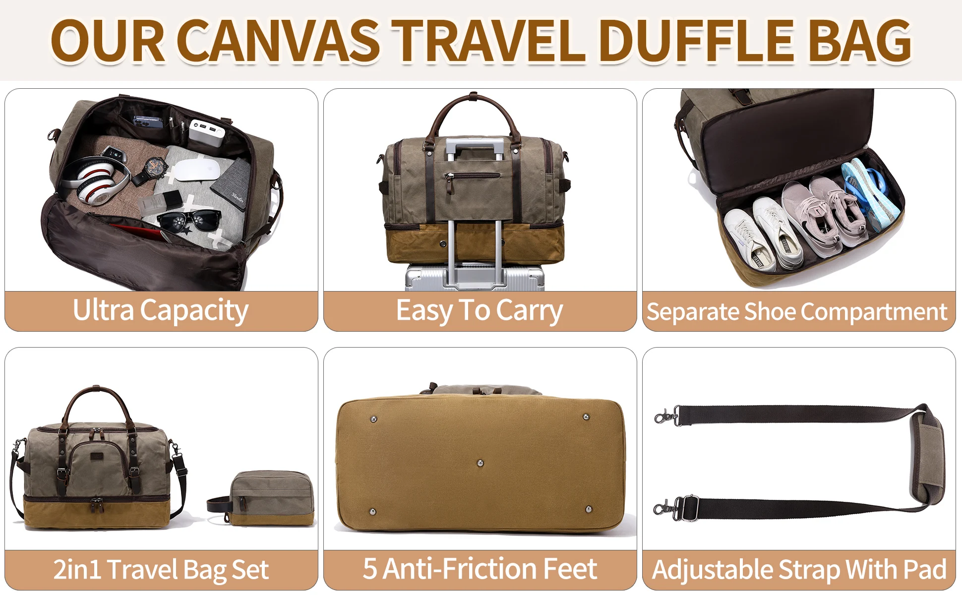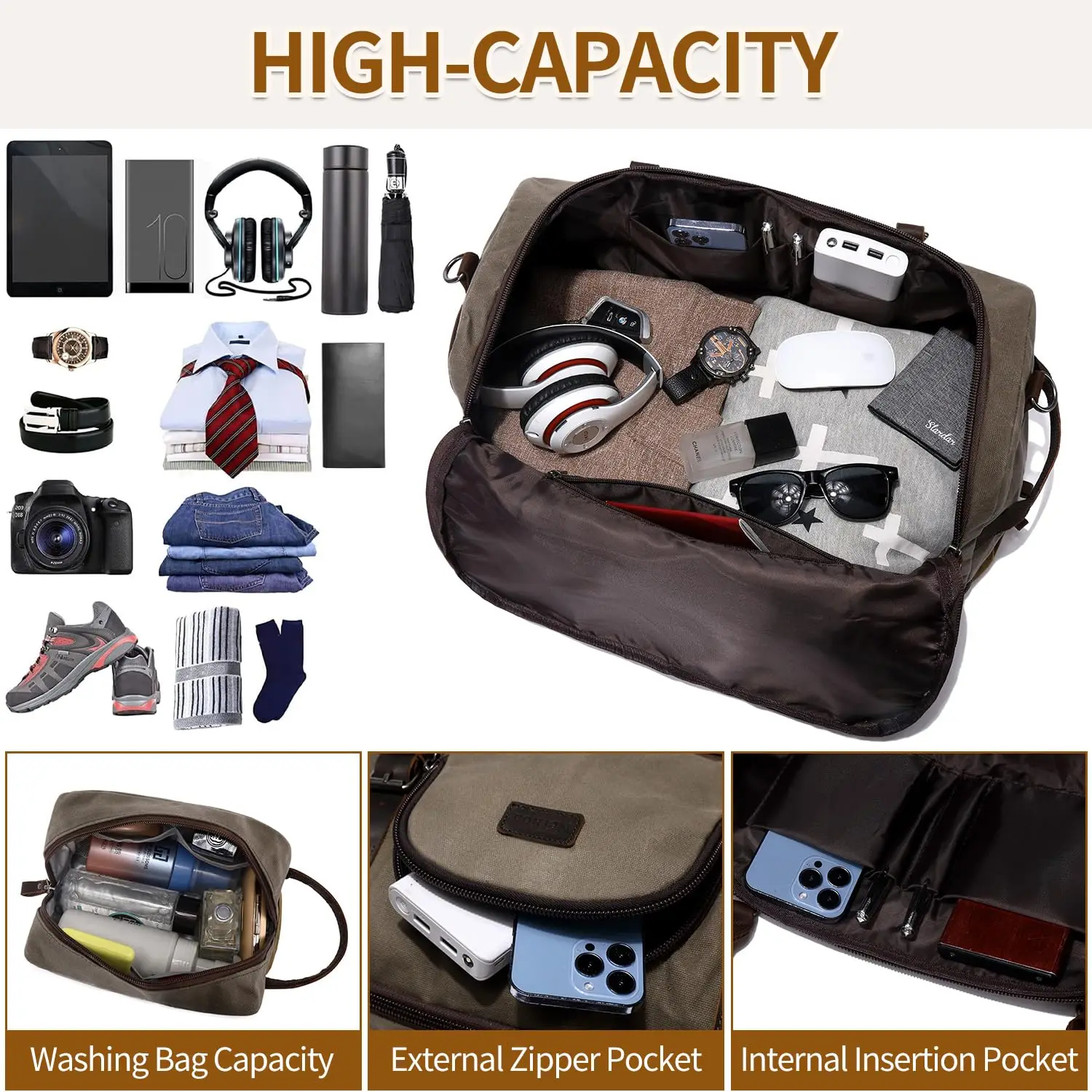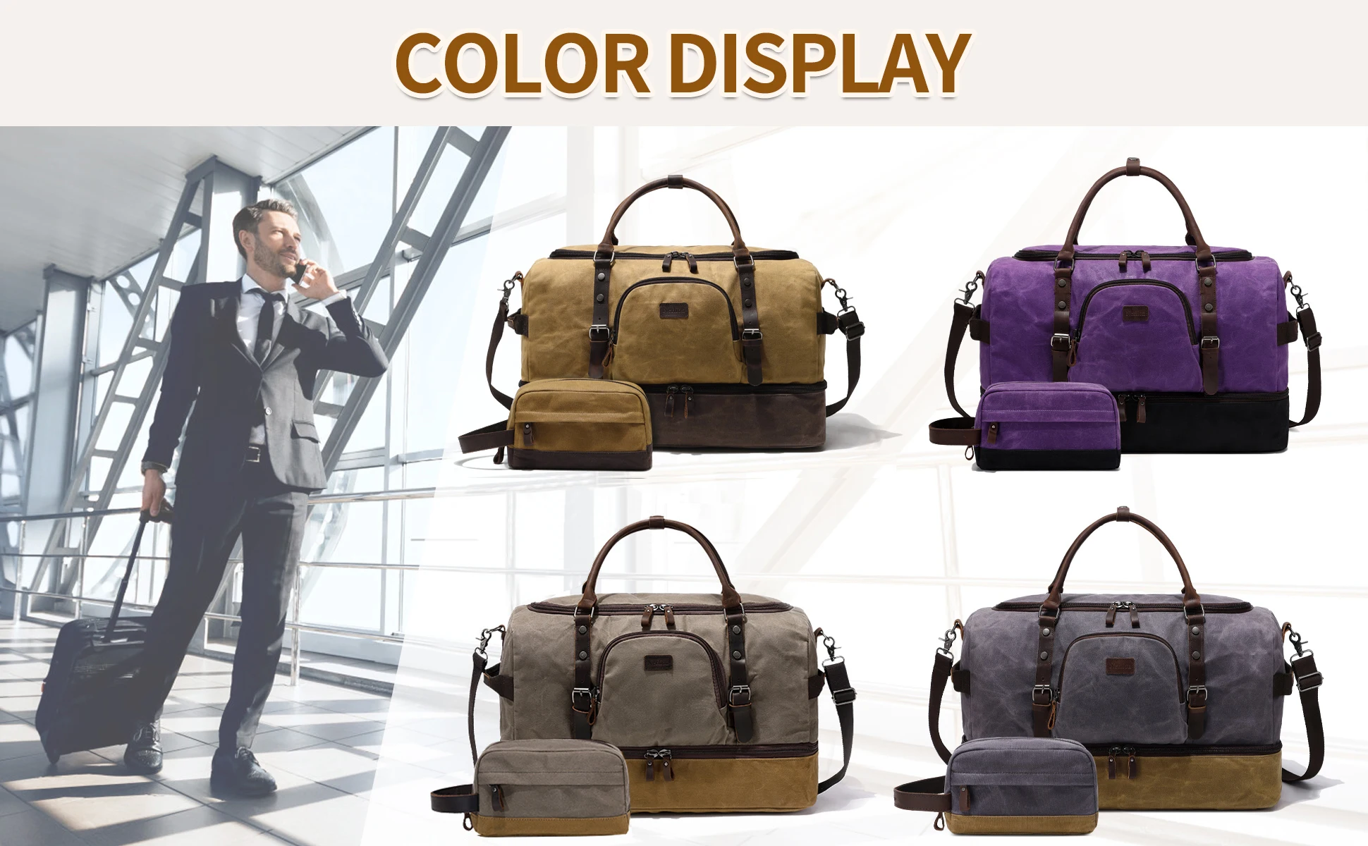 Quality Material: This weekender bag is made of waterproof durable waxed canvas and quality genuine leather, it is durable in use and rich in looks, handcrafted by skilled craftsmen. 100% quality inspected before they are delivered to you