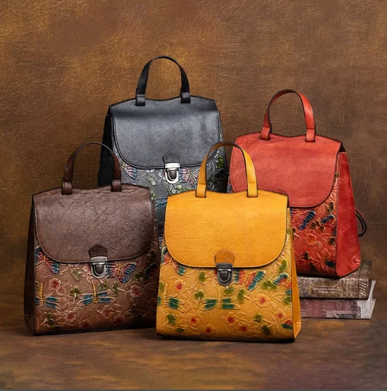 New 4 Colors Women Soft Leather Backpack Retro Cowhide Women's Shoulder Bag Casual Travel Ladies Bagpacks For Ipad Phone