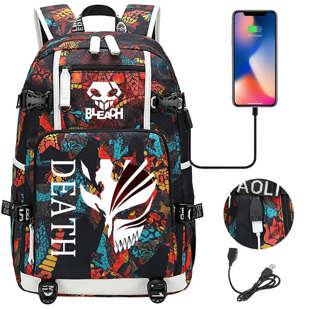 New Anime Bleach USB Large Capacity Teenagers Schoolbags Women Men Laptop Travel Backpack Girls Boys Kids School Book Bags