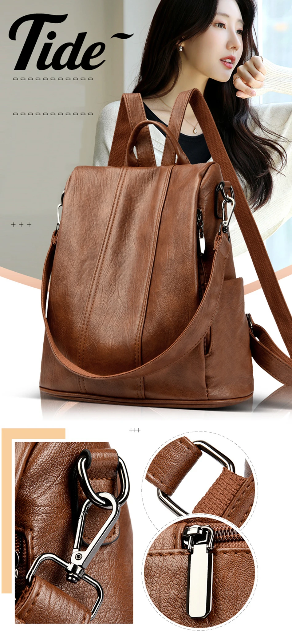 Fashion Women Backpack Luxury Designer Ladies Anti-theft Backpack Soft Leather School Bags Large Capacity Travel Bags Mochila