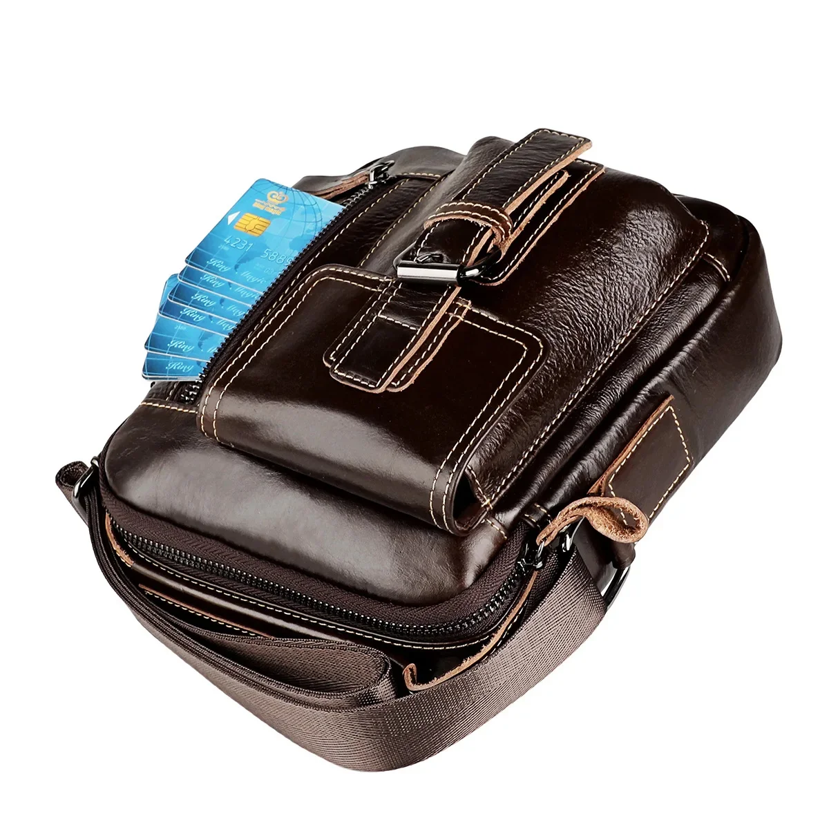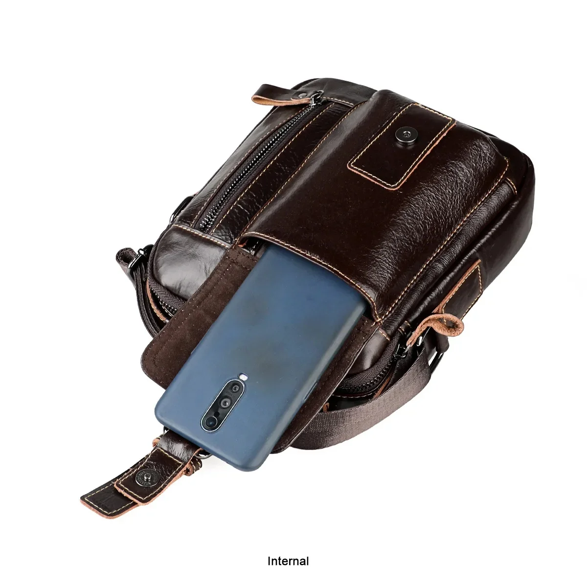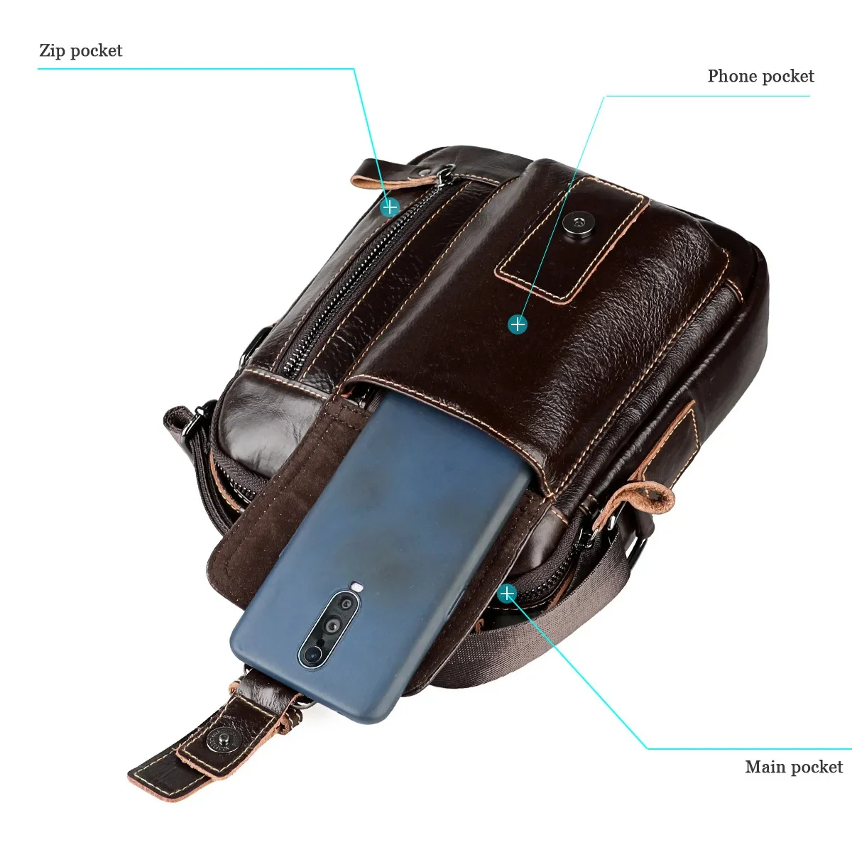 New Arrival Genuine Leather Men's Shoulder Vertical Casual Fashion Trendy Small Crossbody Bag for Phone Outdoor