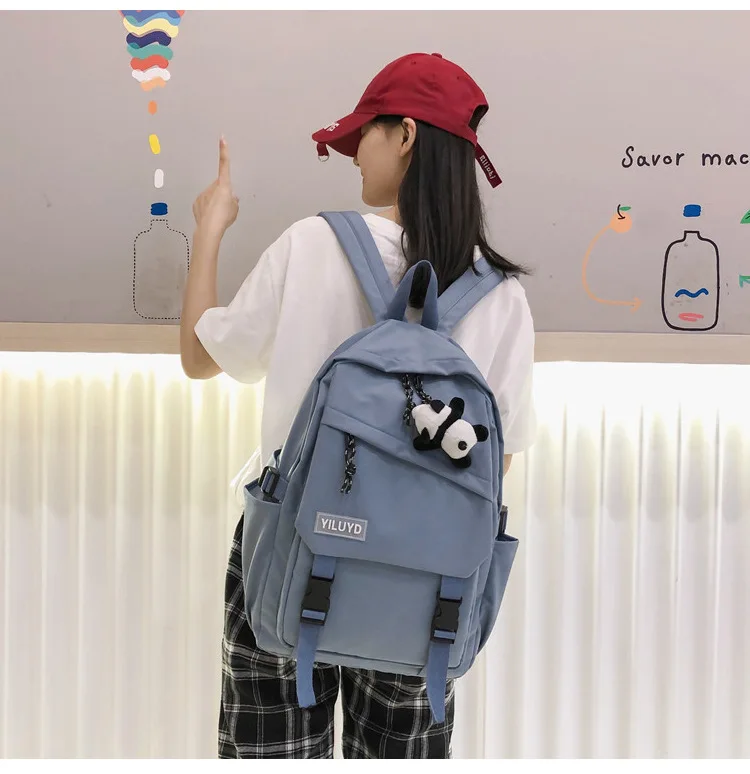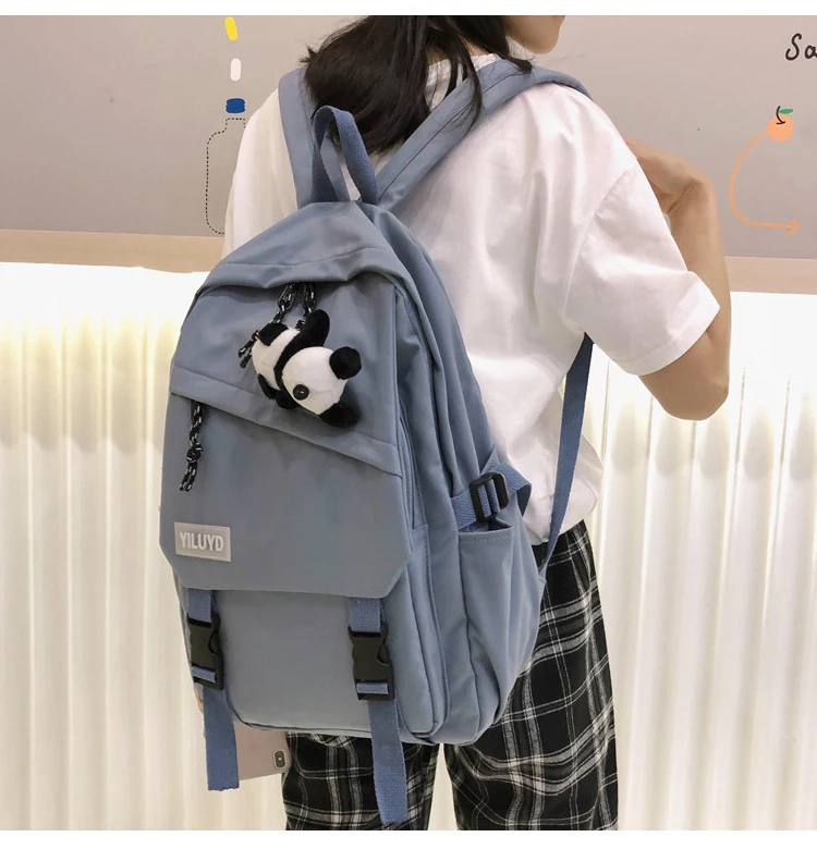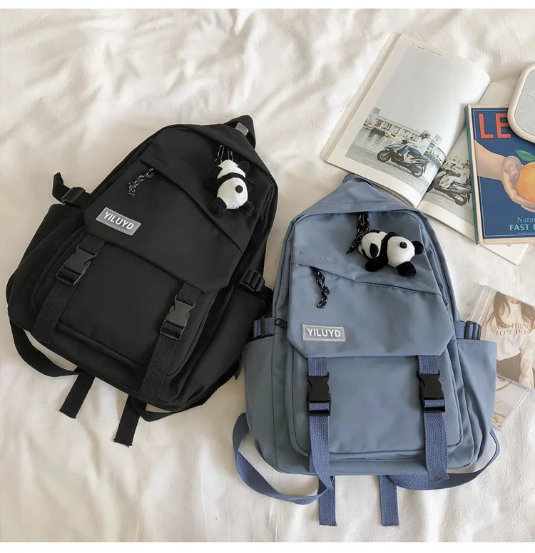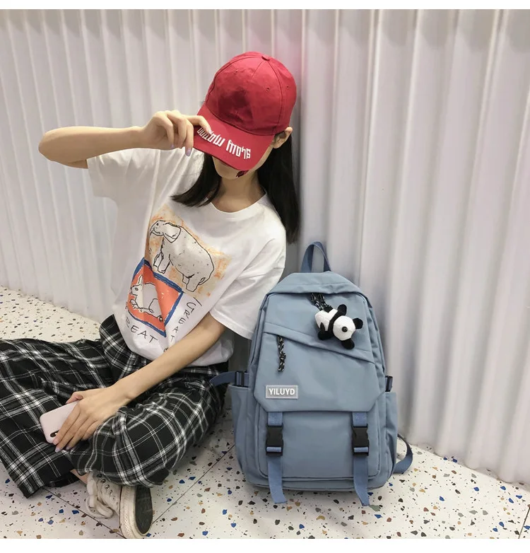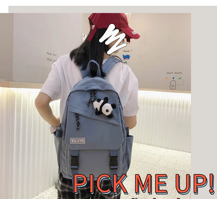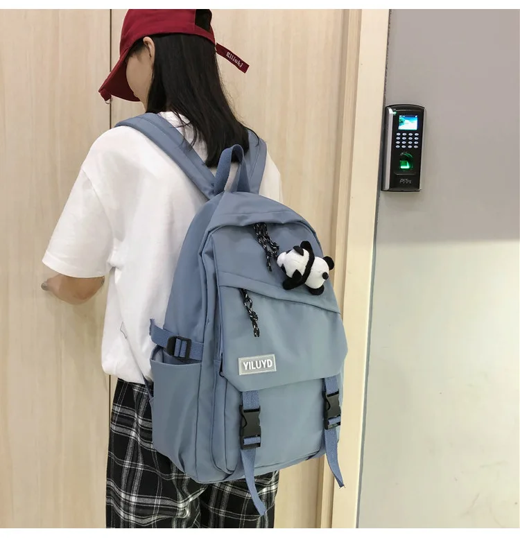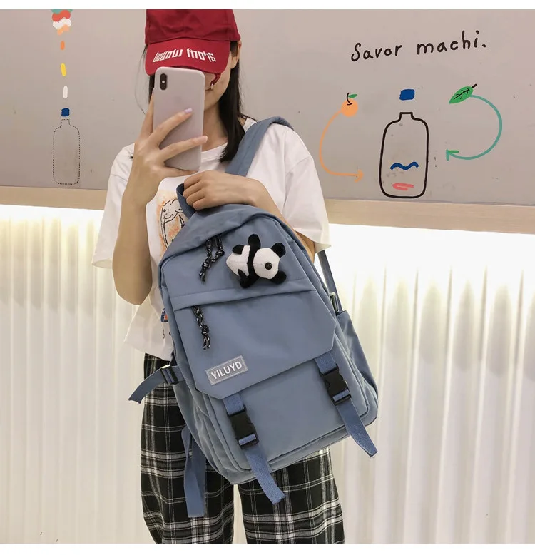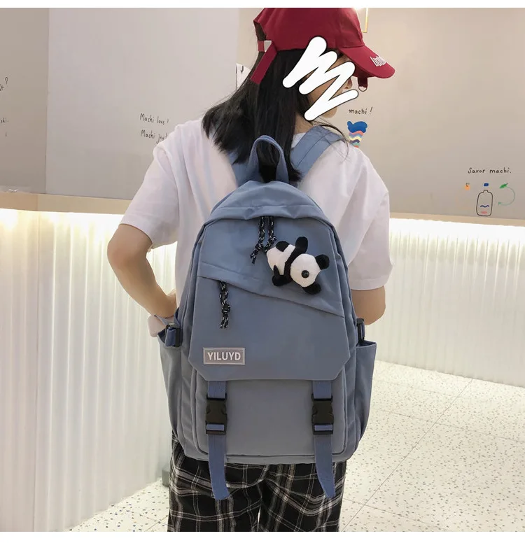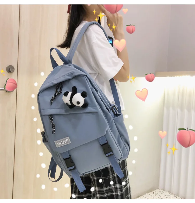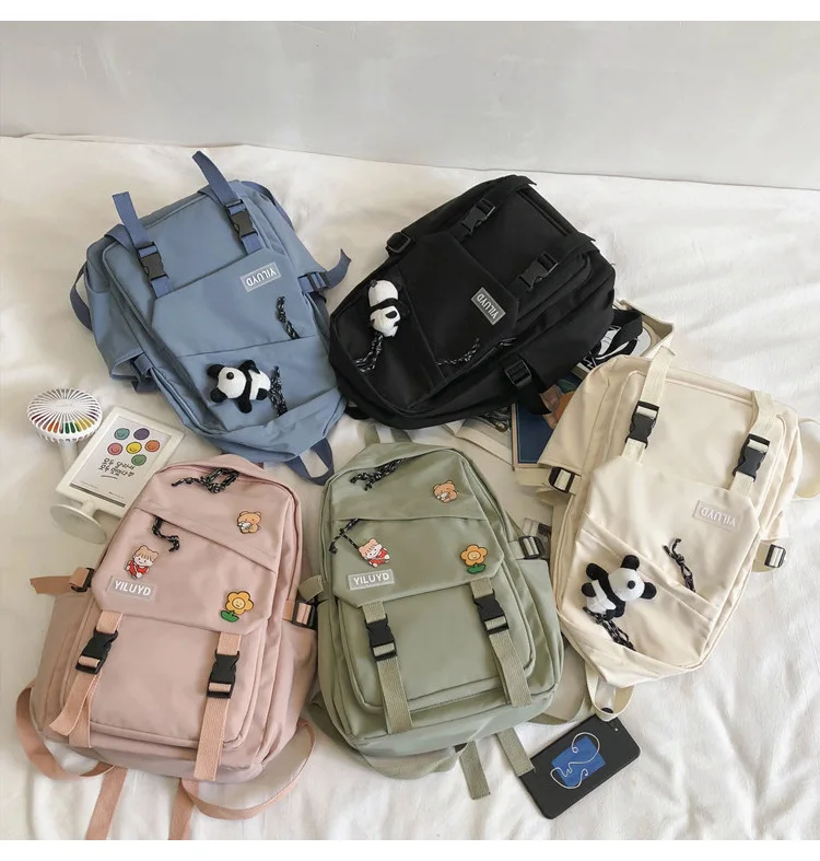New Backpack Women Multi Pocket Women Students Panda Badges Backpack School Bag Teenage Shoulder Travel Bag Female Backpacks