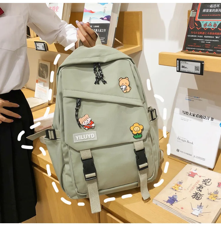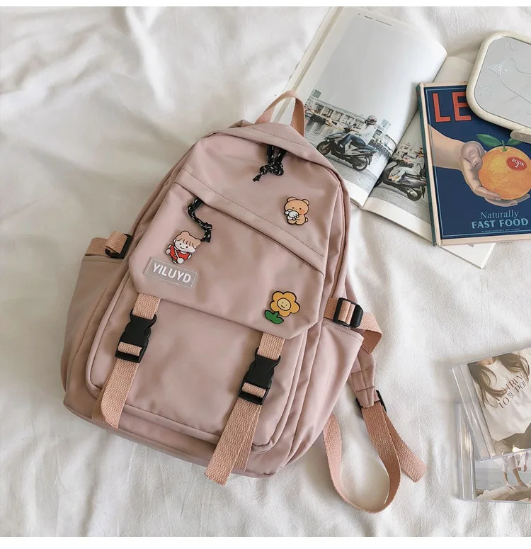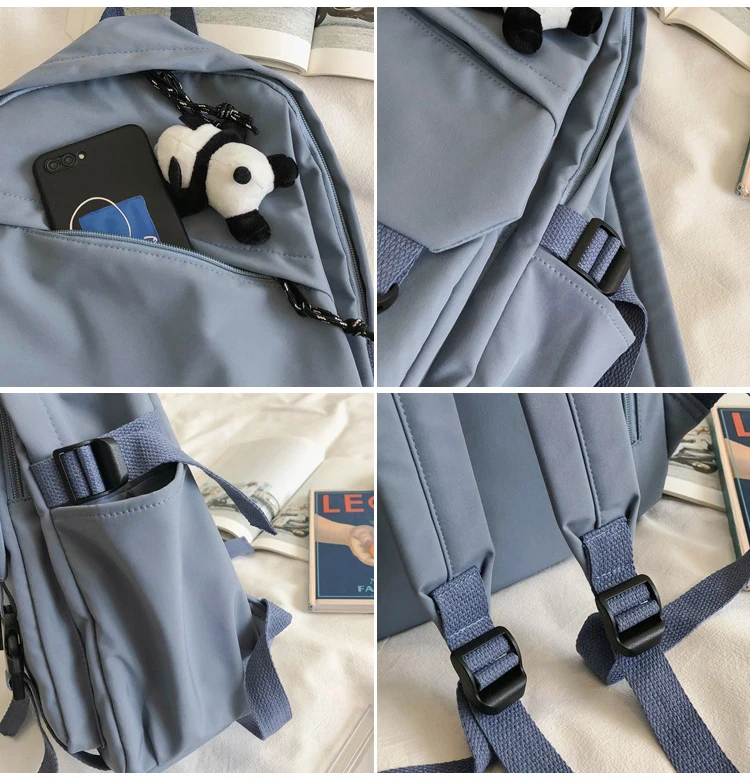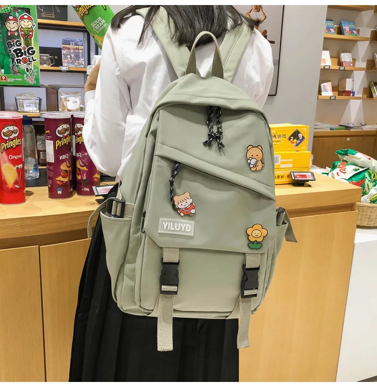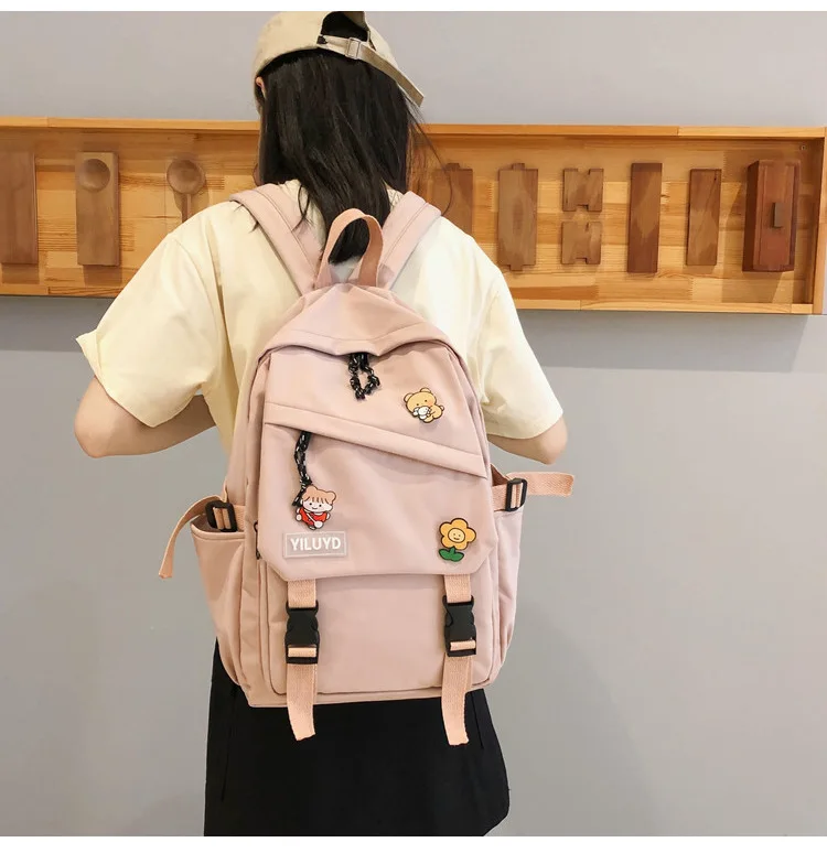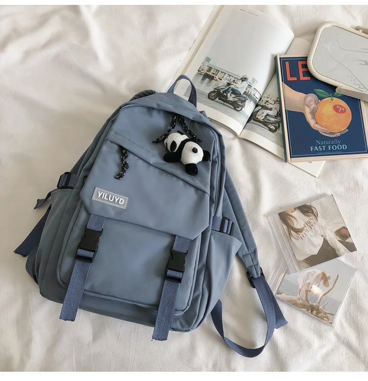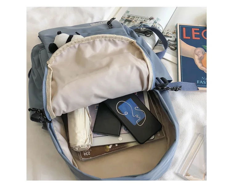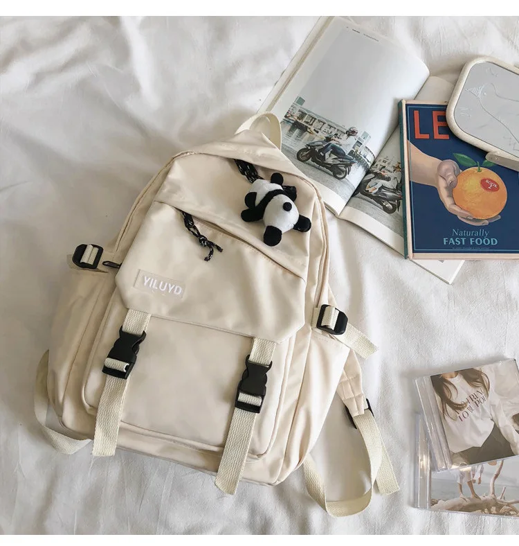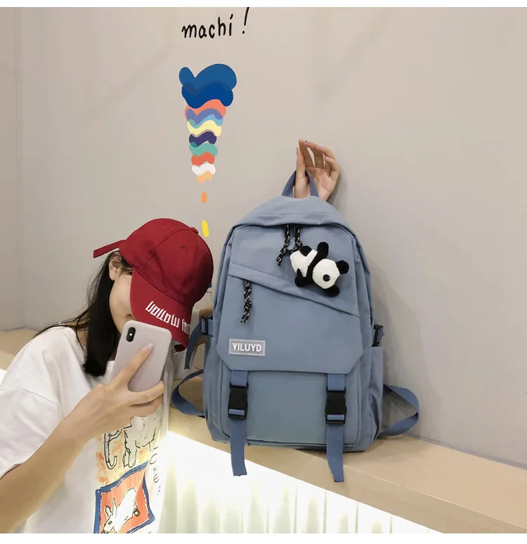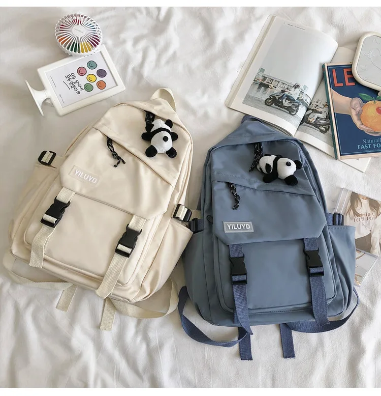 New Backpack Women Multi Pocket Women Students Panda Badges Backpack School Bag Teenage Shoulder Travel Bag Female Backpacks
