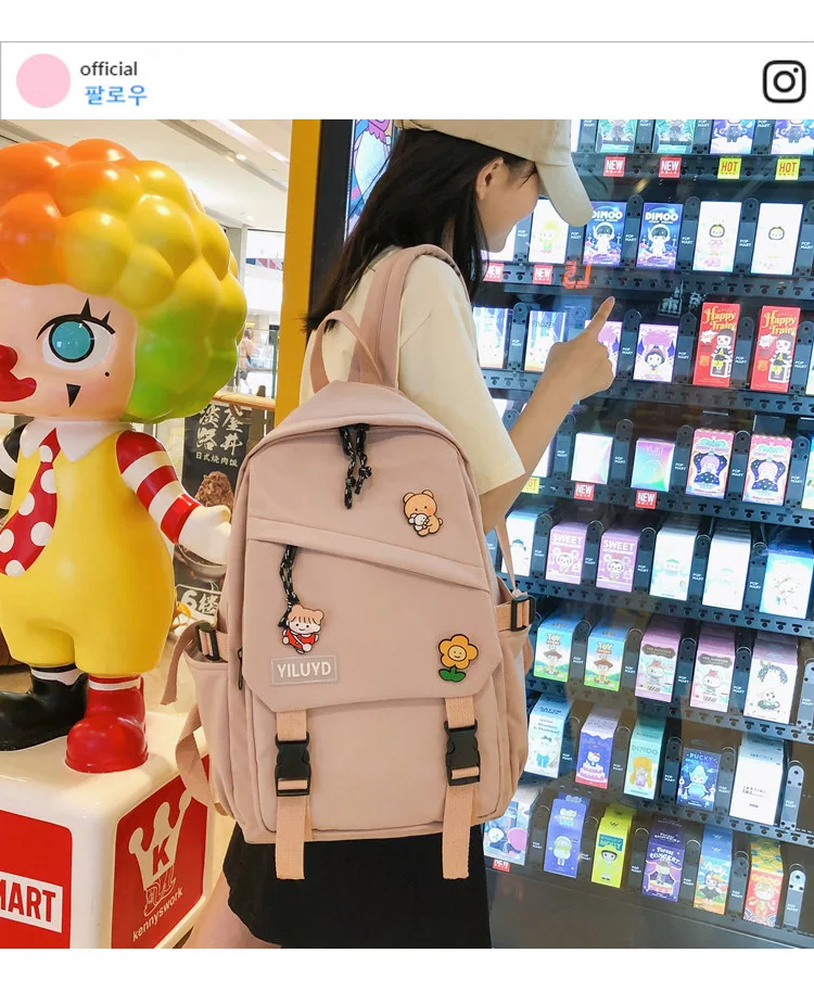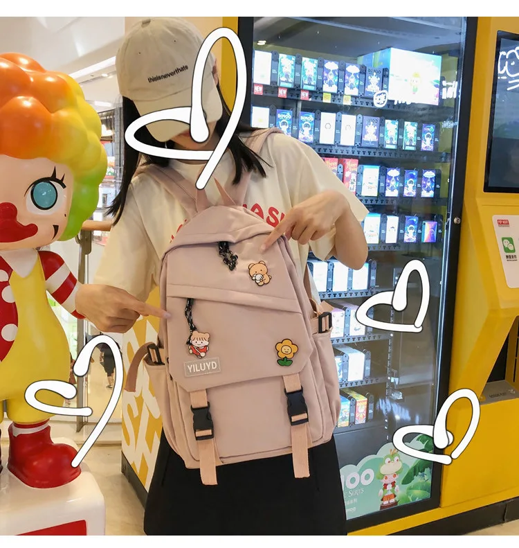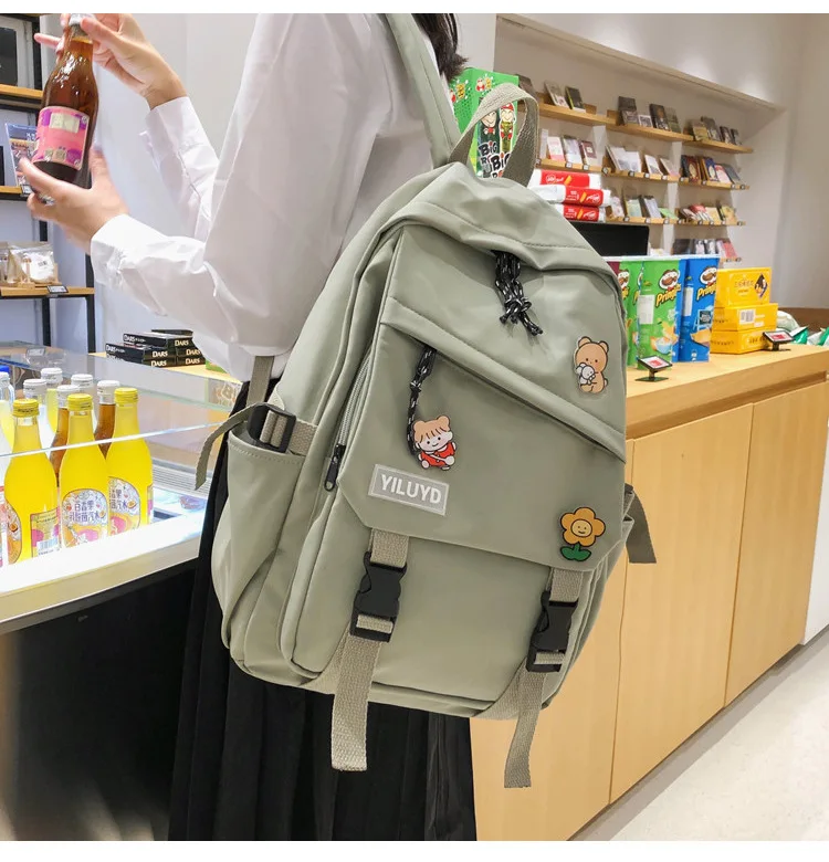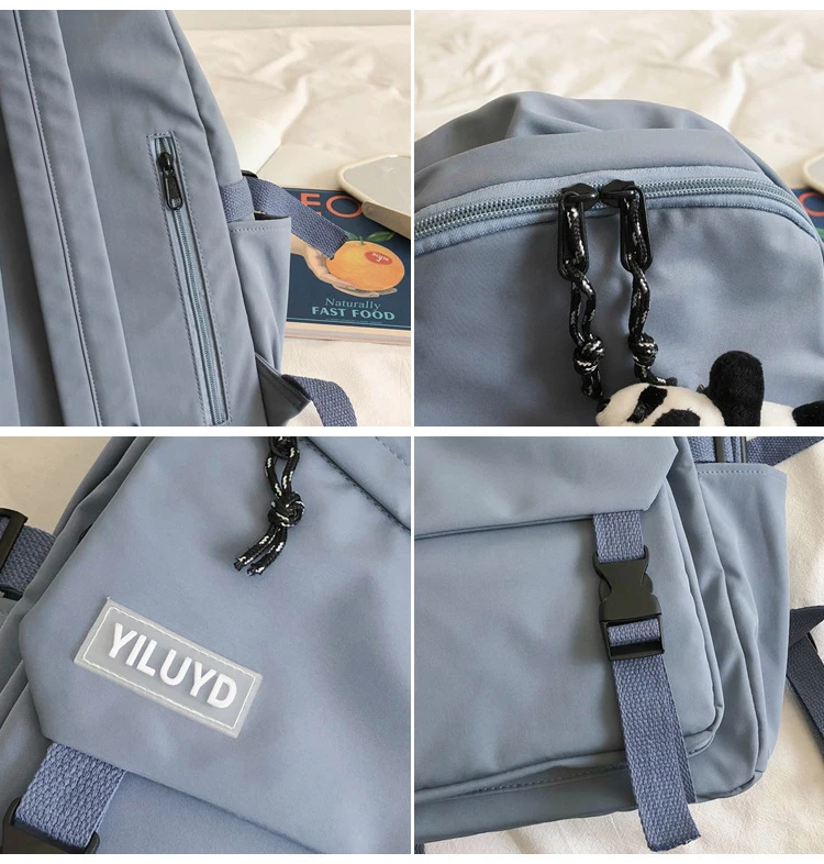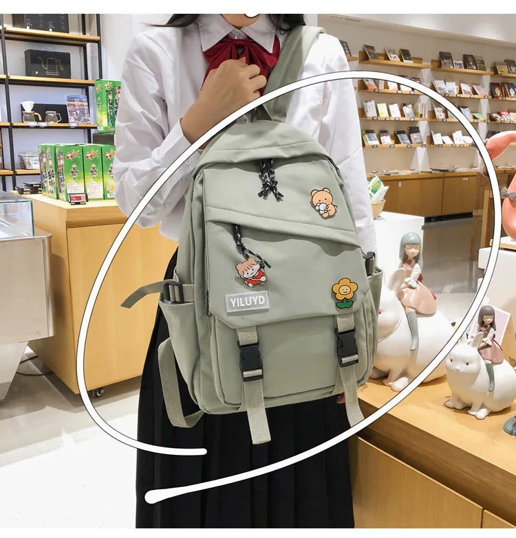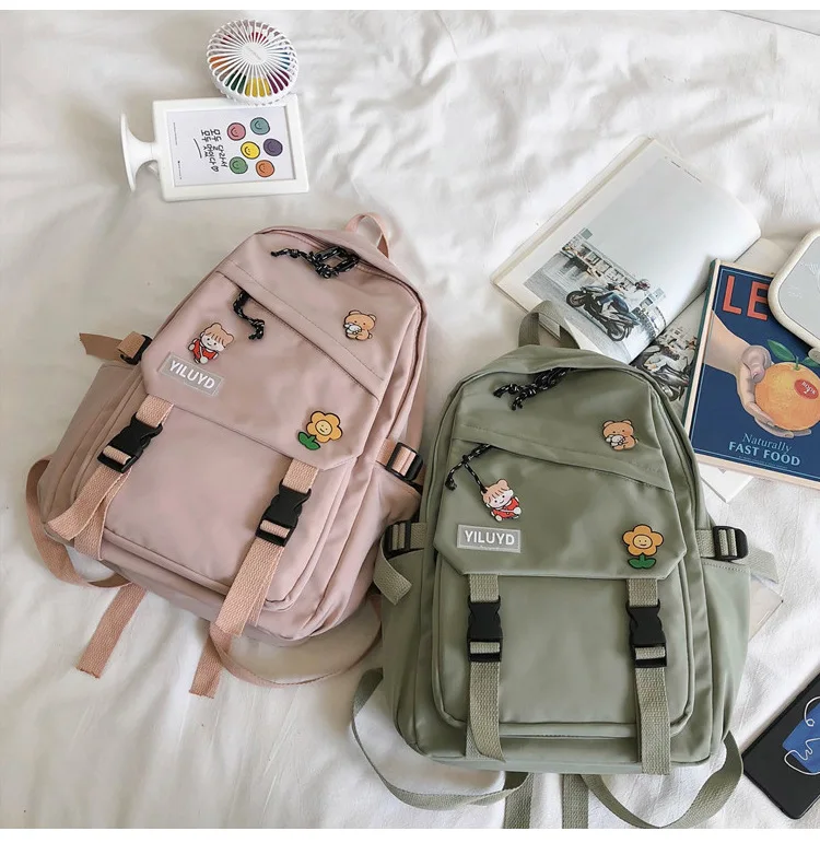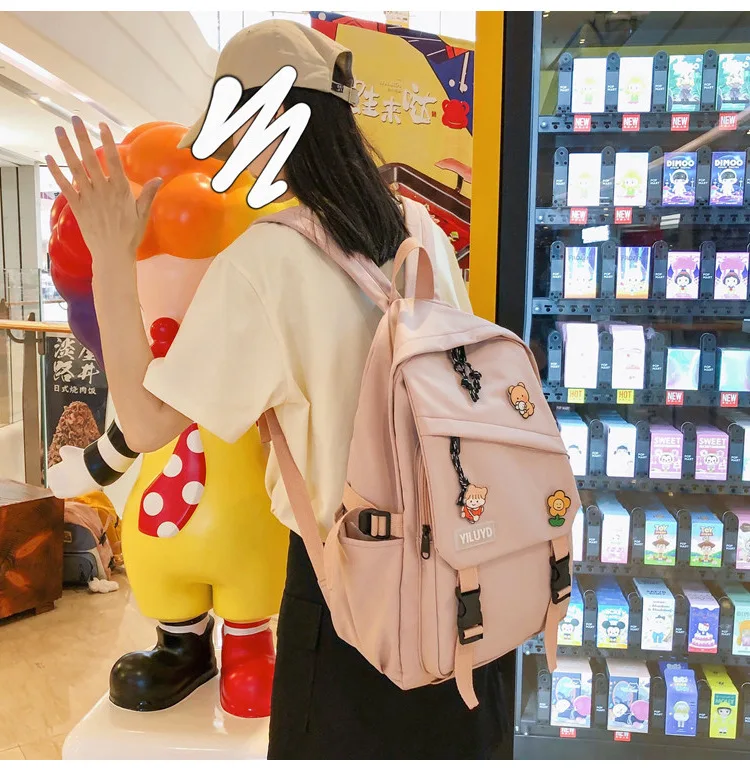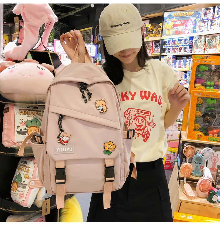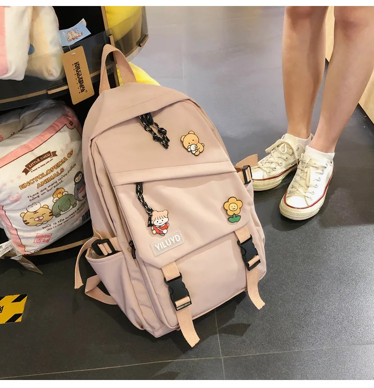 New Backpack Women Multi Pocket Women Students Panda Badges Backpack School Bag Teenage Shoulder Travel Bag Female Backpacks