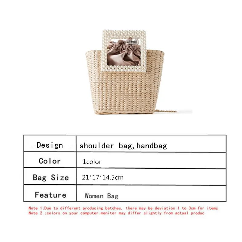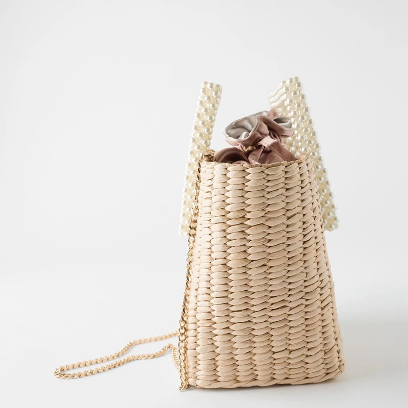 New Bohemian Bag with Pearl Ladies Hand Bags Straw Basket Tote Crossbody Messenger Bag for Womens Handbags and Purses