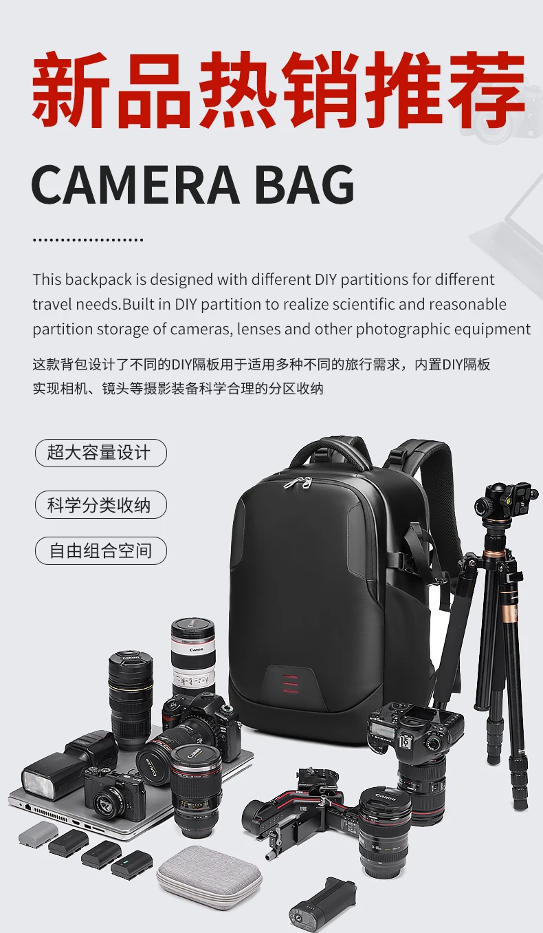 New Camera Backpack Waterproof Camera Bag Professional Outdoor Digital Dslr Bag Backpack For Canon Nikon SLR Lens Tripod Bag