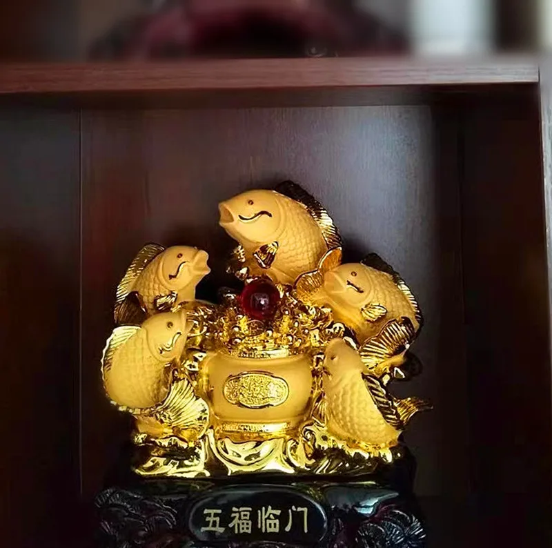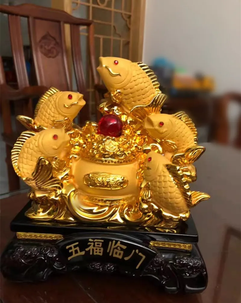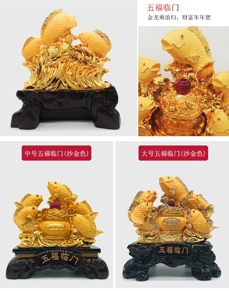 New carp set out to attract luck feng shui fish resin gold cornucopia handicraft home decor fish statue decoration maison