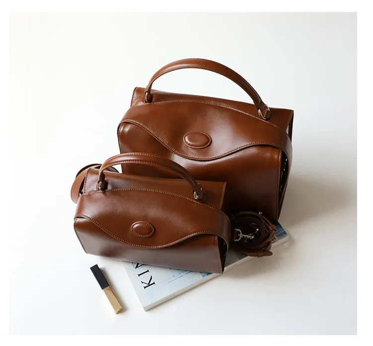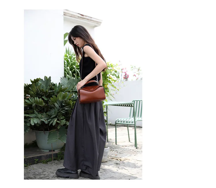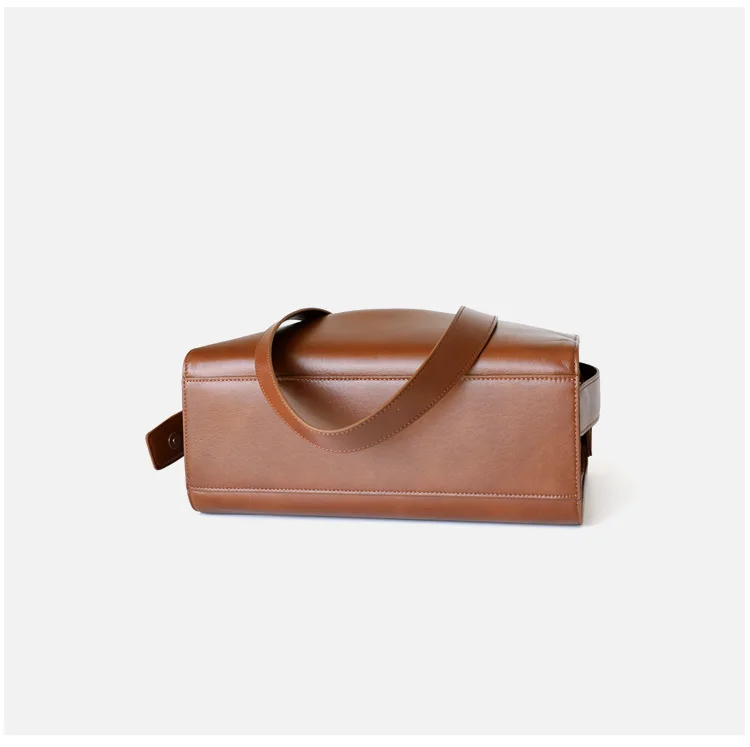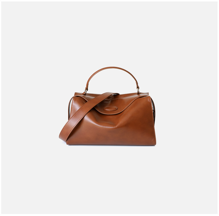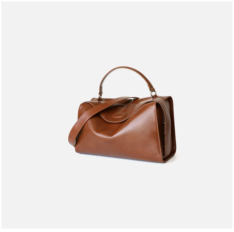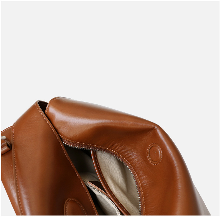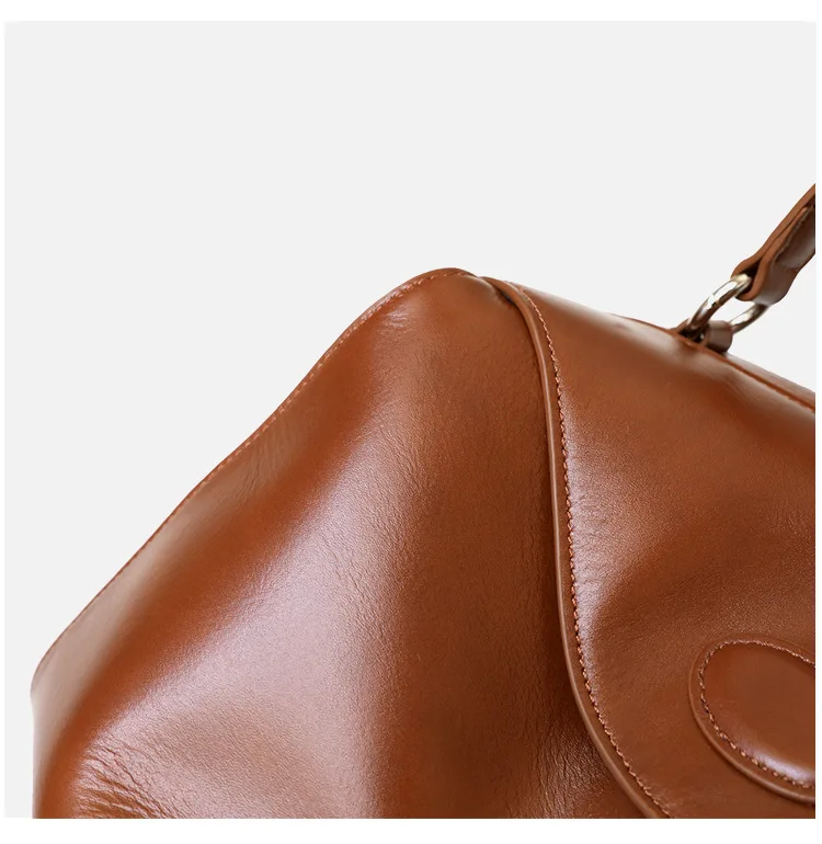 New Cowhide Boston Bag Women's One Shoulder Crossbody Pillow Bag Retro Style Handheld Commuter Bag