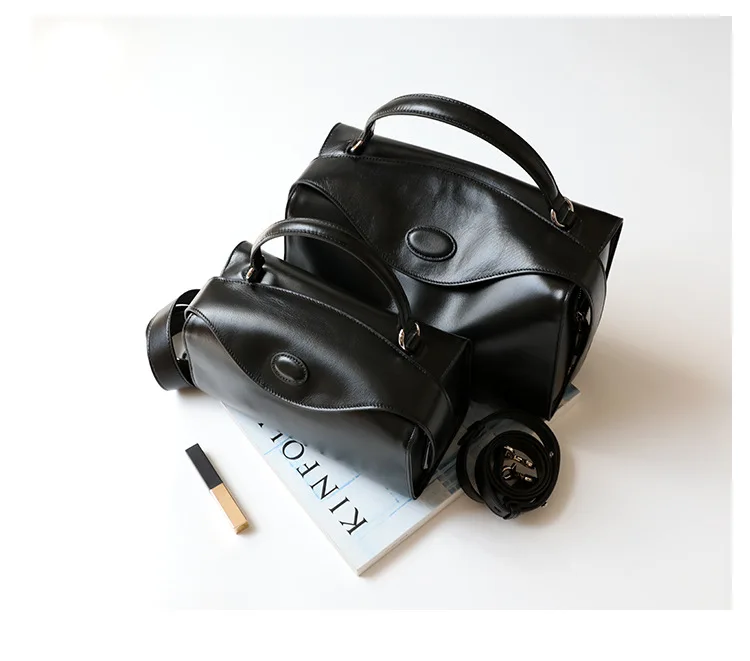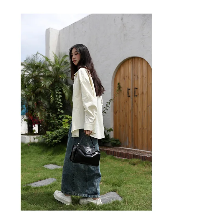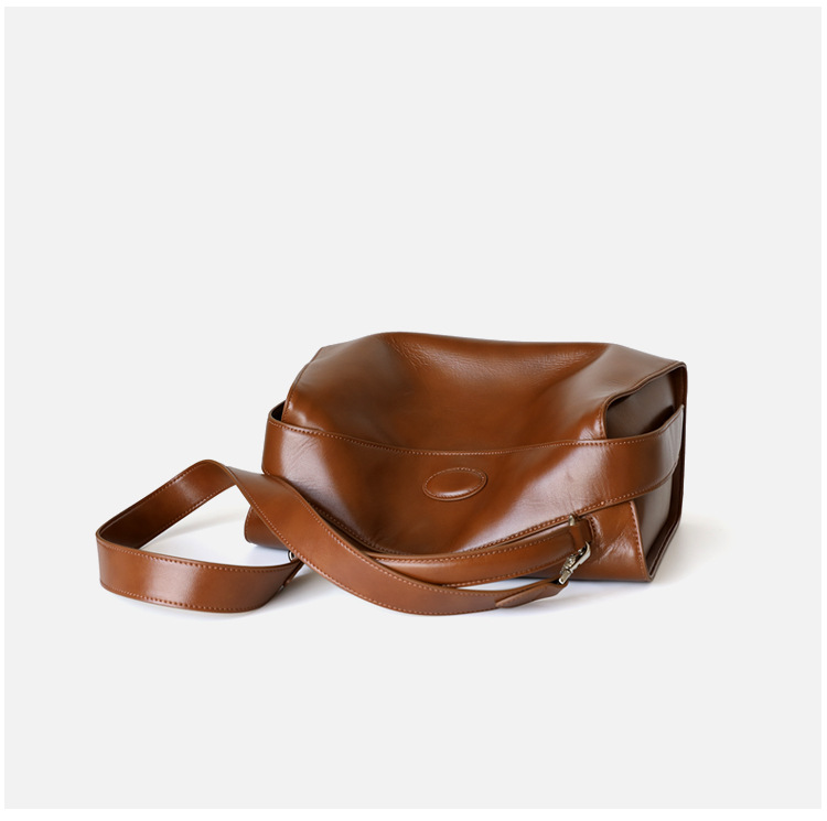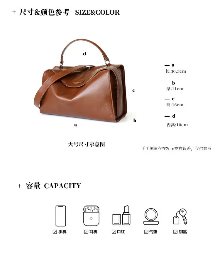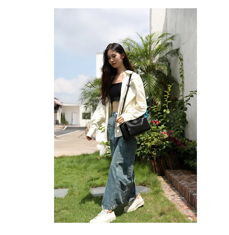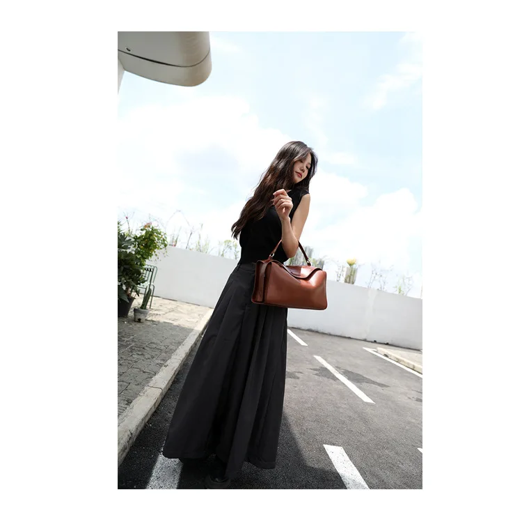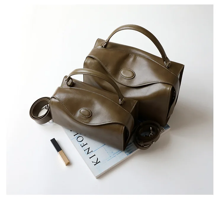 New Cowhide Boston Bag Women's One Shoulder Crossbody Pillow Bag Retro Style Handheld Commuter Bag