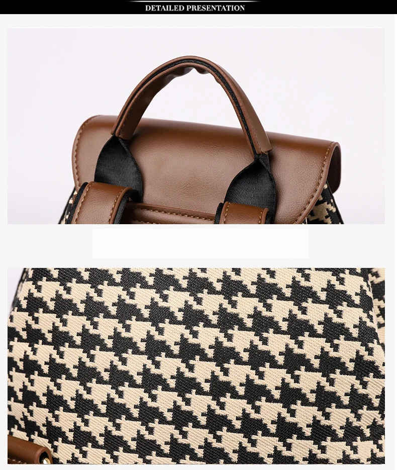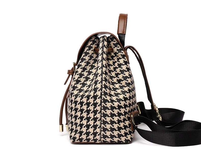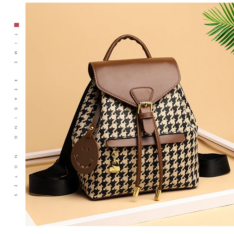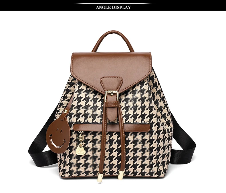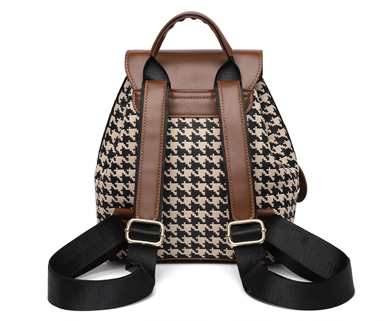 New Fashion Houndstooth Women Backpack High Quality Female Vintage School Bags Travel Bagpack Ladies Bookbag Rucksack