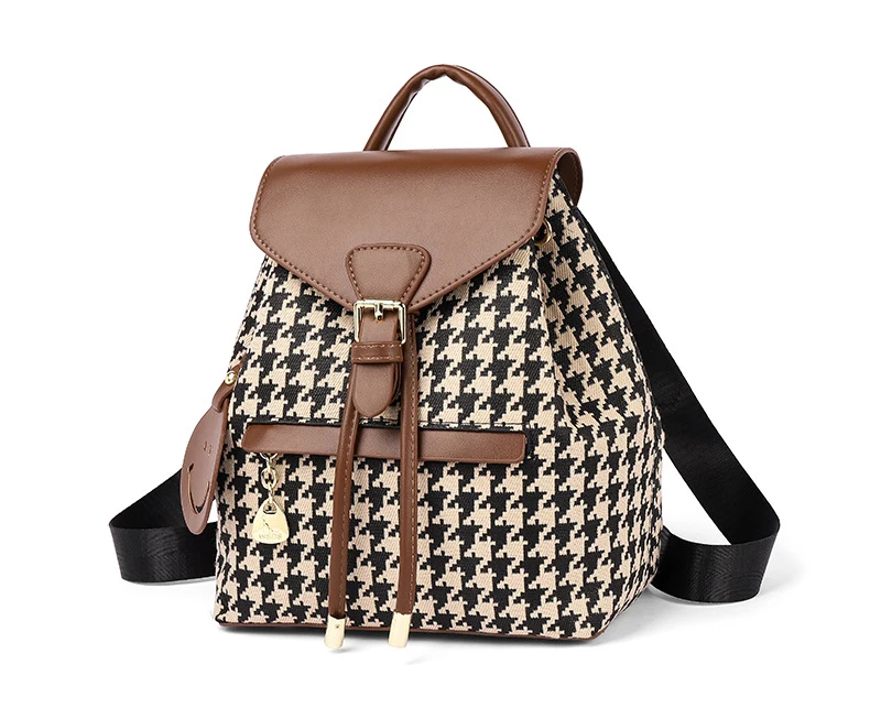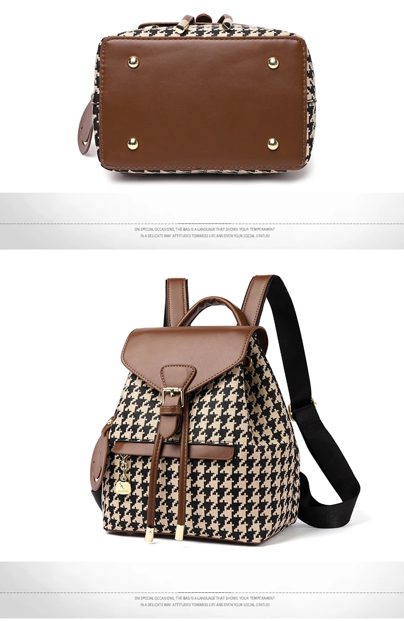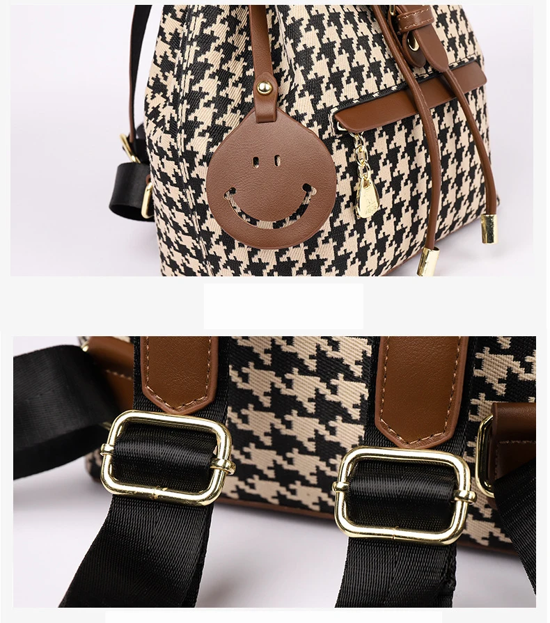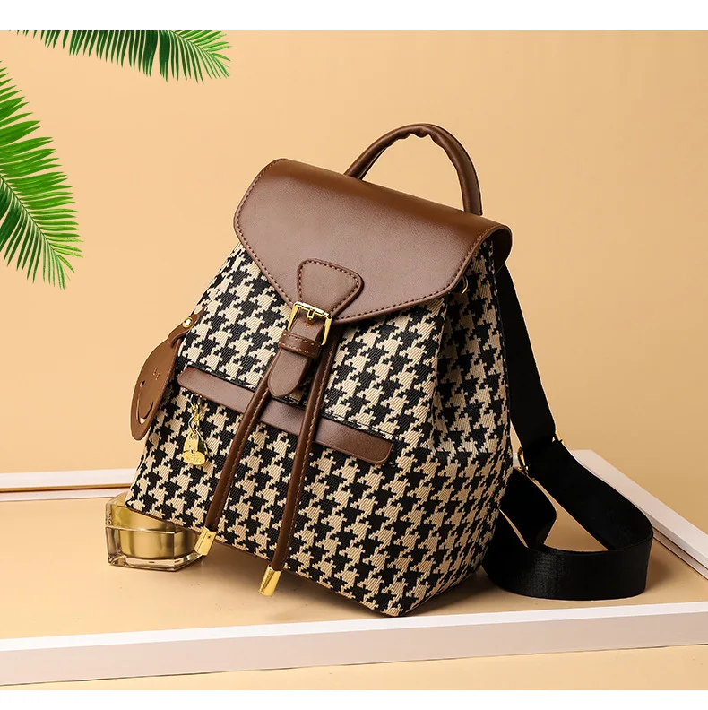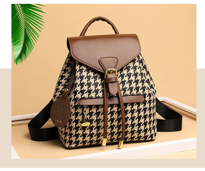 New Fashion Houndstooth Women Backpack High Quality Female Vintage School Bags Travel Bagpack Ladies Bookbag Rucksack
