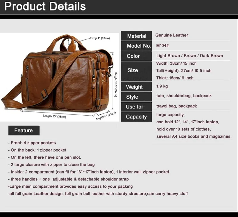 -all full grain Leather design, full grain bull leather with sturdy structure,can carry heavy stuff