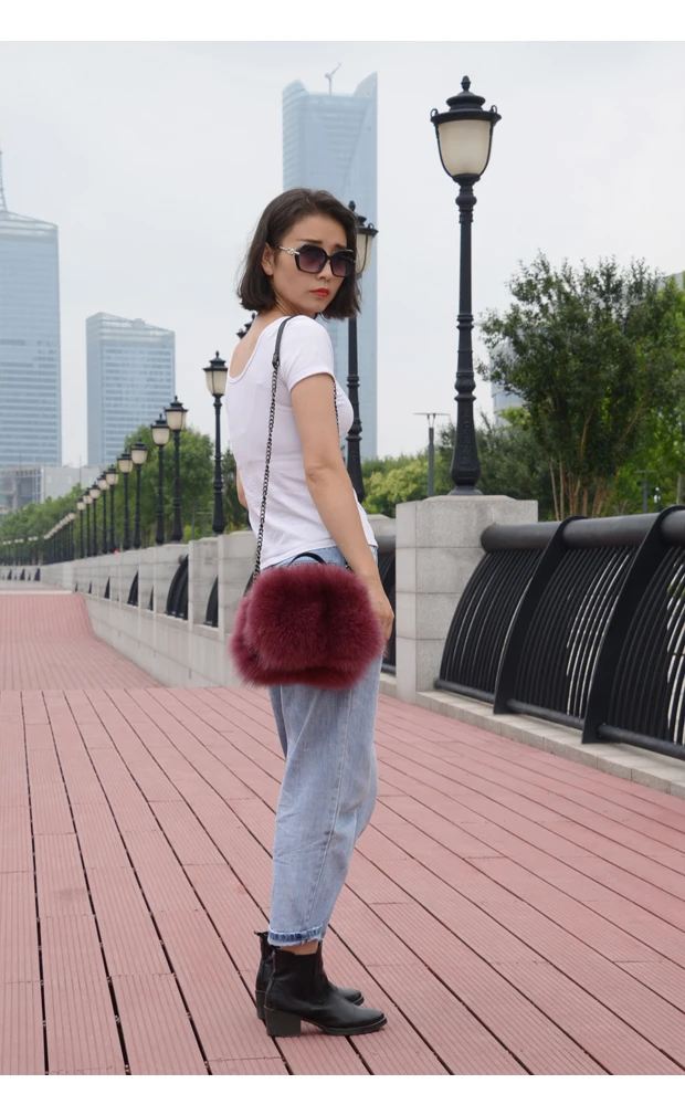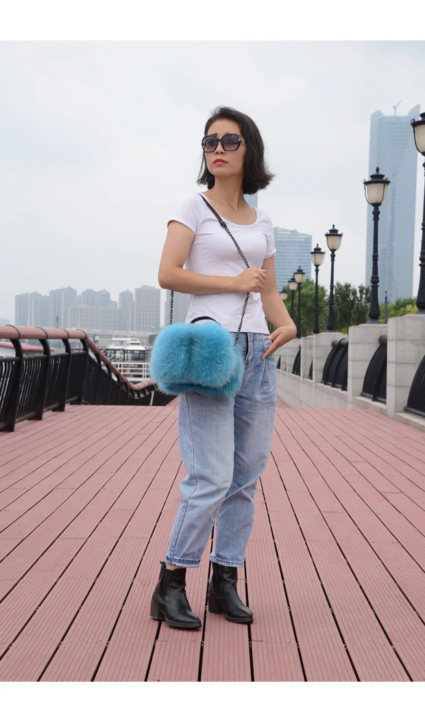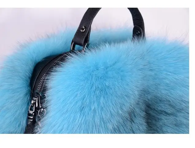 New Genuine Fox Fur Women's Handbag Winter Warm Female Fashion Shoulder banquet Genuine Leather Bag Multicolour Fox Fur Bags
