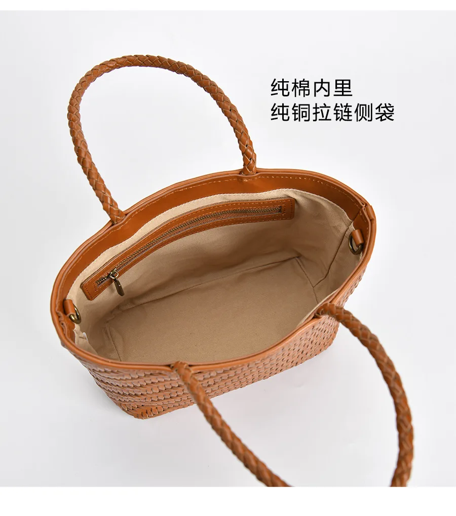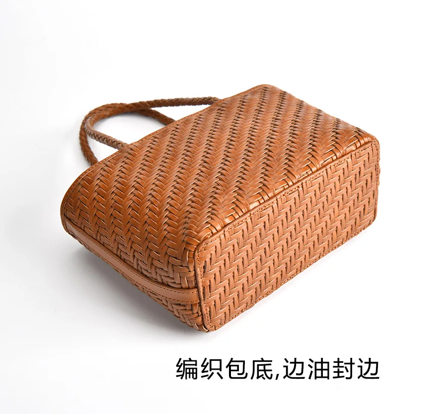 New Genune Leather Weave Hand Bags Tote Top Quality Women FranceBasket Shopping Bags Beach Hobos Handbag