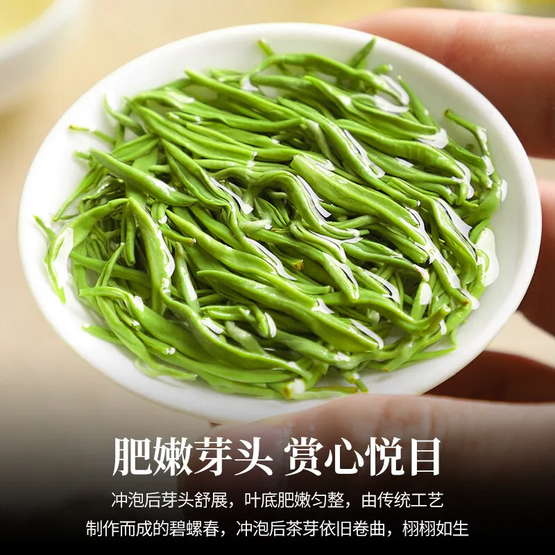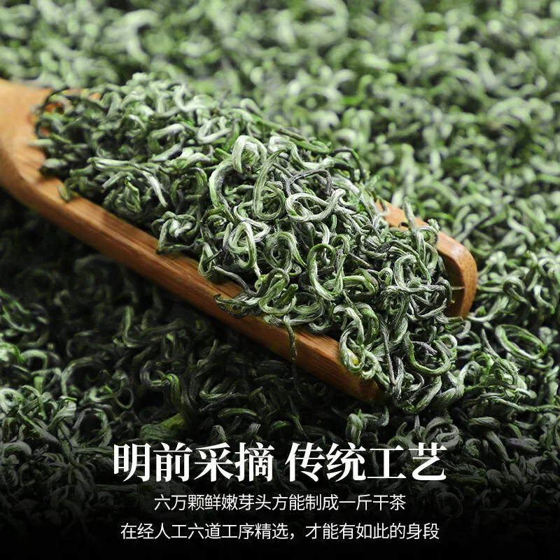2023 New Green Tea Tongting Bi Luo Chun Chinese Green Teea Biluochun Health Green FoodBiluochun is one of China`s ten famous teas and one of China`s ten famous teas. It belongs to the category of green tea and has a history of more than 1,000 years. After this tea is brewed, the white clouds in the cup are tumbling and the fragrance strikes. This is China`s famous tea. It`s interesting to taste high-grade Biluochun. When drinking, use a clean and transparent glass, first boil water and then put tea. Or brew with boiling water at 70 ~ 80 ° C. When Biluochun is put into the cup, the tea sinks to the bottom. In an instant, "white clouds roll and snowflakes fly", and the fragrance strikes people. When tea is in the cup, you can enjoy three wonders like snow spray beads, spring dyeing the bottom of the cup and Green Cr