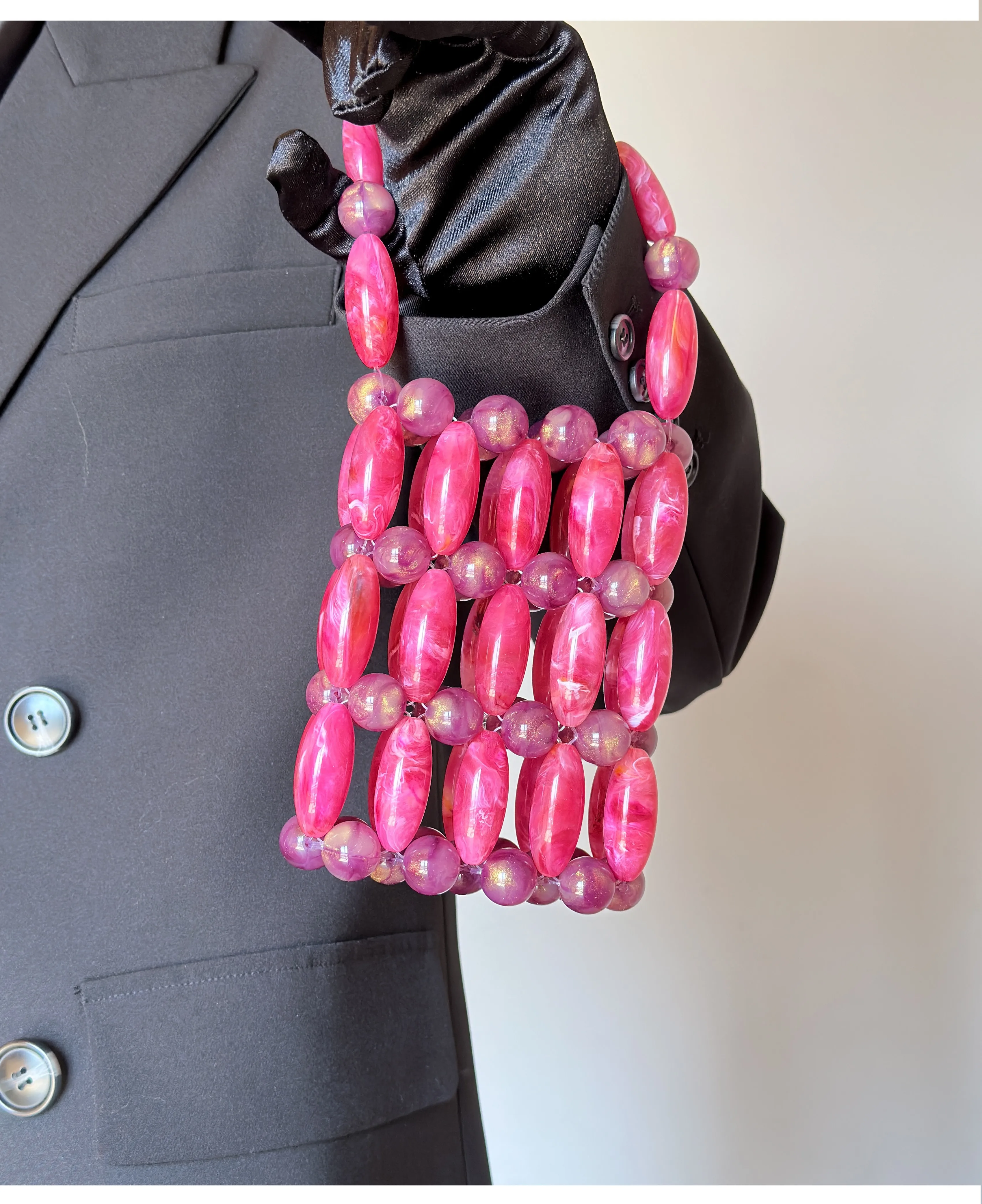 NEW Handmade Bead Bag Hand-Woven Celebrity Handbags Designer Ladies Party Bag Beading Top-handle Mini Purses