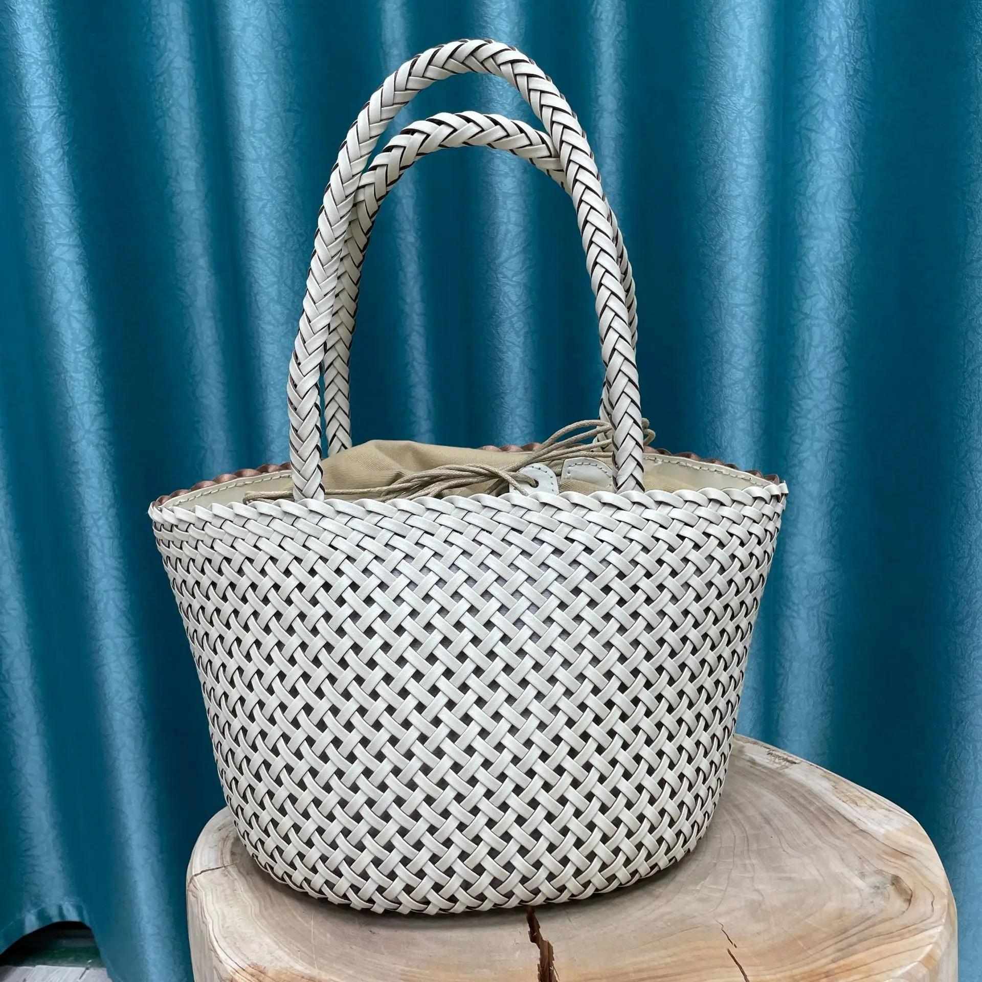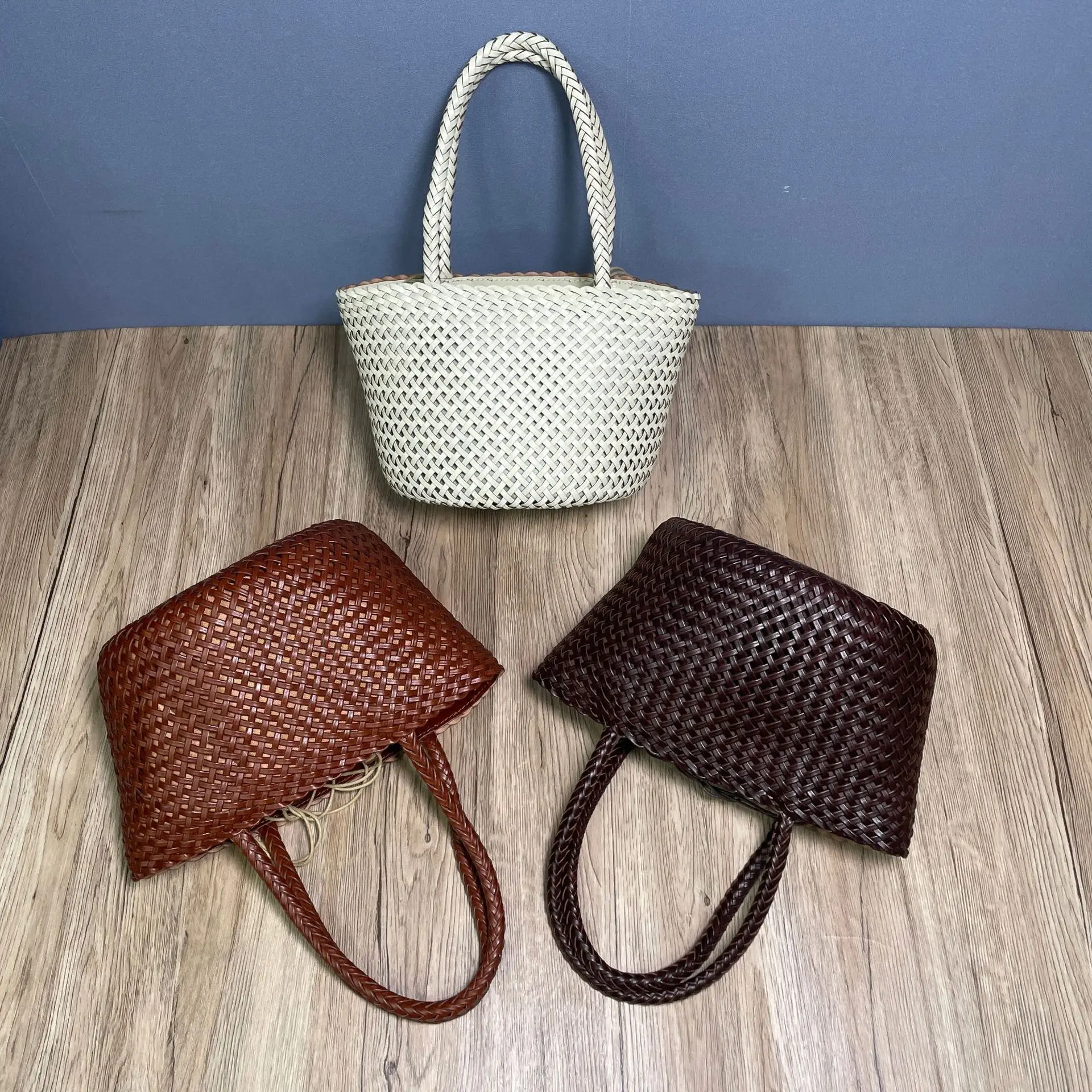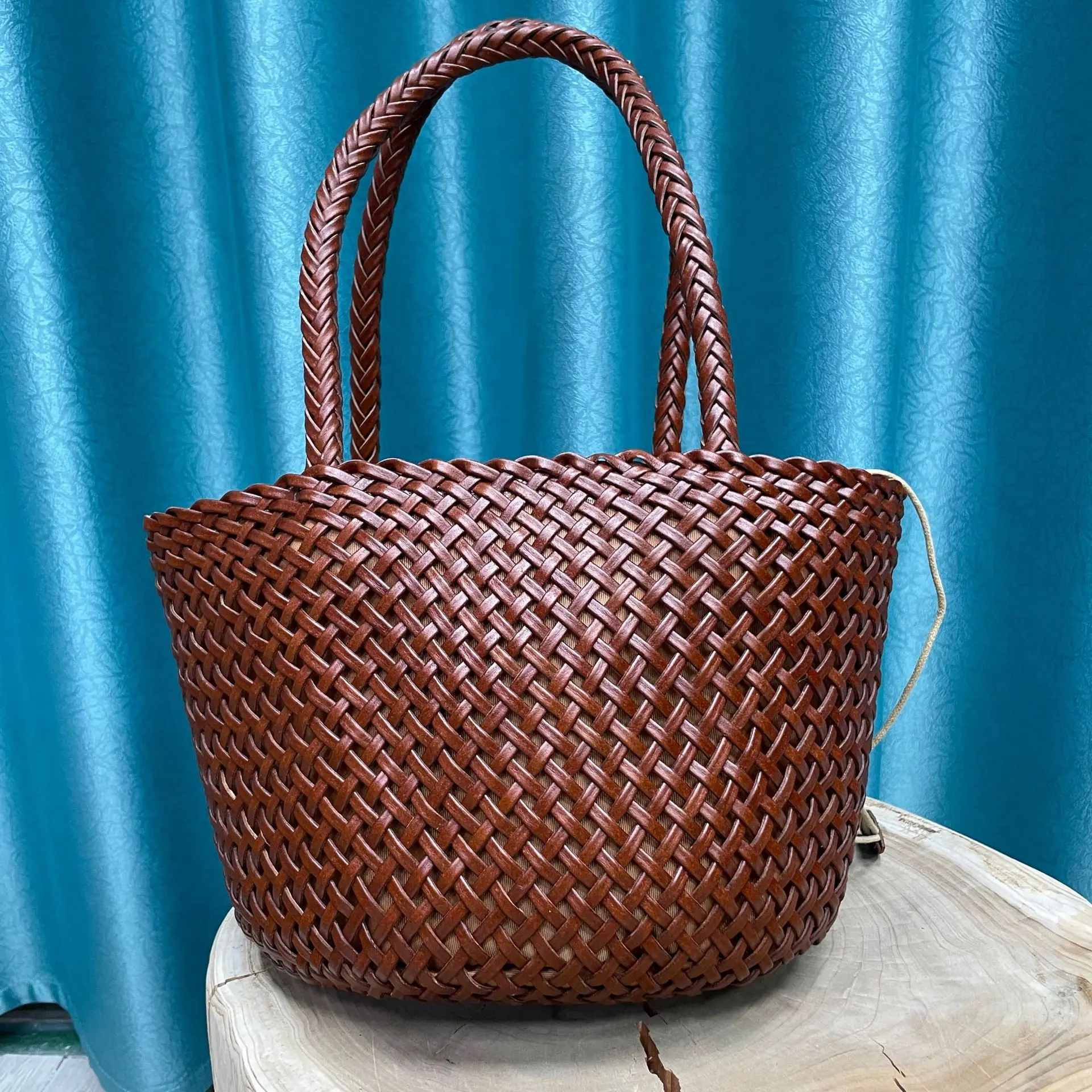 New luxury Japanese-style retro vegetable tanned cowhide hand-woven hollow small barrel bag head layer cowhide shoulder messenger bag