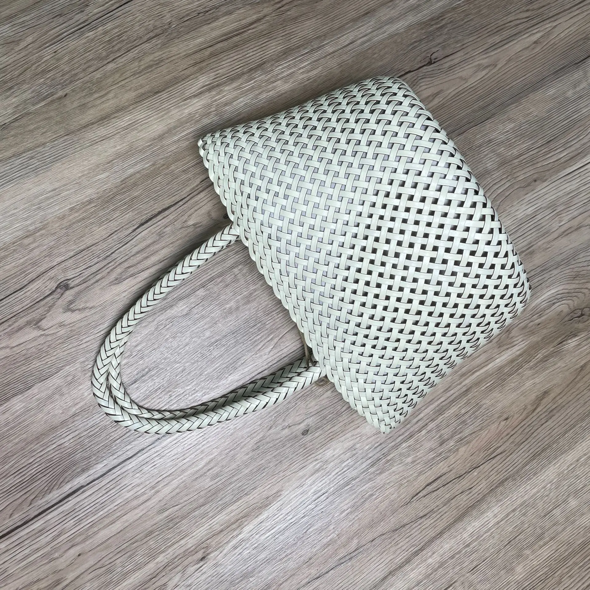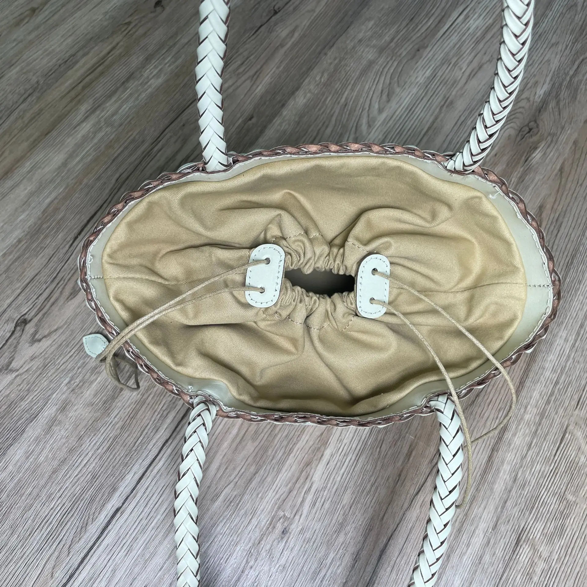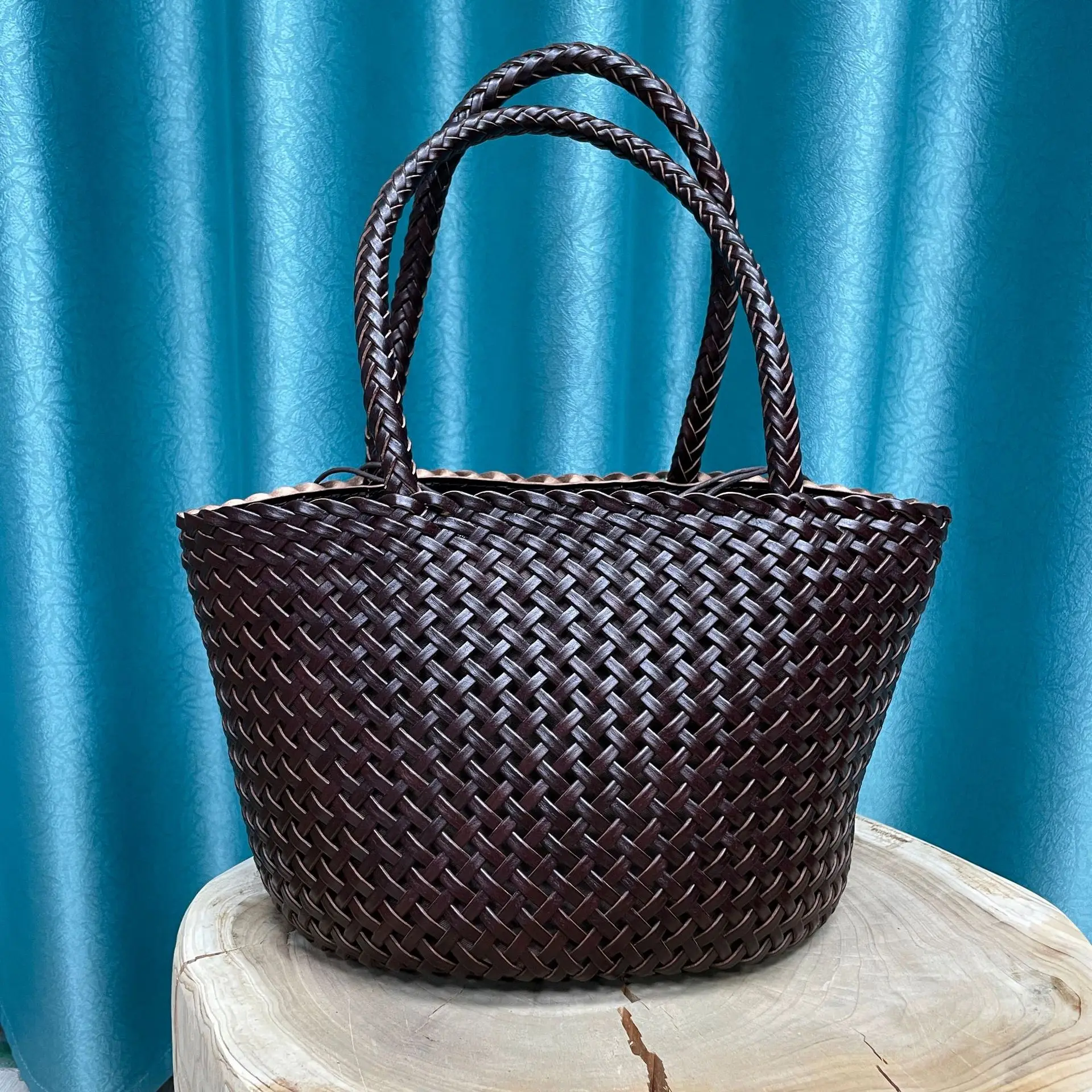 New luxury Japanese-style retro vegetable tanned cowhide hand-woven hollow small barrel bag head layer cowhide shoulder messenger bag
