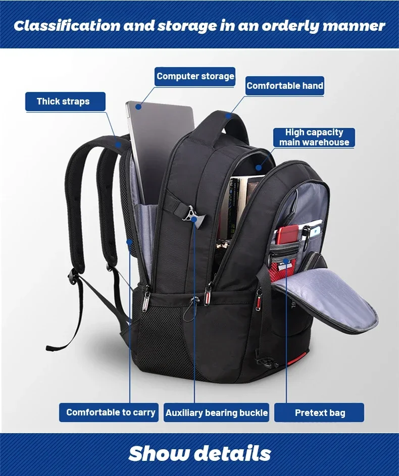New Men's Business Shoulder Bag Expandable USB Port Multifunctional Backpack Waterproof Computer Bag Travel Shoulder Bag mochila