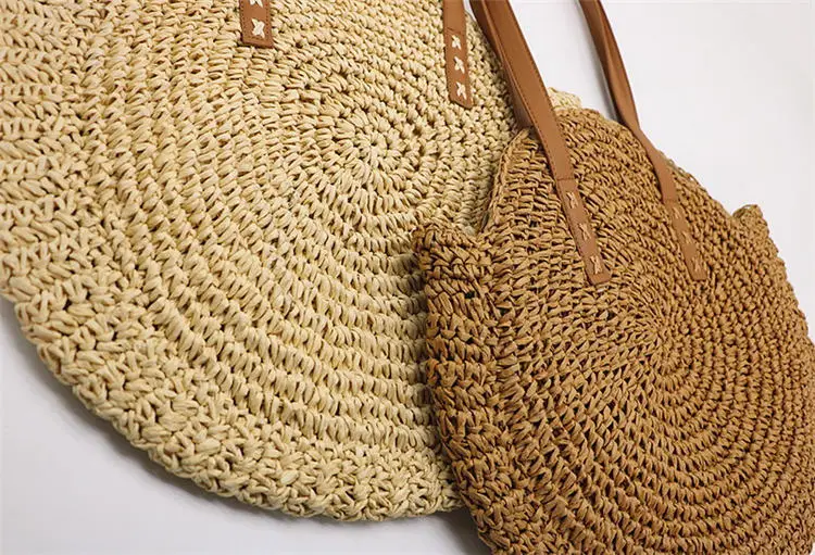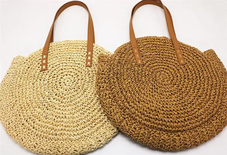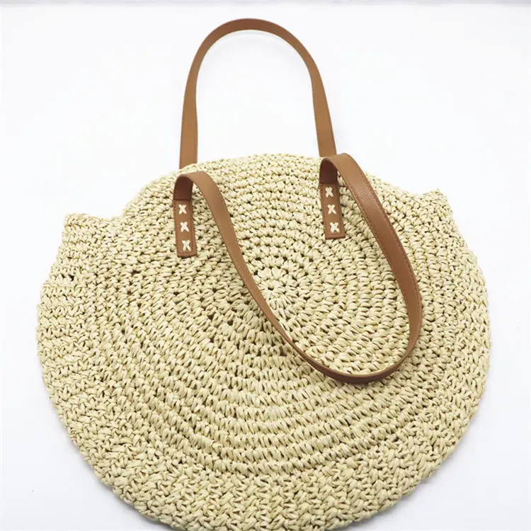 New Natural Ladies Tote large handbag hand-woven big straw bag round popularity Women Shoulder beach holiday bag