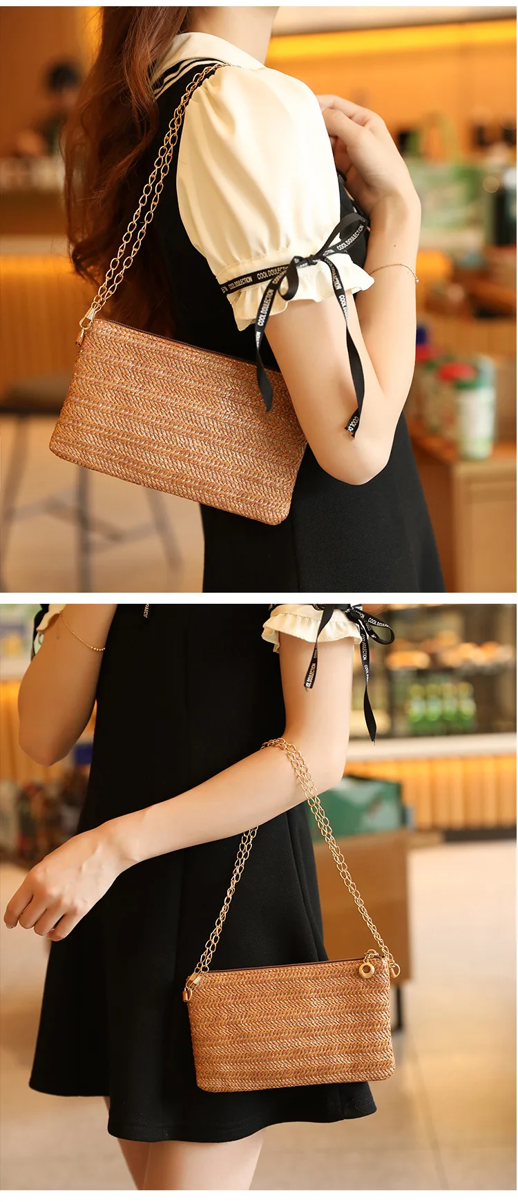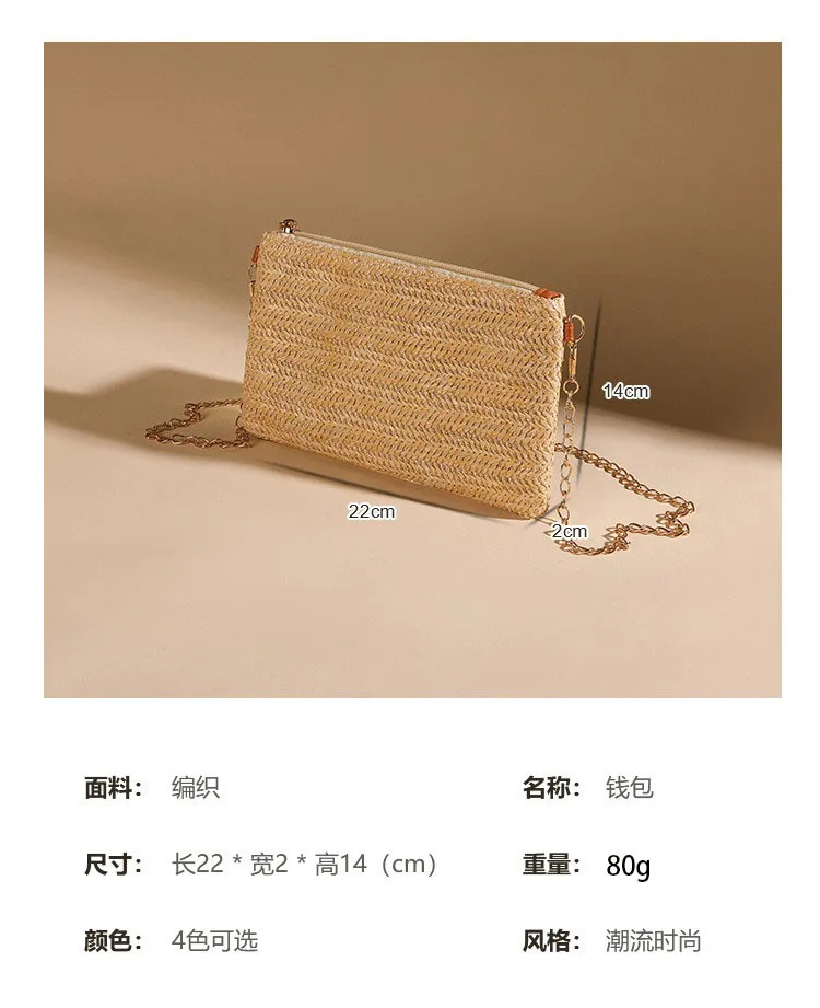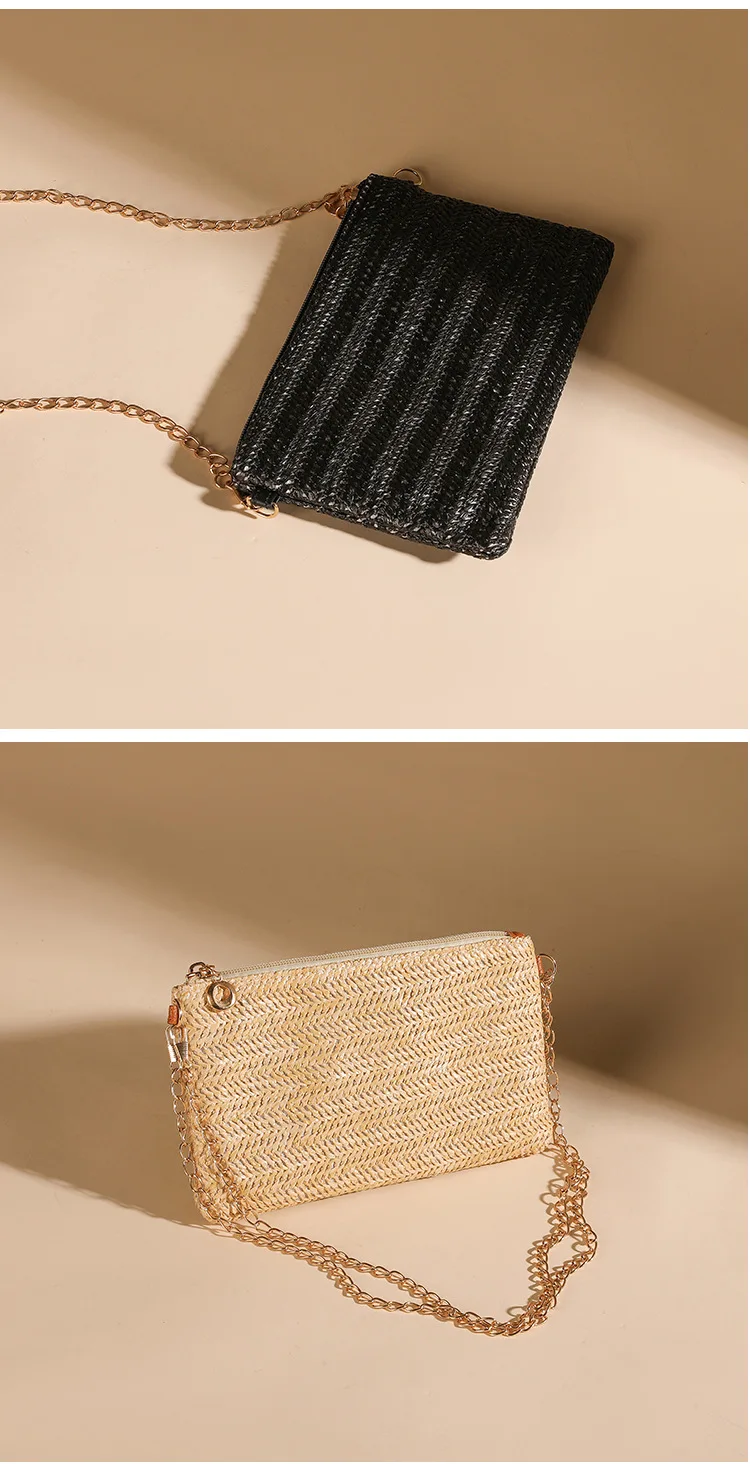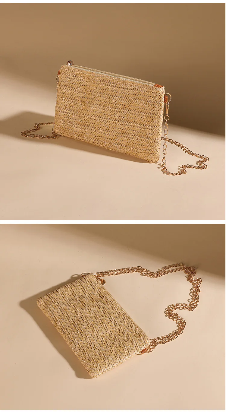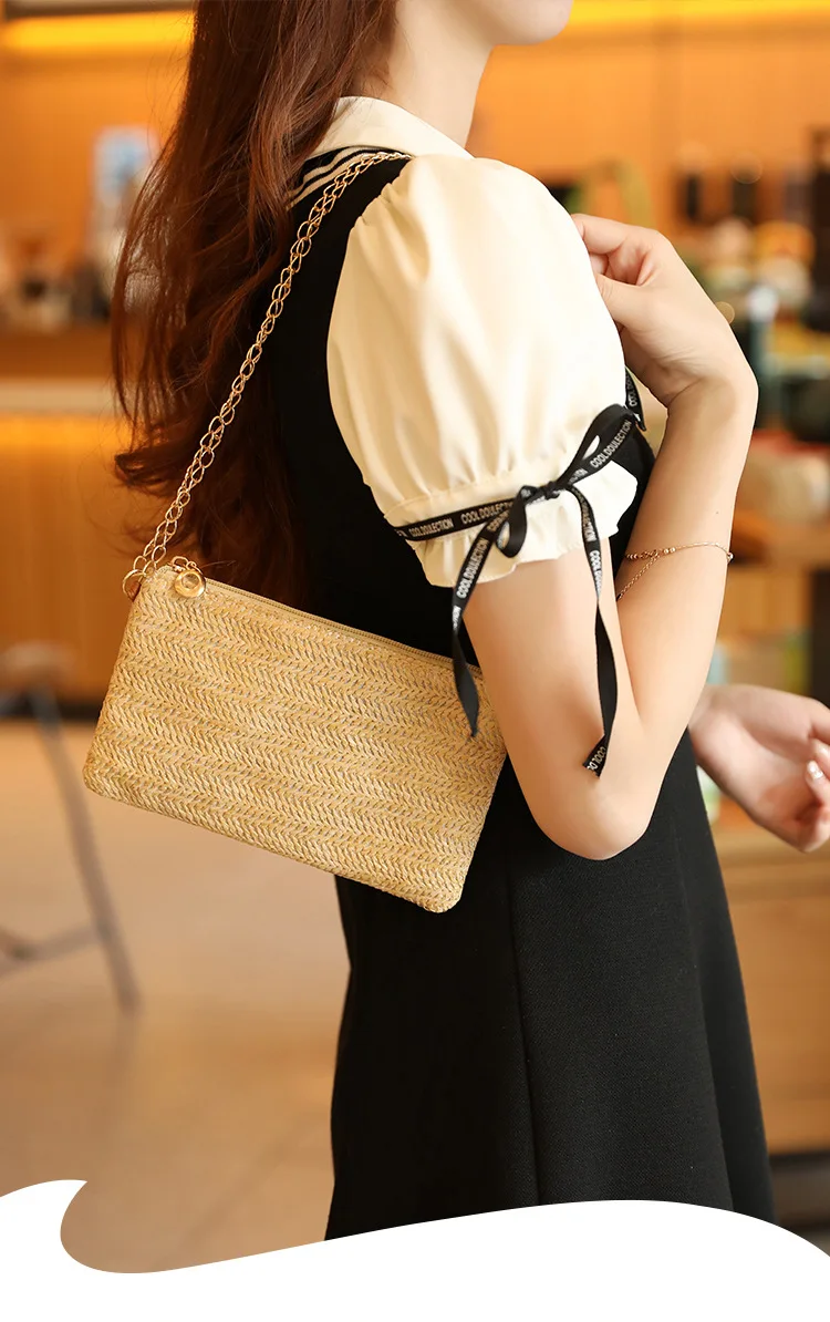 New Straw Shoulder Bag Women 2024 Woven Crossbody Bag With Chain Strap Casual Beach Bag Handbag for girls