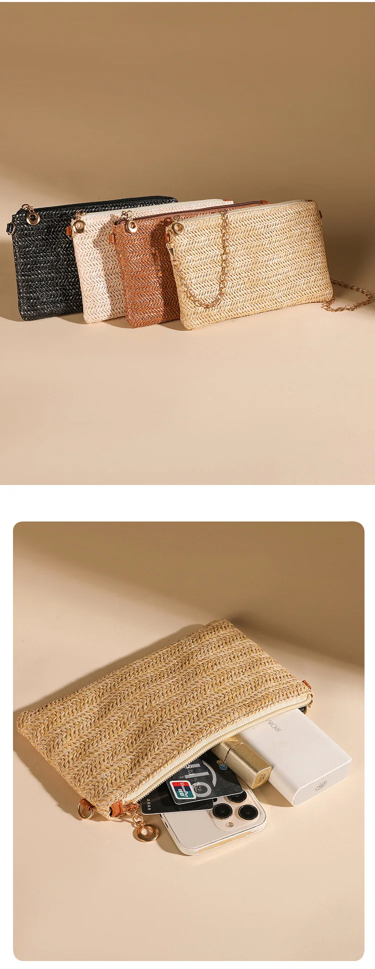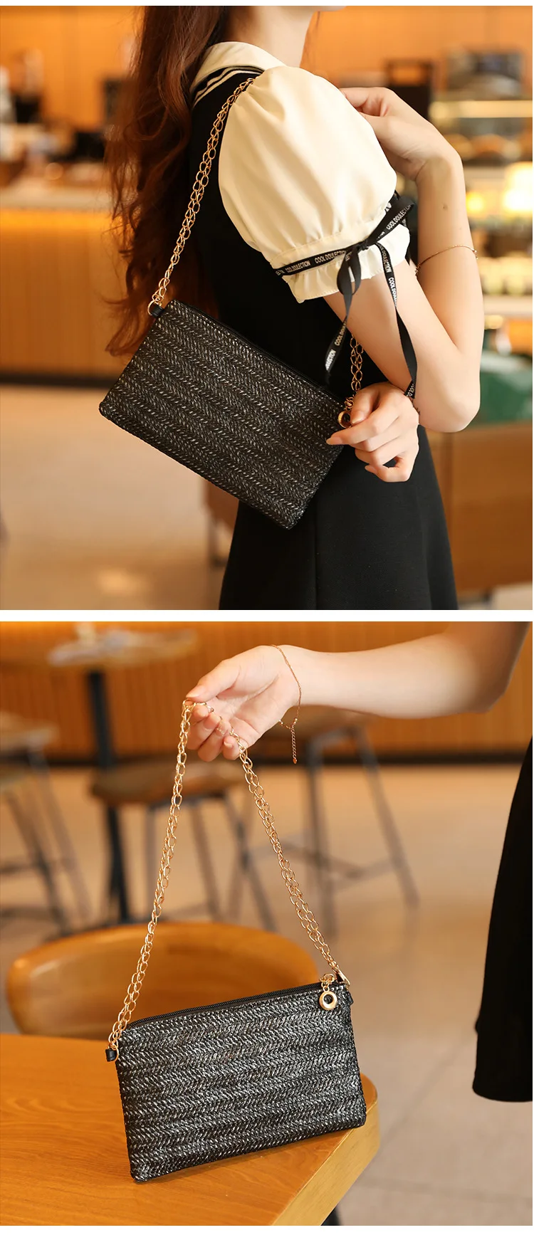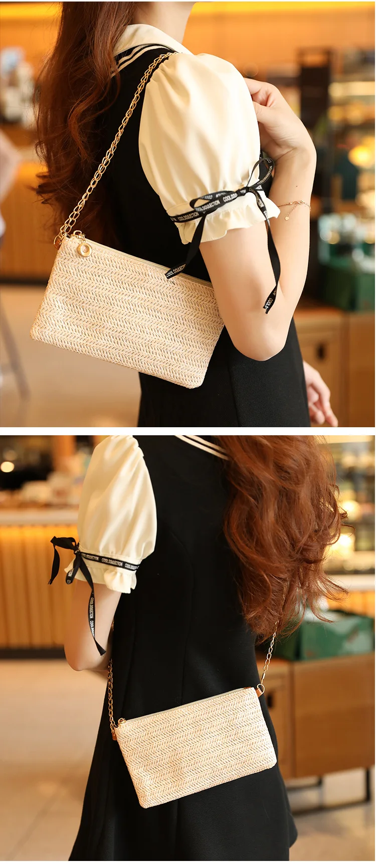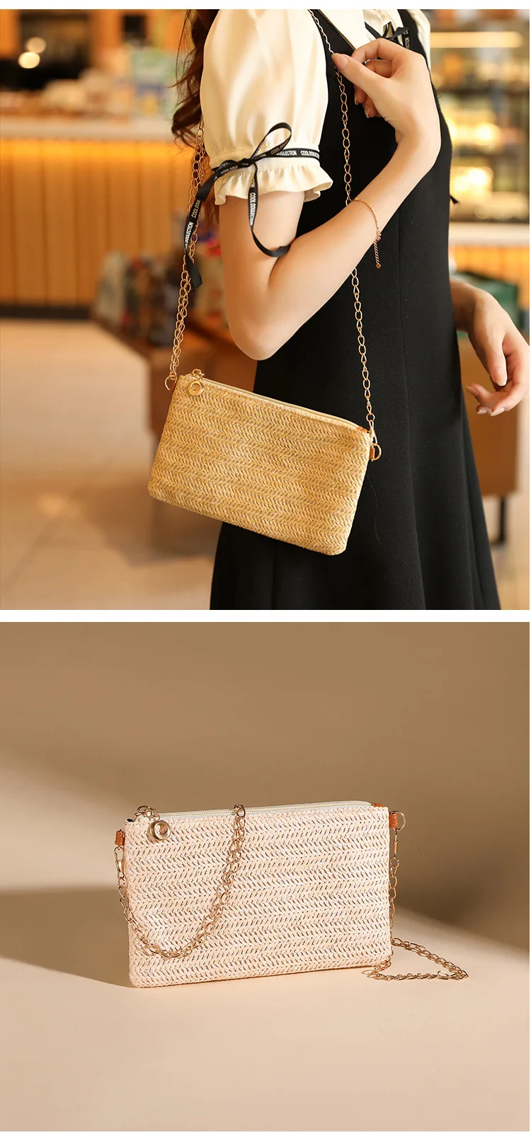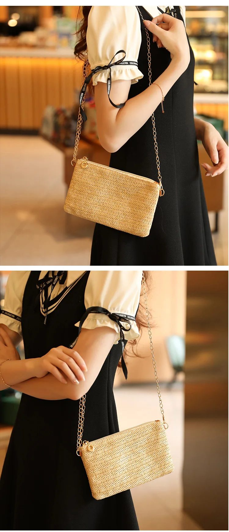 New Straw Shoulder Bag Women 2024 Woven Crossbody Bag With Chain Strap Casual Beach Bag Handbag for girls