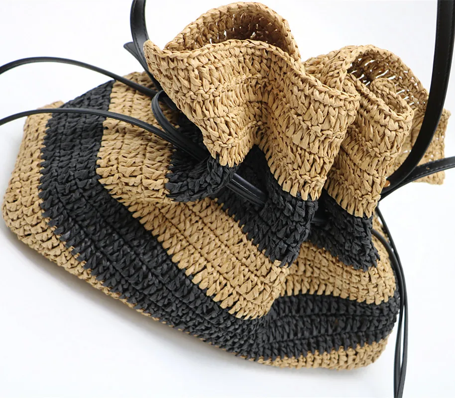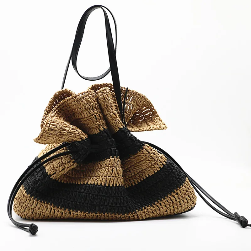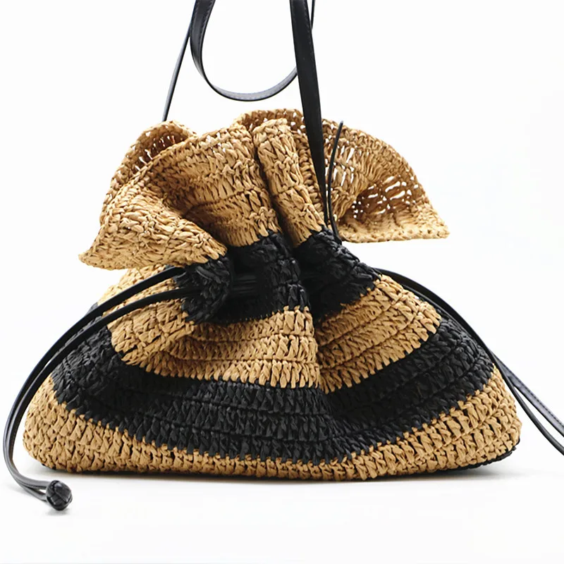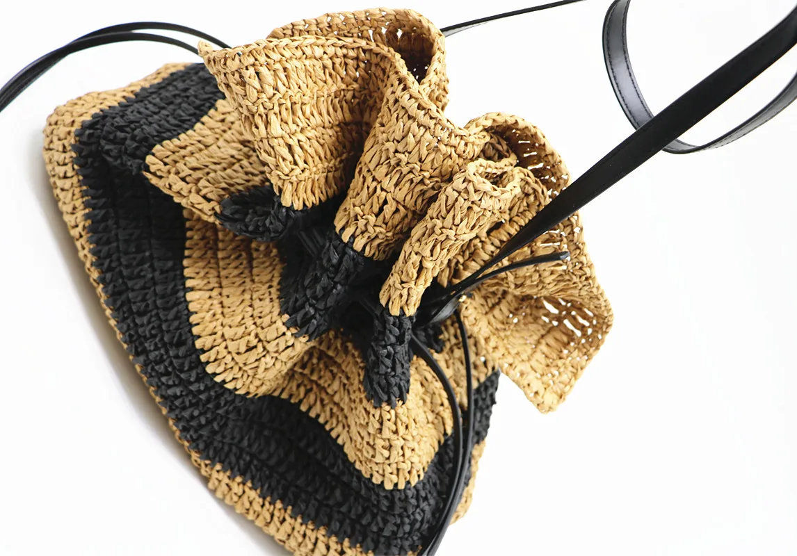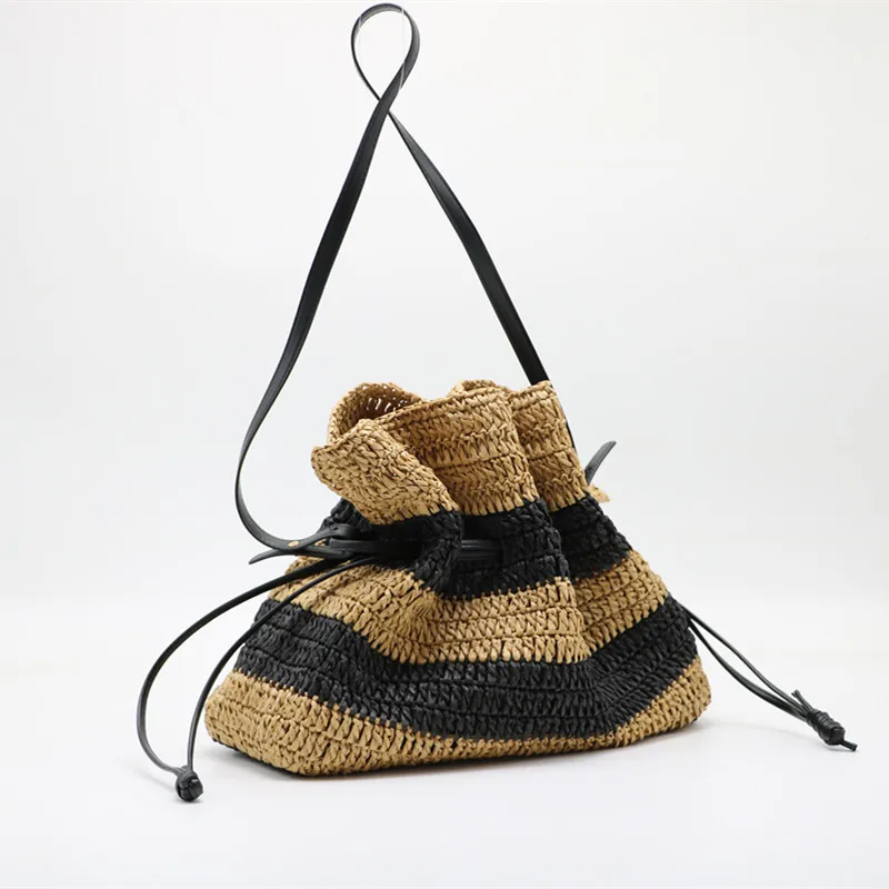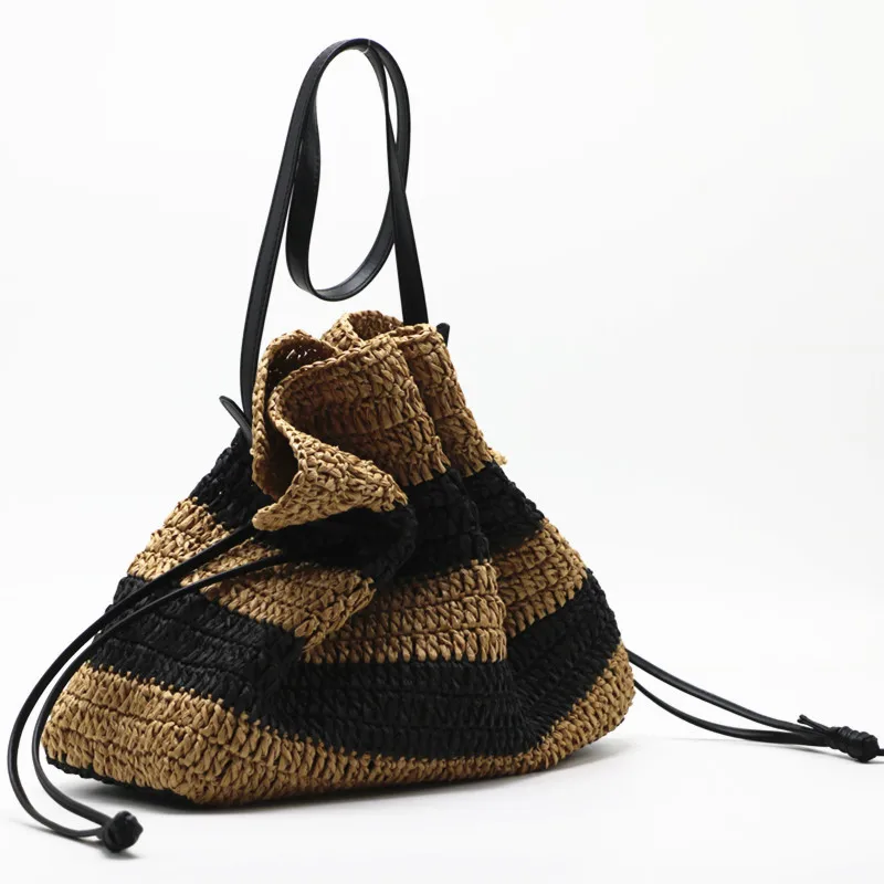 New striped crochet bag single-shoulder Tote straw bag closed women's bag