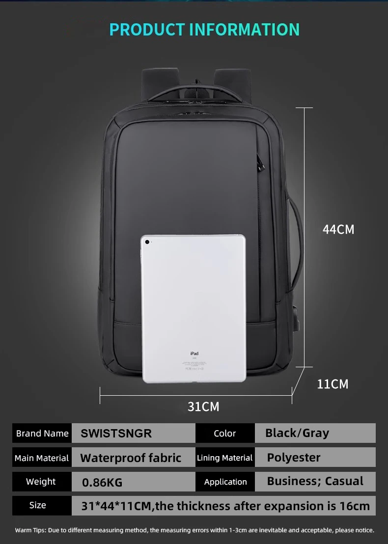 New Travel Backpack Men Waterproof Expandable USB Bag 15.6 Inch Laptop Fashion Business Bacpack Large Capacity Male Mochila