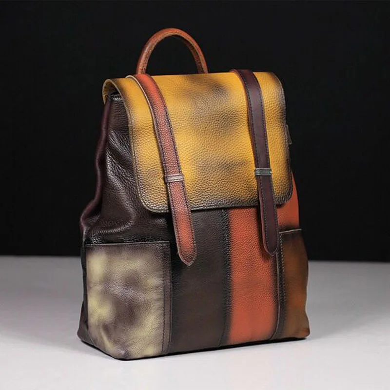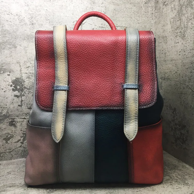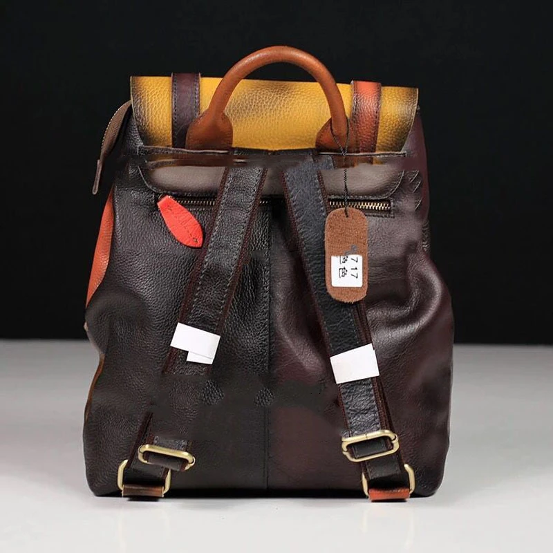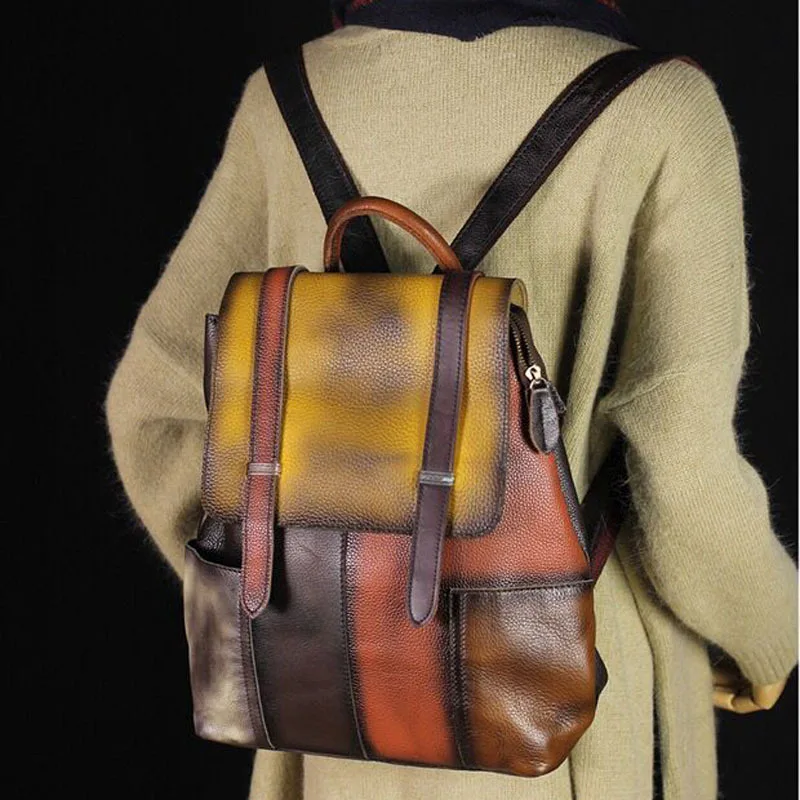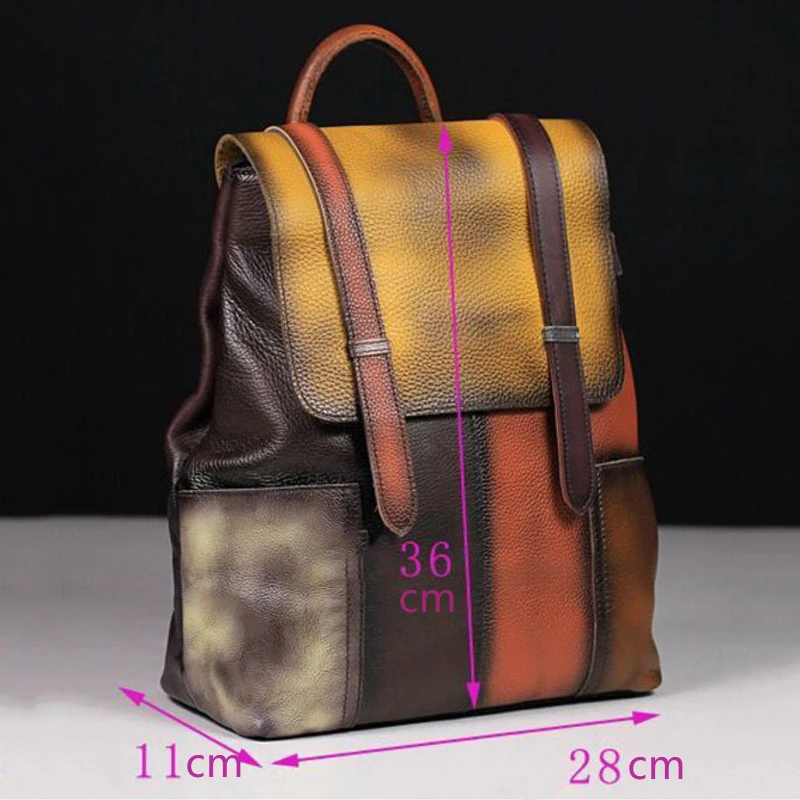 New Vintage Random Colour Backpack Women's Soft Genuine Leather Handbag Girl Casual Cowhide High Quality School Bag