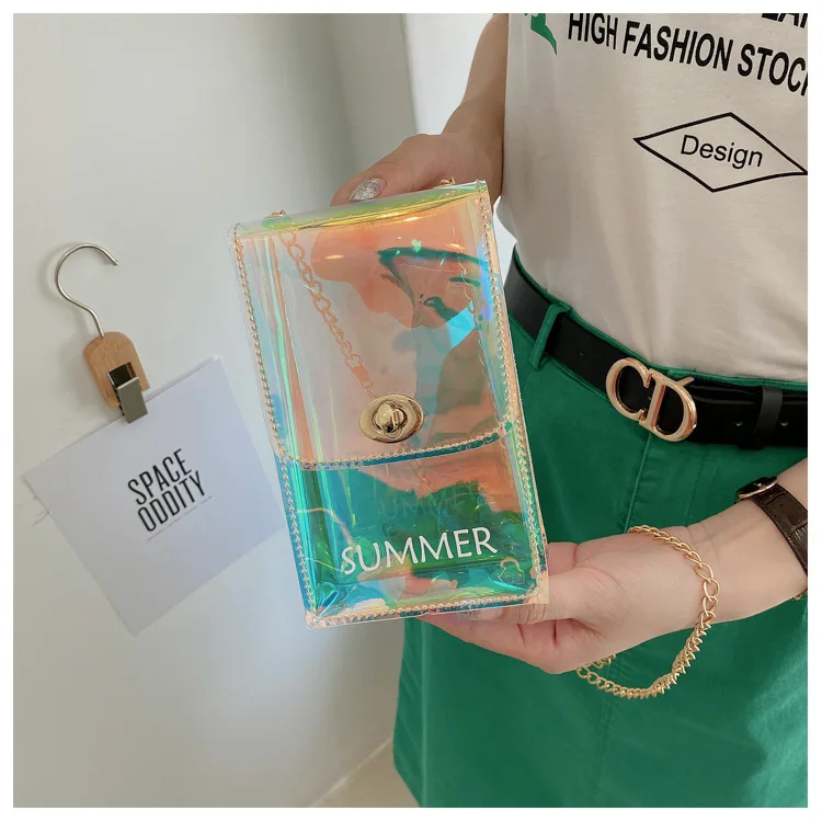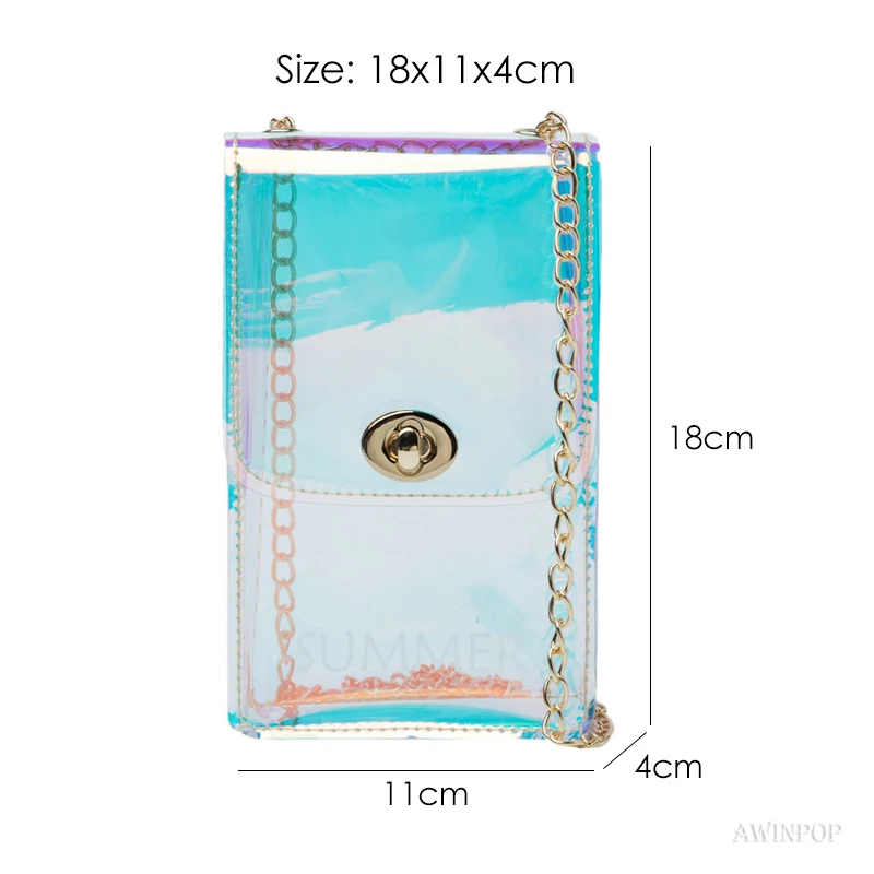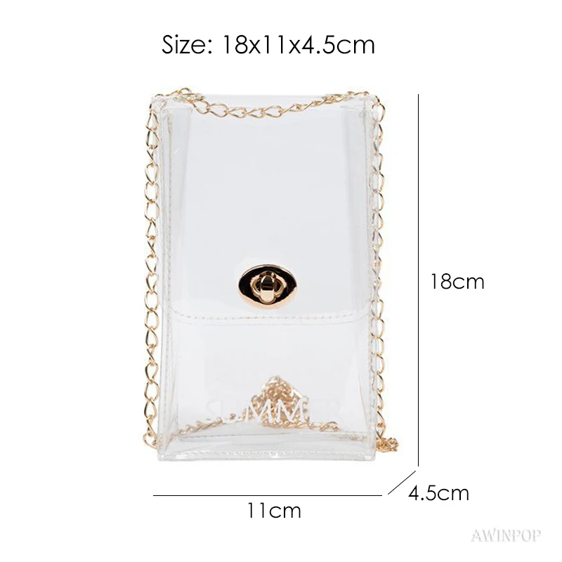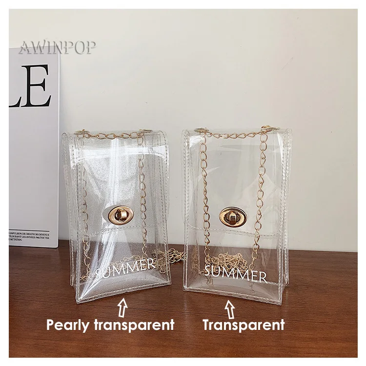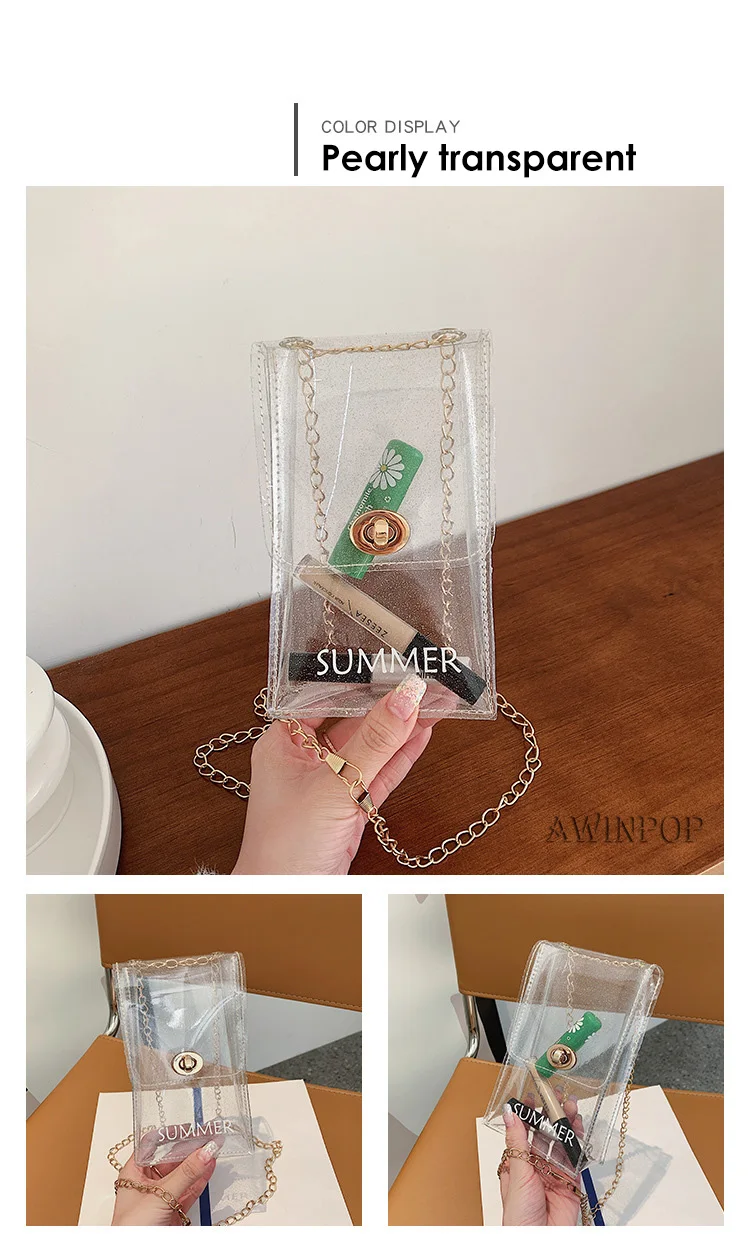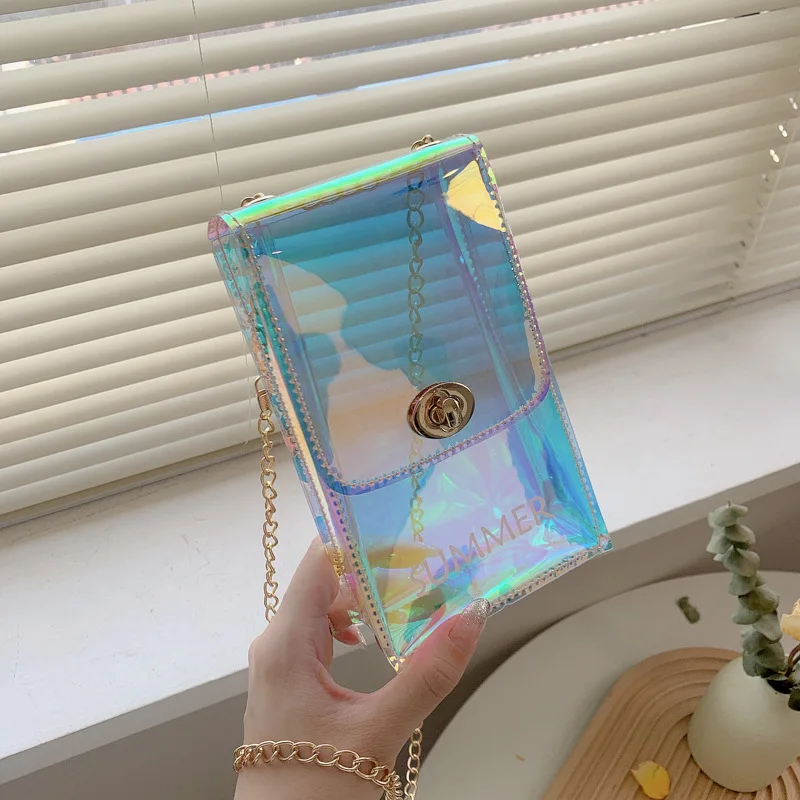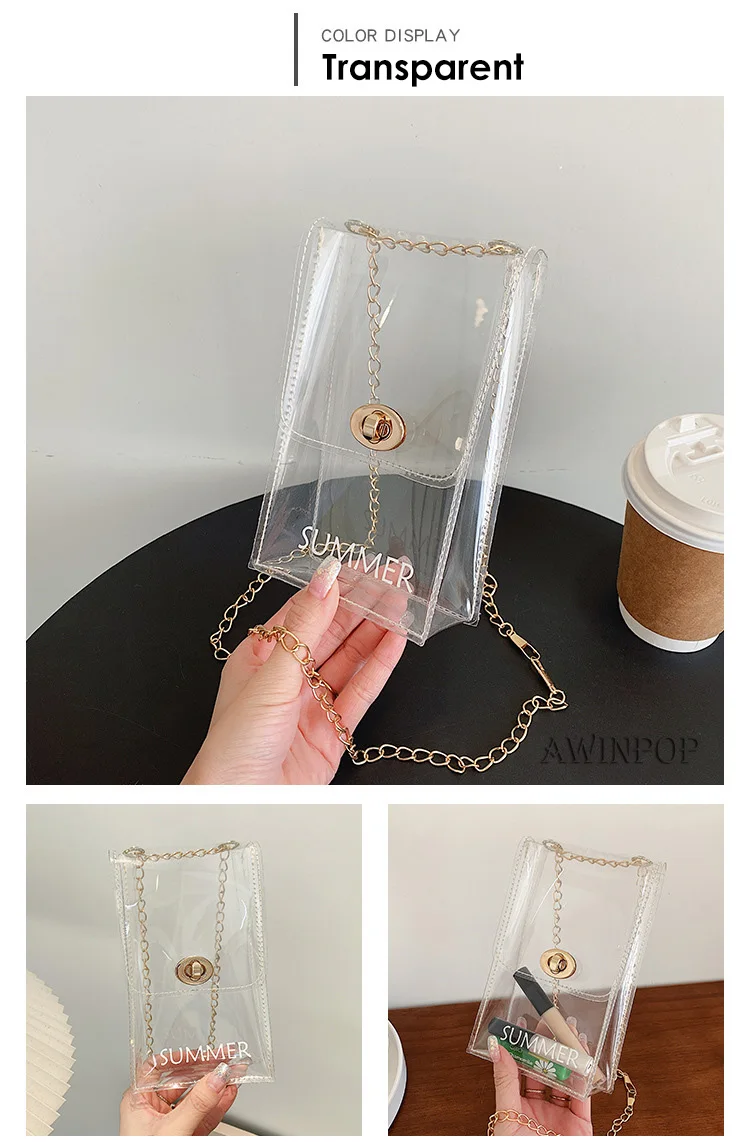 New Women Mini Chain Messenger Bags Transparent PVC Crossbody Bag Lady Beach Bag for Girls Mobile Phone Purses and Handbags
