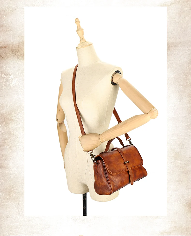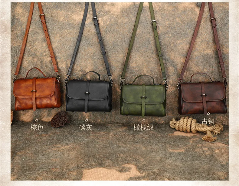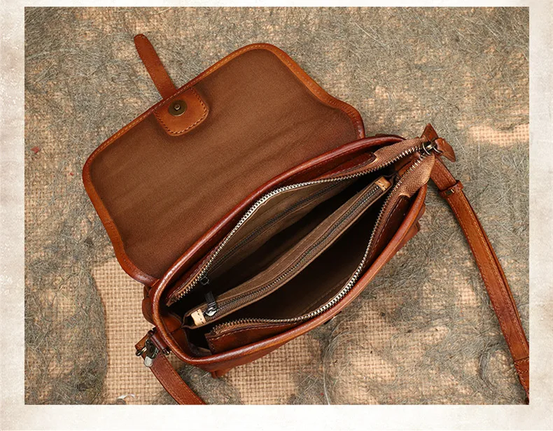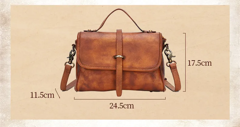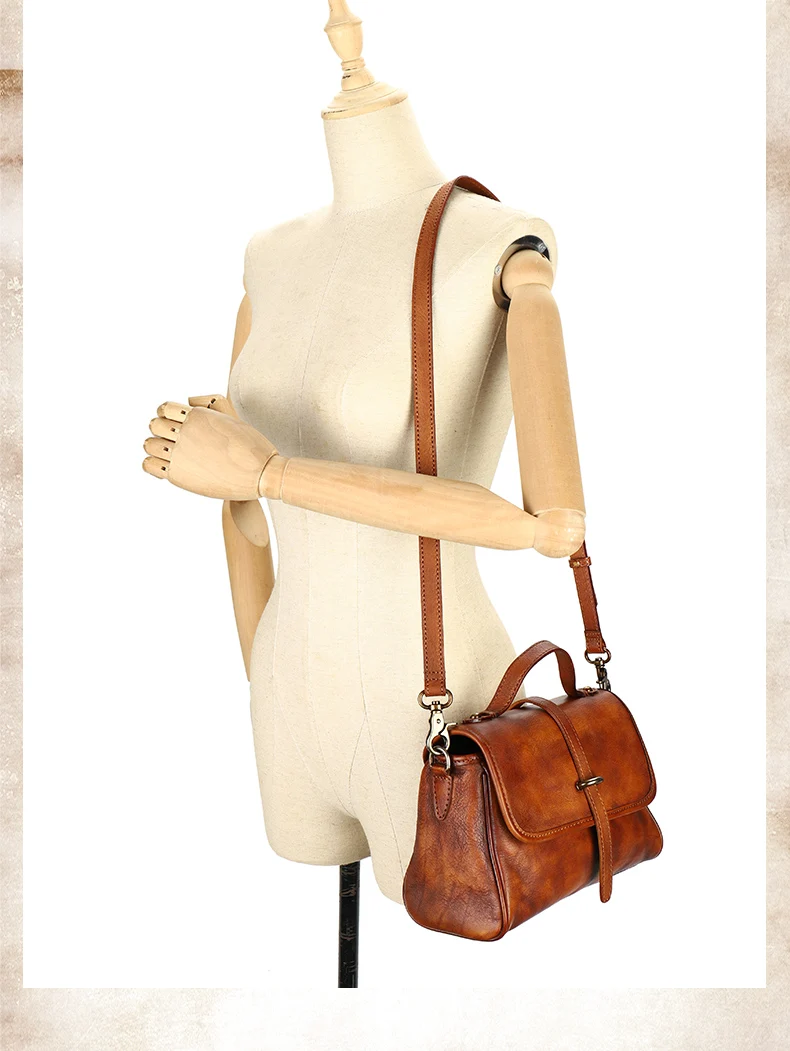 Niche Retro First Layer Leather One-Shoulder Crossbody Bag Women's Handbags Texture Small Genuine Leather Square Bags