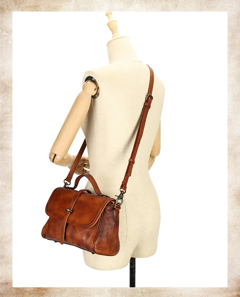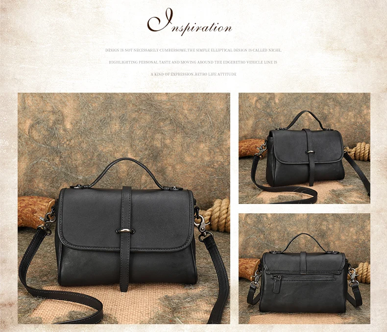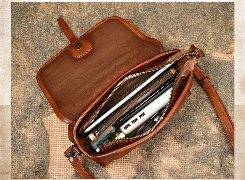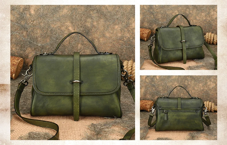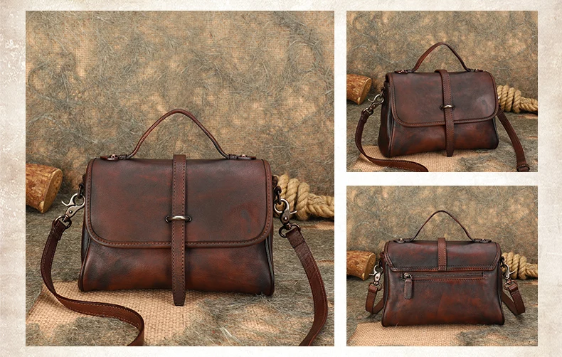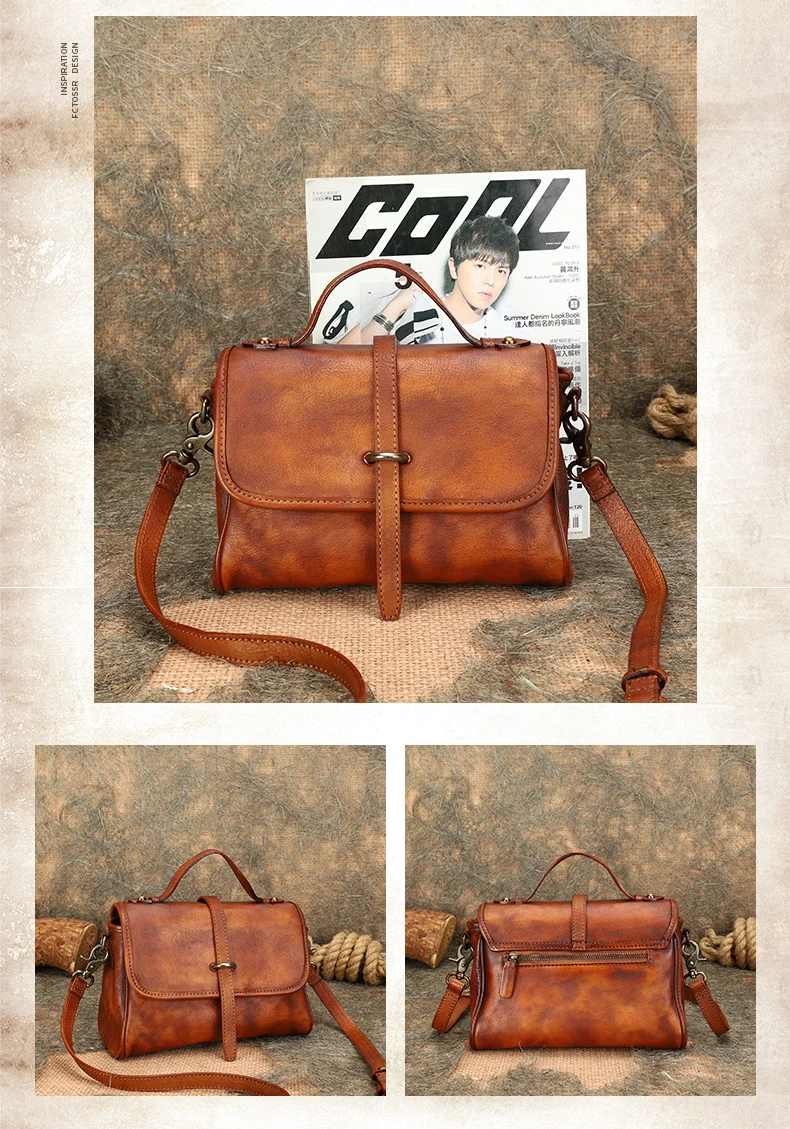 Niche Retro First Layer Leather One-Shoulder Crossbody Bag Women's Handbags Texture Small Genuine Leather Square Bags