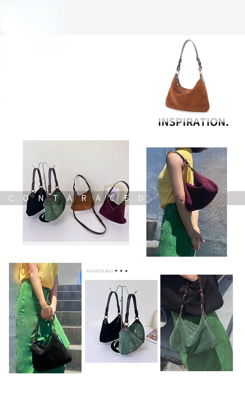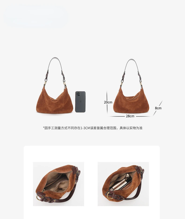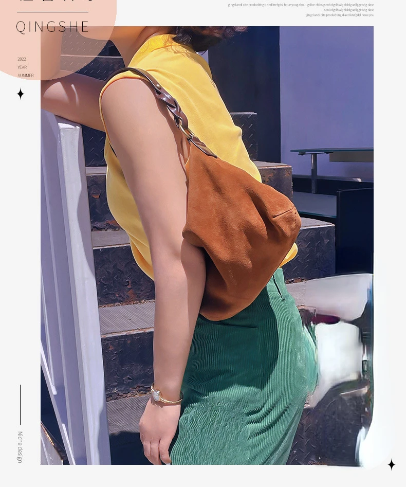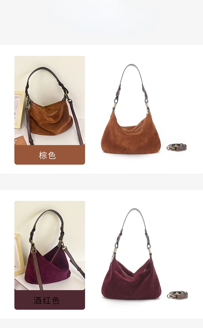 Nubuck Leather Bag New Women's 2022 Niche First Layer Cowhide Underarm Bag High-end Handbag Simple Shoulder Messenger