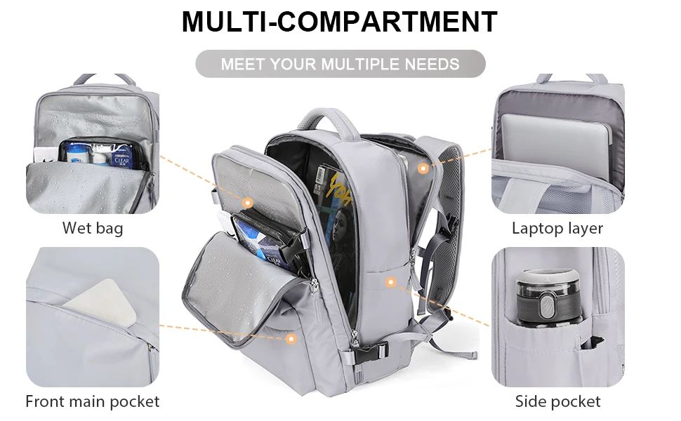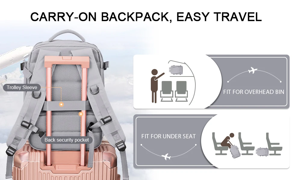 Nylon Backpack, Business Travel Backpack with USB Port for Women Men, Weekender Airline Approved Anti-Theft Laptop Backpack