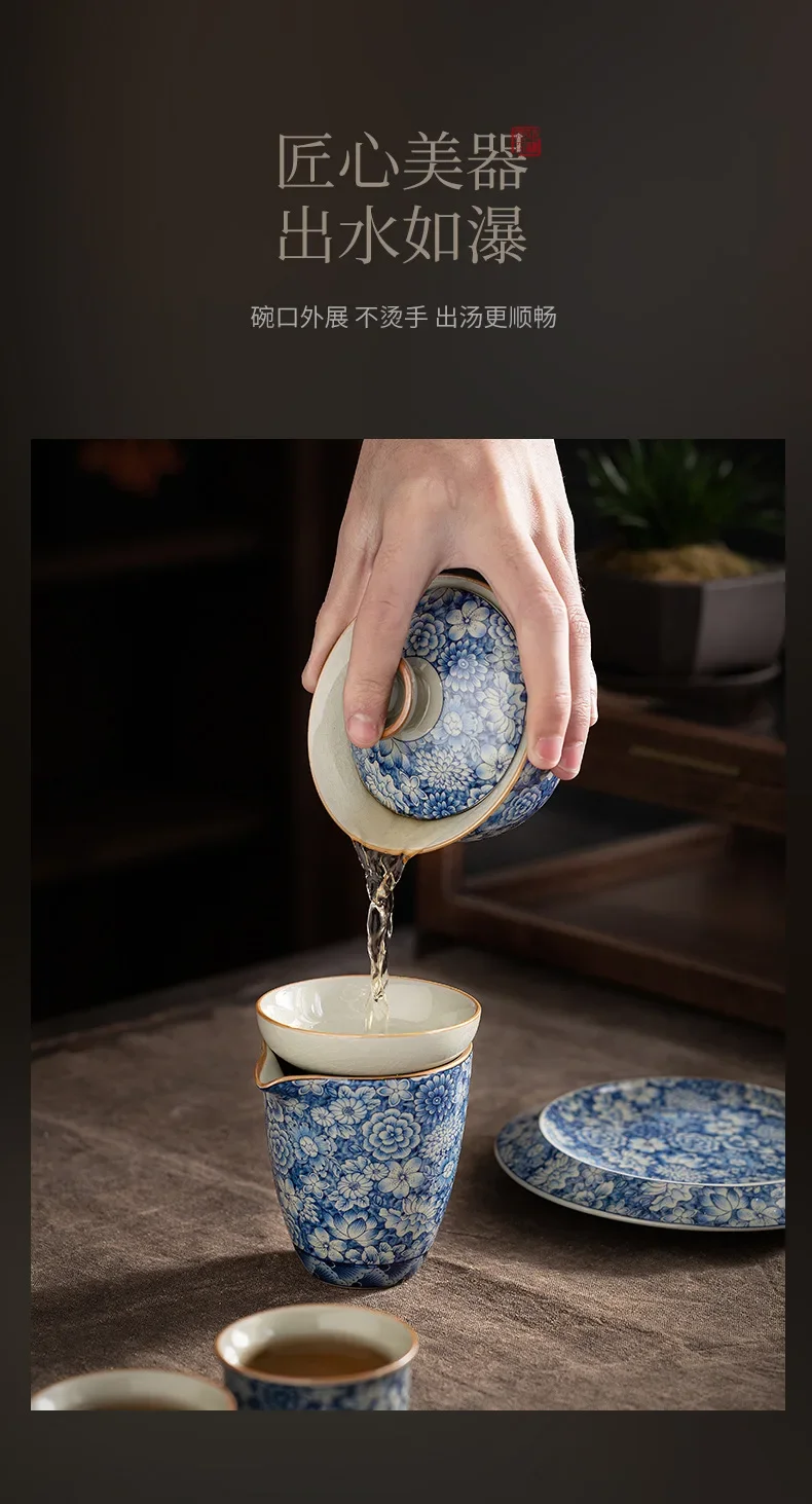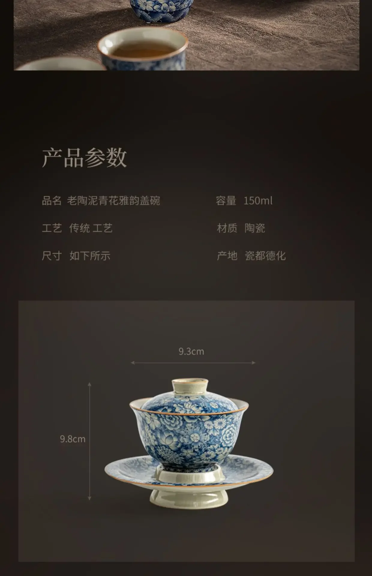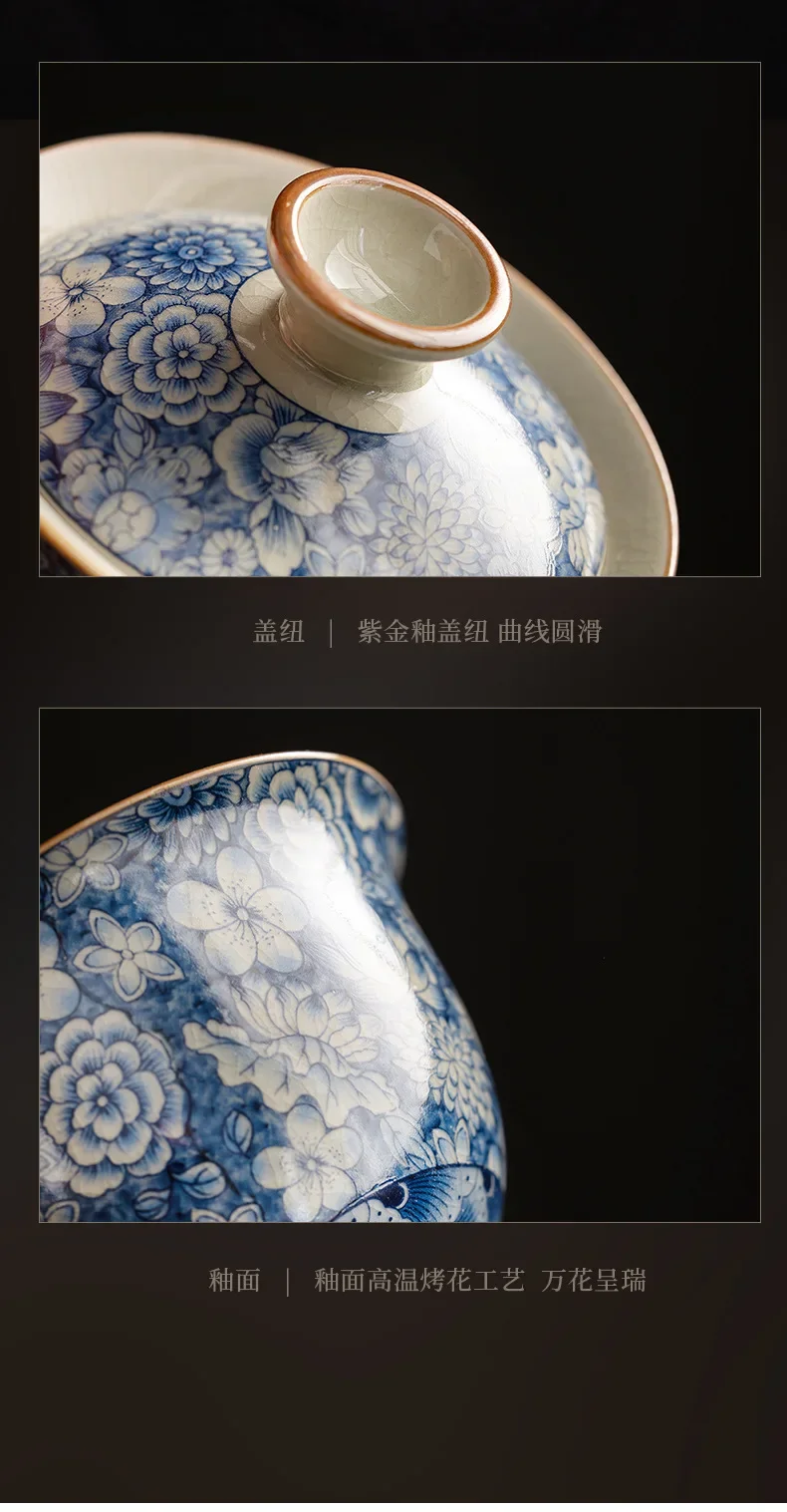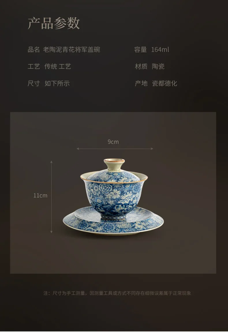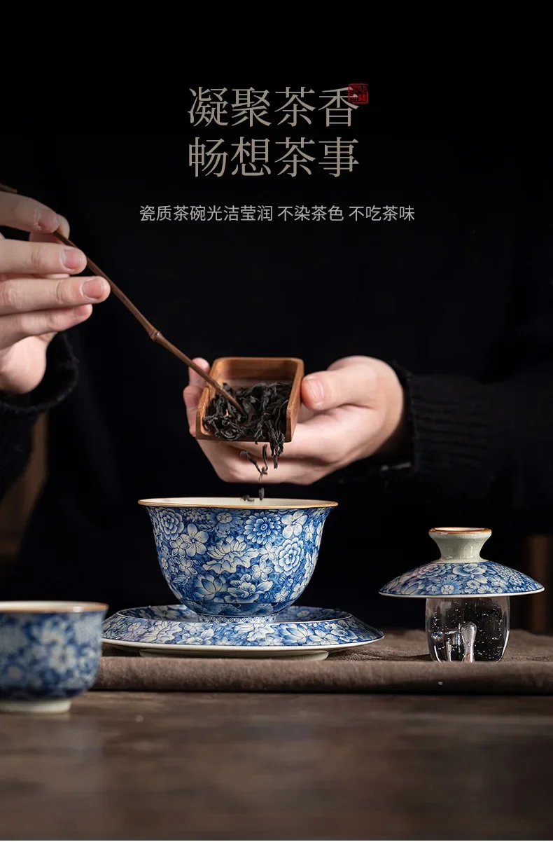 Old Clay Blue and White, Bamboo Hat Tureen High-End Sancai Gaiwan Tea Cup, Ceramic Household Single Ceremony Tea Brewing Bowl