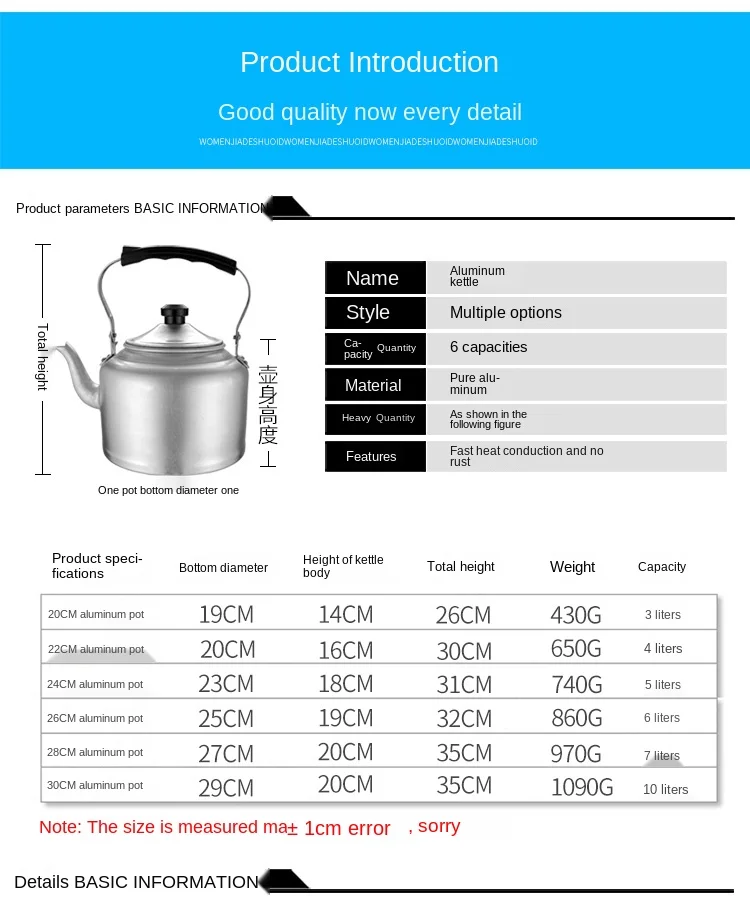 Old-Fashioned Extra Thick Traditional Aluminum Kettle Aluminum Kettle Large Capacity 10 Liters for Home Use and Restaurants