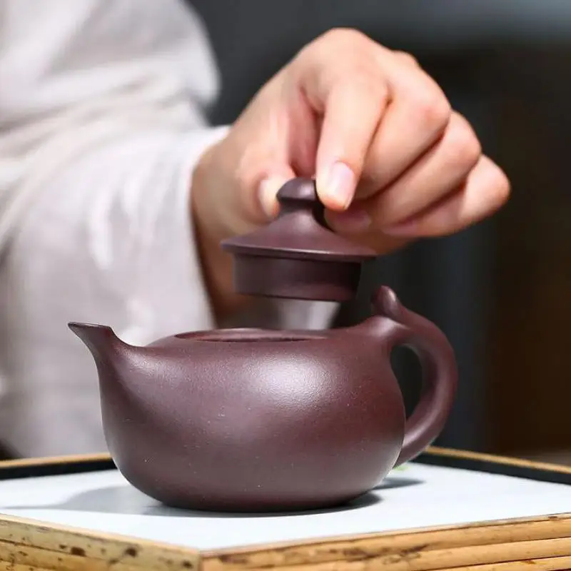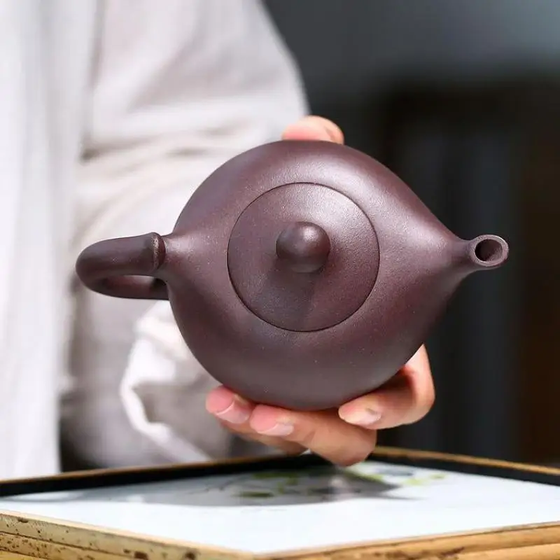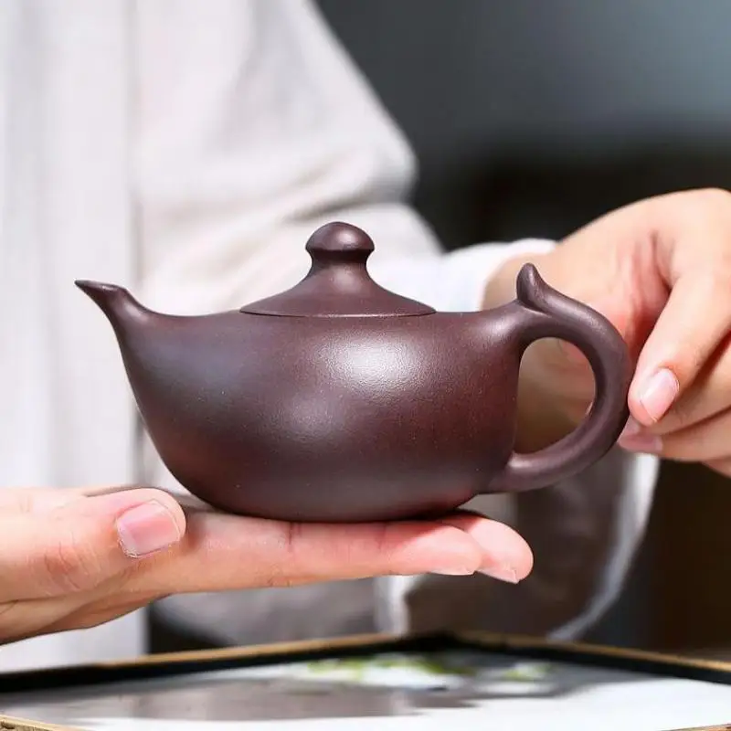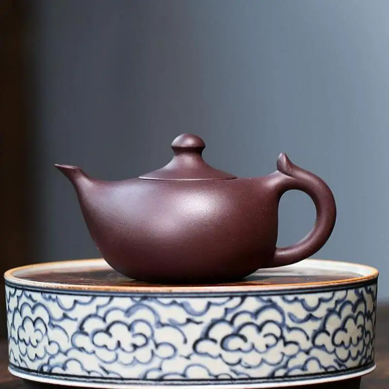 Old purple clay small crescent pot