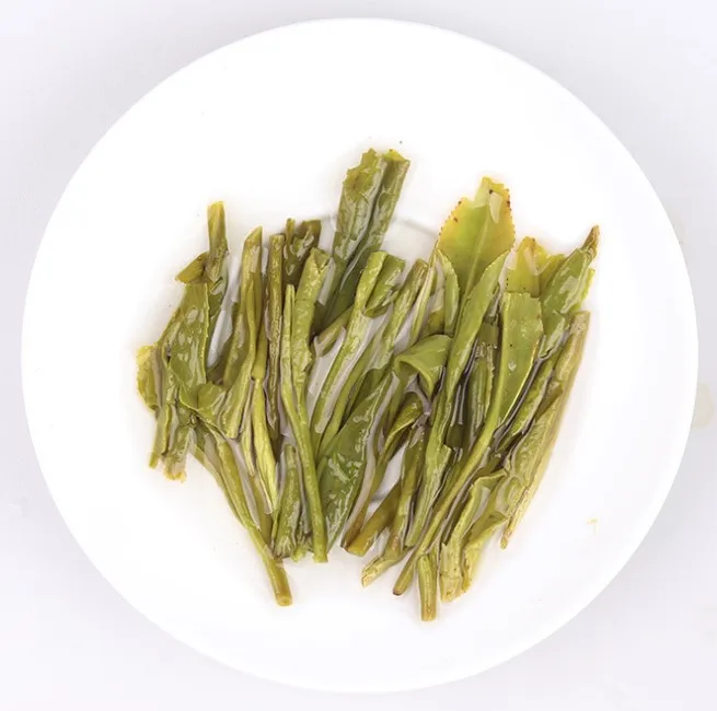 It has unique fragrance and flavor, flat, slender strips of tea leaves in bright green liquid.