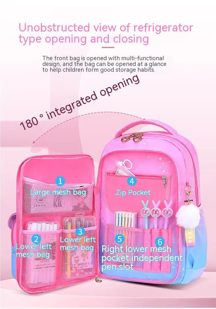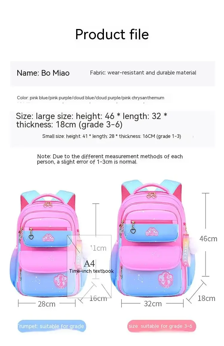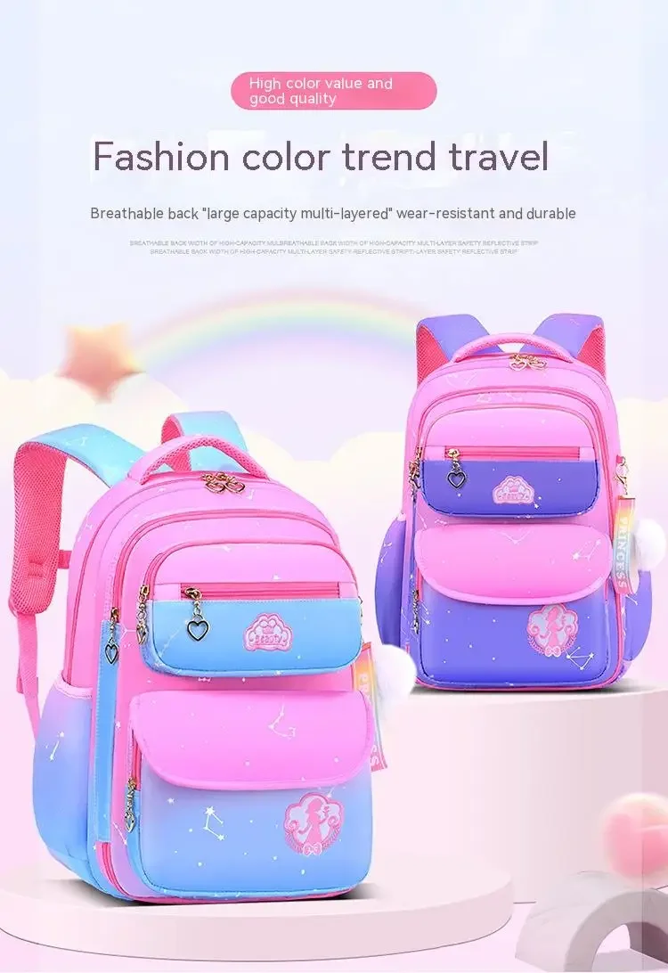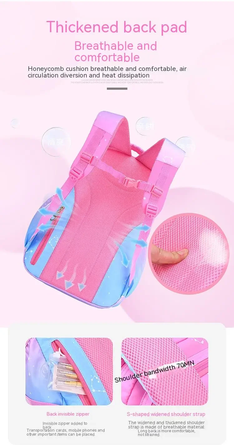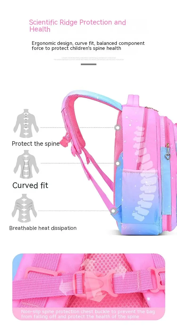 Orthopedic Primary Girls' School Backpack Bag Gradient Color Grades 1-3-6 For Children Backpack Large Capacity Students Rucksack
